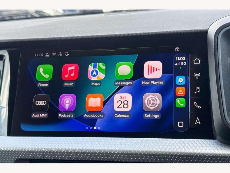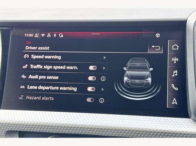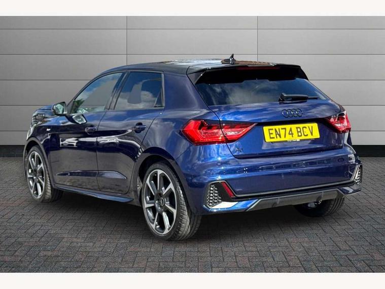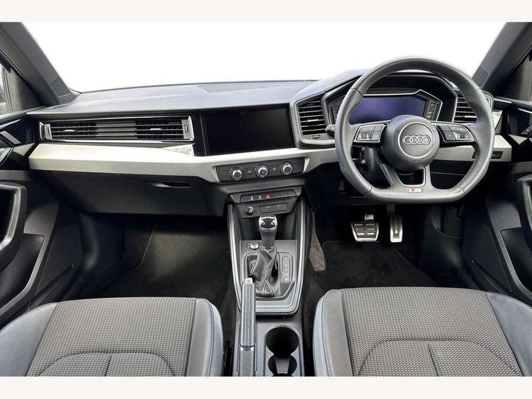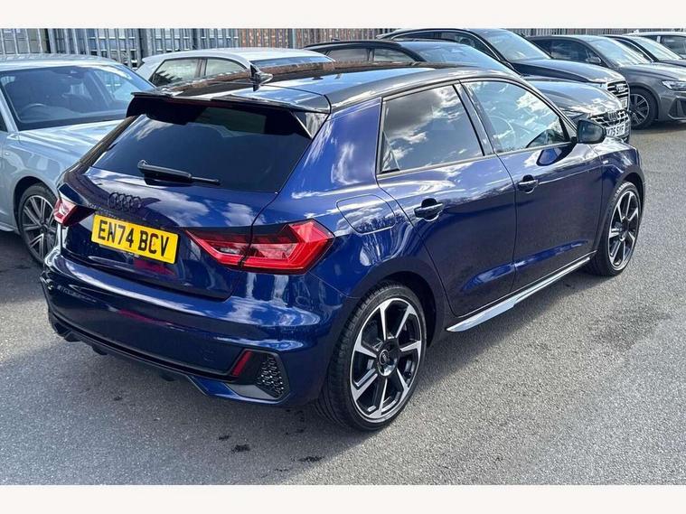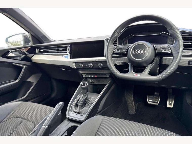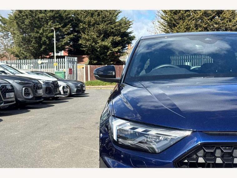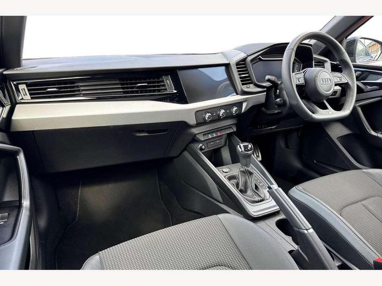 10.25" Digital instrument cluster display classis style instrument dials + speed, odometer, time, outside temperature, telephone menu + fuel level warning, Advanced driver attention and drowsiness monitor, Audi connect emergency call and service, Audi remote connect and control, Audi smartphone interface, Bluetooth interface, Camera based traffic sign recognition, Cruise control, Driver's information system, Electromechanical power steering, Lane departure warning system, Rear parking sensor, Service interval indicator, Speed limiter, Start stop system with recuperation, Voice control system, Washer fluid level indicator, Sports suspension, 2 x USB type C connection points, 6 loudspeakers, DAB Digital radio, MMI radio plus with 10.1" colour MMI display screen and MMI touch, Auto dimming rear view mirror, Black side skirts, Body coloured bumpers, Door sill trims with aluminium inlays and logo, Electric front and rear windows, Electrically adjustable, heated, folding door mirrors with integrated LED side indicator, Front side air inlets in grained matt black and C frame in anthracite black, Front wing badges, Headlight cleaning system, Heat insulating glass windscreen and side windows, Heated rear windscreen, High level LED brake light, LED daytime running lights, LED headlights with range control LED rear lights + dynamic rear indicators, Privacy glass, Radiator grille and rear diffuser in matt anthracite black, Radiator protective grille frame in matt aluminium silver, Rain and light sensors, Rear fog lights, Rear side wing doors, Rear wiper, Side front spoiler lips in grained matt black, 12V socket in centre console with two cup holders, 3 rear seats with headrests, 3 seat bench in 2nd row, 3 spoke flat bottomed multi-function plus leather steering wheel with S badging, grips in preforated leather, contrast stitching and paddle shift, 40:60 Split folding rear seat or fully collapsed, Black cloth headlining, Front and rear velour black floor mats with contrast stitching in fine silver, Front head restraints, Front passenger seat, Height and reach adjustable steering wheel, Interior lighting includes roof module, front and rear reading lights and right luggage compartment lighting, ISOFIX child seat mounting for front passenger and outer rear seats including top tether attachment point of outer rear seats, Leather gear knob with aluminium trim, Leather handbrake grip, Manual air conditioning, Manual height adjustable for driver and front passenger seat, Manually adjustable lumbar support in front seats, Stainless steel pedals, Ambient lighting package - A1, Black styling pack - A1 Sportback Black Edition, Luggage compartment pack - A1, 3x3 point rear seatbelts, Audi pre-sense front with pedestrain and cyclist recognition, Brake assist function, Driver and front passenger airbag with front side and head airbags, Electronic Stability Control including ABS, EBD, ASR and EDL, Front passenger airbag deactivation switch, Hill hold assist, Manual rear child locks, Seatbelt height adjustment for front seats, Seatbelt monitoring, Tyre pressure loss indicator, Warning triangle and first aid kit, Anti theft alarm, Anti theft wheel bolts, Immobiliser, Remote control key with safelock, Aluminium trim for control switches, air vents and digital instrument cluster, Black dashboard, Silver grey inlays polygon structure in diamond paint finish, Structured grey accent surfaces insert of air vents, interior door handle recesses and centre console in quartz paint finish,