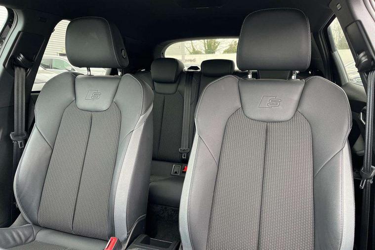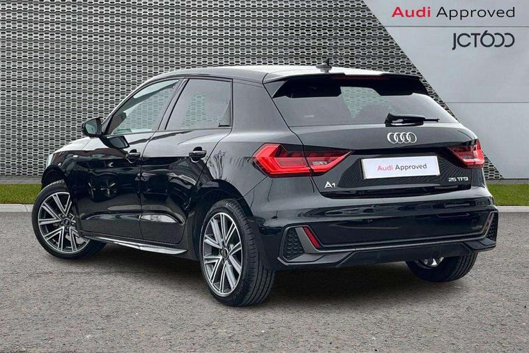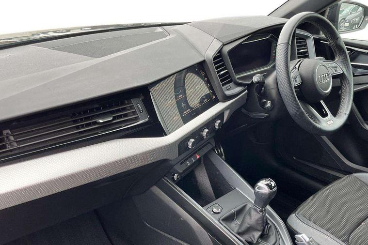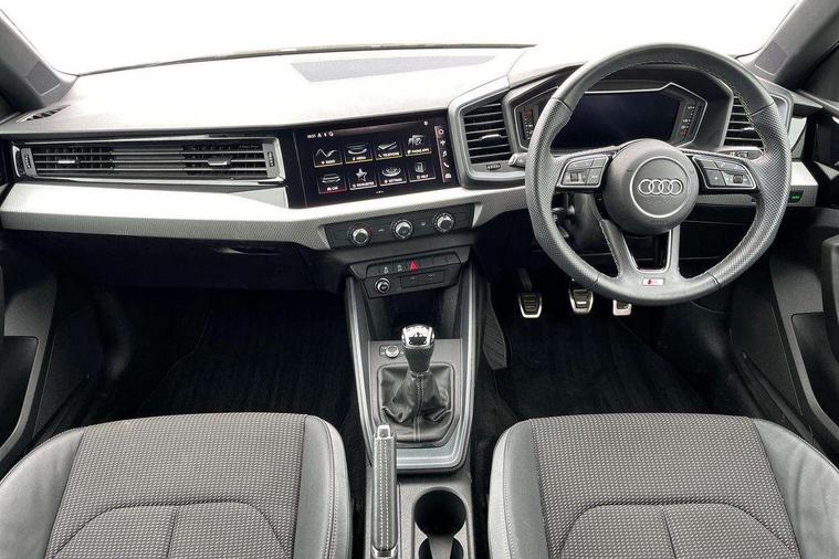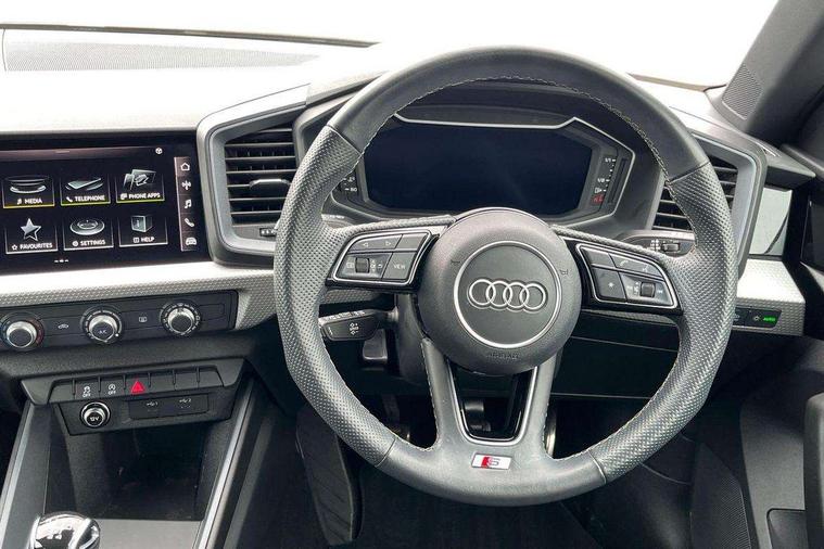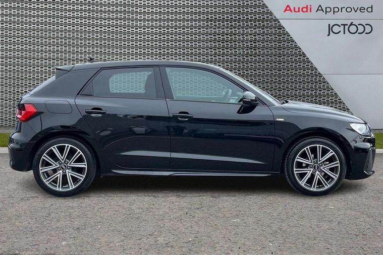 10.25" Digital instrument cluster display classis style instrument dials + speed, odometer, time, outside temperature, telephone menu + fuel level warning, Advanced driver attention and drowsiness monitor, Audi connect emergency call and service, Audi remote connect and control, Audi smartphone interface, Bluetooth interface, Camera based traffic sign recognition, Cruise control, Driver's information system, Electromechanical power steering, Lane departure warning system, Rear parking sensor, Service interval indicator, Speed limiter, Start stop system with recuperation, Voice control system, Washer fluid level indicator, Sports suspension, 2 x USB type C connection points, 6 loudspeakers, DAB Digital radio, MMI radio plus with 10.1" colour MMI display screen and MMI touch, Auto dimming rear view mirror, Body coloured door mirrors, Door sill trims with aluminium inlays and S line logo in front, Electric front and rear windows, Electrically adjustable, heated, folding door mirrors with integrated LED side indicator, Front side air inlets in grained matt black and C frame in anthracite black, Headlight cleaning system, Heat insulating glass windscreen and side windows, Heated rear windscreen, High level LED brake light, LED daytime running lights, LED headlights with range control LED rear lights + dynamic rear indicators, Privacy glass, Radiator grille and rear diffuser in matt anthracite black, Radiator protective grille frame in matt aluminium silver, Rain and light sensors, Rear fog lights, Rear side wing doors, Rear wiper, S line badges on front wings, Side front spoiler lips in grained matt black, 12V socket in centre console with two cup holders, 3 rear seats with headrests, 3 seat bench in 2nd row, 3 spoke leather multi-function plus steering wheel features S badging and grips in perforated leather with contrast stitching, 40:60 Split folding rear seat or fully collapsed, Black cloth headlining, Front and rear velour black floor mats with contrast stitching in fine silver, Front head restraints, Front passenger seat, Height and reach adjustable steering wheel, Interior lighting includes roof module, front and rear reading lights and right luggage compartment lighting, ISOFIX child seat mounting for front passenger and outer rear seats including top tether attachment point of outer rear seats, Leather gear knob with aluminium trim, Leather handbrake grip, Manual air conditioning, Manual height adjustable for driver and front passenger seat, Manually adjustable lumbar support in front seats, Stainless steel pedals, Ambient lighting package - A1, Luggage compartment pack - A1, S line exterior styling pack - A1 Sportback, 3x3 point rear seatbelts, Audi pre-sense front with pedestrain and cyclist recognition, Brake assist function, Driver and front passenger airbag with front side and head airbags, Electronic Stability Control including ABS, EBD, ASR and EDL, Front passenger airbag deactivation switch, Hill hold assist, Manual rear child locks, Seatbelt height adjustment for front seats, Seatbelt monitoring, Tyre pressure loss indicator, Warning triangle and first aid kit, Anti theft alarm, Anti theft wheel bolts, Immobiliser, Remote control key with safelock, Aluminium trim for control switches, air vents and digital instrument cluster, Black dashboard, Silver grey inlays polygon structure in diamond paint finish, Structured grey accent surfaces insert of air vents, interior door handle recesses and centre console in quartz paint finish,