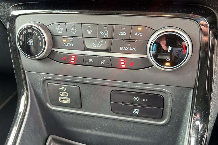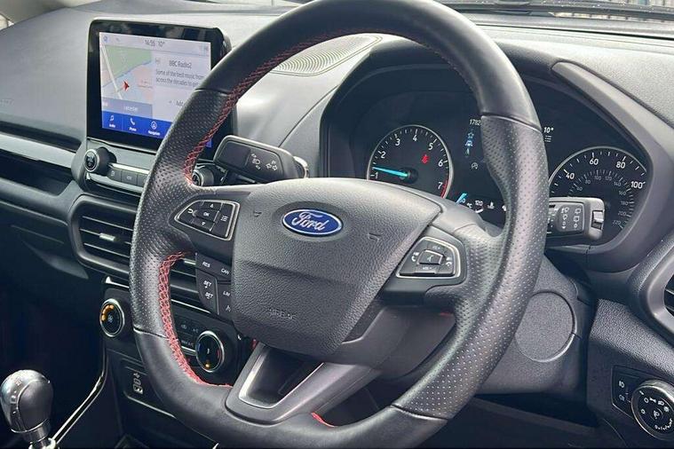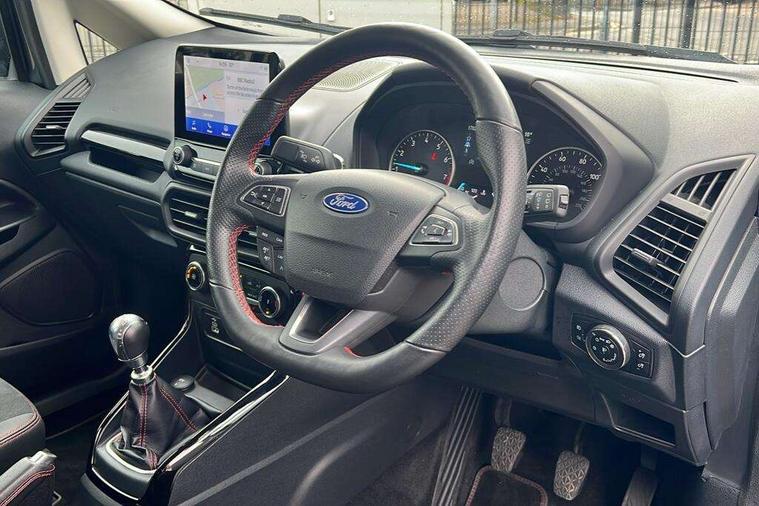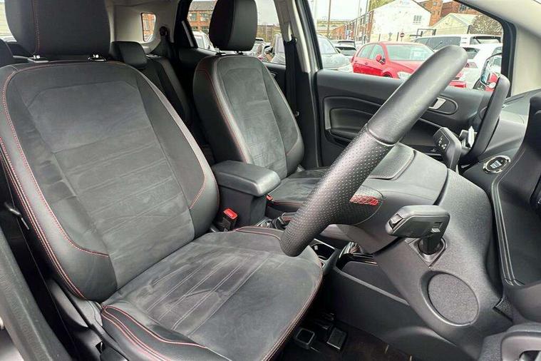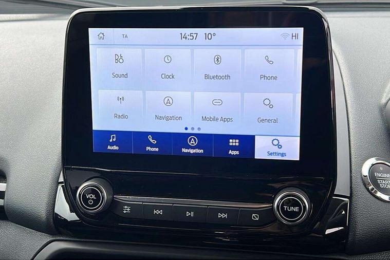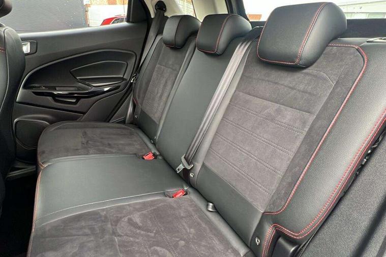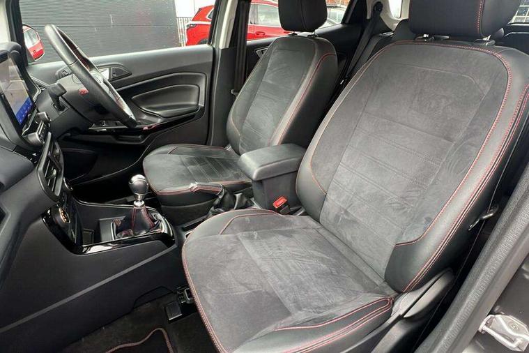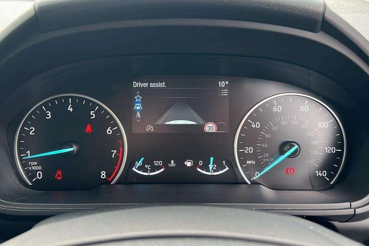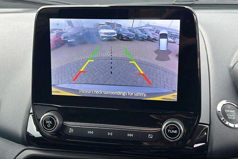 Cruise control, e-Call (emergency call), Easy fuel capless refuelling system, Ford SYNC 3 nav system with DAB radio, 8" screen, emergency assistance, Apple car play/Android auto, 2x USB, 6 speakers, Ford pass connect, Intelligent speed limiter, PAS, Rear parking sensors, Rear view camera, Traffic sign recognition, Trip computer, Sports suspension, Steering wheel mounted audio controls, Auto dimming rear view mirror, Automatic front wipers, Automatic headlights, Black roof rails, Body colour door handles, Body coloured bumpers, Chrome lower window surround, Electrically adjustable and heated door mirrors, Front fog lights, Front grille bars and surround in black, Headlight levelling control, Large rear spoiler, LED day running lights, LED third brake light, Power front and rear windows, Puddle lights, Quickclear' heated windscreen, Rear side wing doors, Rear wiper, ST Line body styling kit - Black headlamp bezel, front and rear sport bumpers, body colour lower door claddings, 12V socket in front and rear, 3 seat bench in 2nd row, 60/40 split rear seats, Ambient lighting, Centre console with sliding front armrest, Cooled glovebox, Courtesy lights with map reading light, Driver seat height/lumbar adjust, Driver's side glovebox, Driver/passenger sunvisors and lidded vanity mirrors, EATC - Electronic Auto Temperature control, Folding grab handles, Front head restraints, Front seat back map pockets, Illuminated glovebox, Illuminated luggage compartment, Isofix system on outer rear seats, Luggage compartment carpet, Neosuede/Partial sensico leather upholstery, Overhead console with sunglasses holder, Rake adjustable rear seats, Reach + rake adjustable steering column, Rear headrests, Sensico trimmed steering wheel, handbrake and gearshift gaiter with red stitching, Single front passenger seat, ST-Line Front floor mats with red stitching, Stainless steel sports pedals, Storage drawers under front seats, Tie down hooks, Variable boot floor, 3x3 point rear seatbelts, ABS, Autonomous emergency braking, Child locks on rear doors, Curtain airbags, Driver airbag, Drivers knee airbag, Electronic Stability Programme with hill launch assist, Front passenger airbag deactivation, Front side airbags, Passenger airbag, Pre collision assist system with AEB, Seatbelt reminder for driver and front passenger, Traction control, Tyre pressure monitoring system, Immobiliser, MyKey system, Remote central locking, Thatcham 1 volume sensing alarm, Low rolling resistance tyres, Tyre inflation kit,