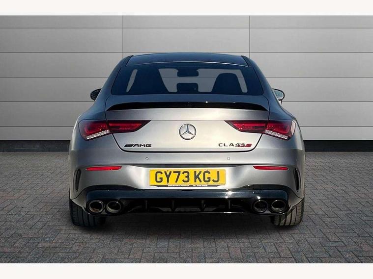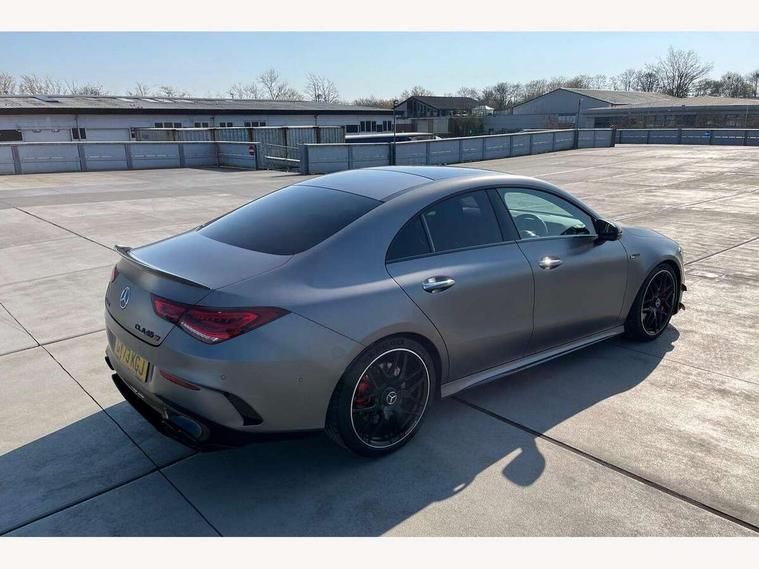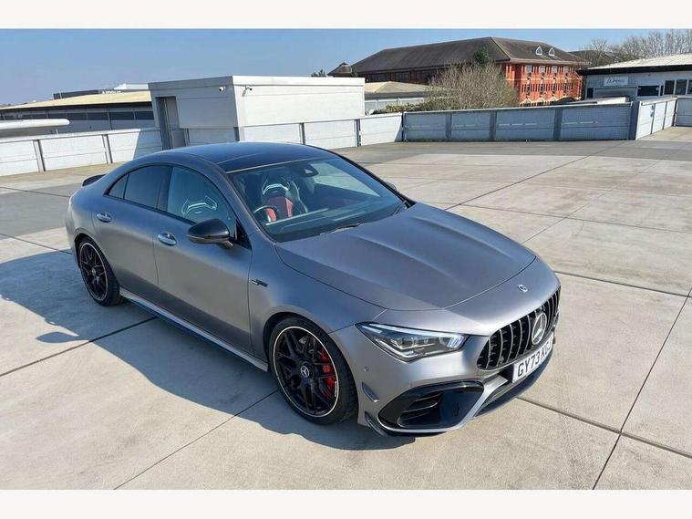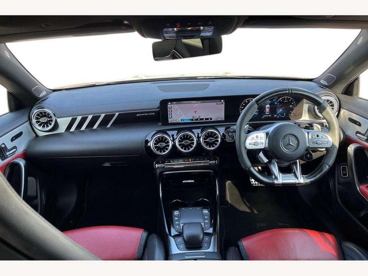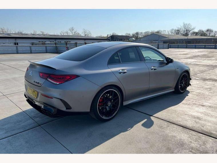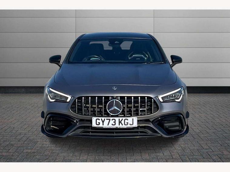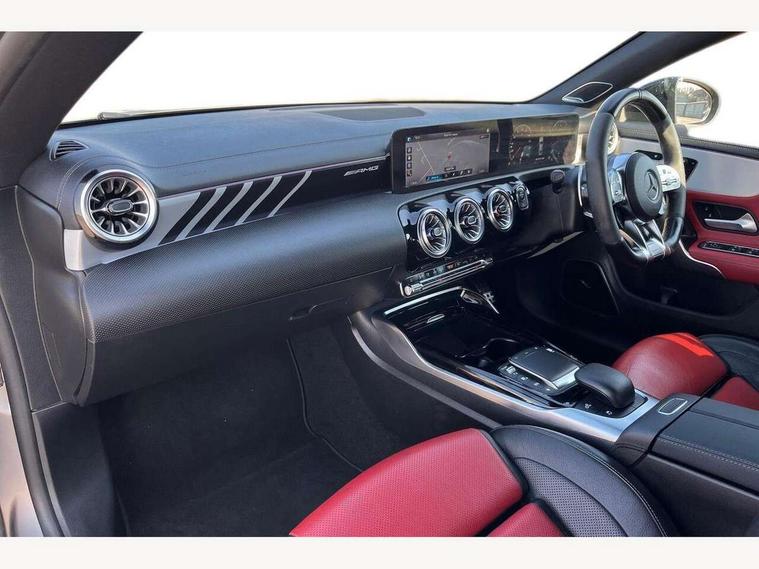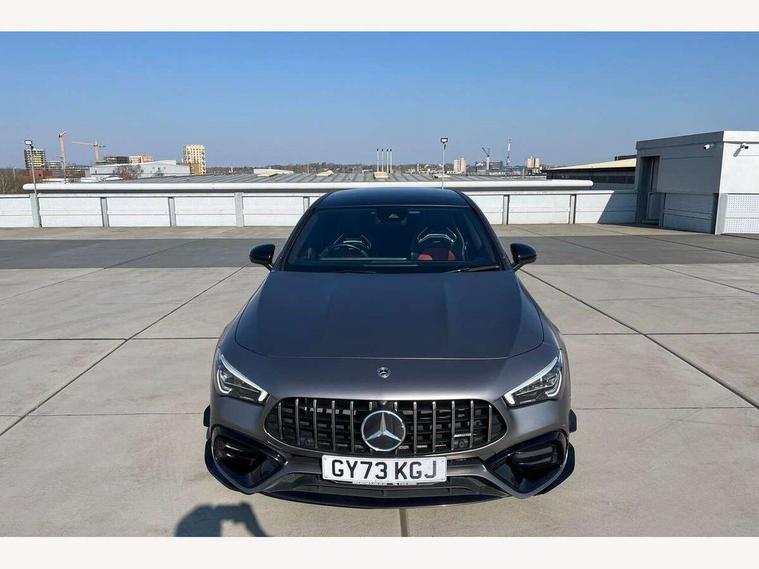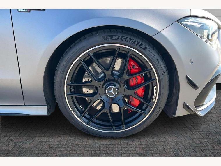 10.25 inch Instrument display with digital cockpit, 10.25 inch touchscreen central media display with AMG specific, AMG start up logo, visualisation of the AMG drive programs, vehicle and engine data, Active lane keeping assist, AMG DYNAMIC SELECT with drive programs Slippery, Comfort, Sport, Sport+, Individual and RACE including Drift mode activated + RACE START function, AMG menu with sporty additional information - Gear indicator with yellow M symbol manual mode, Warm Up menu and Set Up menu, Attention assist - Monitors steering behaviour and long journey fatigue, Blind spot assist, Bluetooth connection, Car wash mode, Cruise control with limiter, Direct steer system with AMG speed sensitive power steering with two sets of steering characteristics, ECO start/stop function, Fluid level warning indicator for fuel, oil, coolant and washer fluid, Hard-disk navigation, Hey Mercedes Voice activation, Lamp failure indicator, Mercedes me connect including emergency call system, accident recovery, breakdown management and maintenance, Mercedes me remote services, Outside temperature gauge, Owners manual and service booklet in English, Pre-installation of private car share, Preinstallation for Mercedes Benz link, Radio aerial integrated into front and rear windshields, Service indicator (ASSYST), Smartphone integration with Apple CarPlay and Android auto, Speed limit assist, Traffic sign assist, Trip computer in multifunction display with current consumption indicator, AMG performance 4MATIC+ with torque control distribution, Rear axle multi-link, Suspension with adaptive damping system, DAB digital radio tuner, MBUX multimedia system, Mid-range sound system, USB (type C) ports (2) in stowage compartment and 1 in front of centre console, Adaptive brake lights, AMG body styling specific front apron, AMG side sill panels, AMG rear apron, AMG roof spoiler lip, Specific S labelling boot lid + front apron CLA 45, AMG specific radiator grille in high gloss chrome with AMG lettering, AMG specific radiator grille with a wider lower contour and twelve vertical louvres, AMG spoiler lip in body colour, AMG wider side skirts, Automatically controlled exhaust flap, Beltline strips in High gloss Black, Body colour bumpers, Body colour door handles, Chrome weather strip, Diffuser with two vertical twin fins, Electric panoramic sunroof with automatic tilt and convenience closing fuinctions, rain sensor auto closing and electronic roller sunblind, Electric windows, Electrically adjustable and heated door mirrors with integrated LED indicators, Exhaust system with AMG Real Performance Sound (Balanced or Powerful settings), Front apron with horizontal fins in the outer air inlets and stretched lower air inlet, Headlamp assist automatic headlamp activation, Heated glass rear windscreen + timer control, High level LED third brake light, Integrated LED daytime running lights, Interior mirror with black reading lamps and frameless, LED tail lamp, Multibeam LED headlamps with adaptive highbeam assist plus, Privacy glass with dark tinting on rear side windows and rear window, Rain sensing windscreen wipers with two sensitivity settings, Rear boot, Rear fog lamp, Rear side wing doors, Two round twin tailpipe trim elements each measuring 90 mm in diameter and AMG lettering plus ribbing on the inside of the pipe, Valve control dependent on drive program, Variable front intermittent wipers, Window line trim strip in high gloss black, 3 seat bench in 2nd row, 3 spoke flattened lower sporty design AMG Performance steering wheel with Nappa/MICROCUT microfiber, grip area, 12 clock mark +AMG letter silver chrome, 40:20:40 split folding rear seats with backrest, Air conditioning - Two zone thermotronic luxury automatic climate control with display, Air vents with surround in silver chrome, AMG brushed stainless steel sports pedals with rubber studs, AMG centre console decidedly sporty with raised front section, AMG centre console finished with trim in silver chrome, AMG Performance sportily shaped seats with power adjustable front seats, special seat cushions + AMG badge backrests, AMG Steering wheel touch control buttons, Automatic child seat recognition sensor, Black roof lining, Electrically adjustable front memory seats including lumbar support, Fixed head restraints, Floor mats with stitched AMG lettering, Front centre armrest with stowage, Heated front seats, Illuminated front door sills with changeable cover, Illuminated glove compartment stowage, Interior lighting - 64 colour Ambient lighting, Manually height and reach adjustable steering column, Rear armrest with two integral cup holders for drinks, Silver coloured aluminium gear shift paddles on steering wheel, Single front passenger seat, Stowage compartment in centre console with retractable cover, Sunvisors with illuminated vanity mirrors, Touchpad on center console, Twin front cupholders, Two outer rear seat isofix and top tether child seat fixing points, Aerodynamics pack - CLA, AMG driver's package - CLA, AMG Multi contour seat pack - CLA, AMG Night package - CLA 35/45, AMG performance seat pack (High End) - CLA 45 S 4Matic+ Plus, Keyless go comfort pack - CLA, Light and sight pack - CLA, Mirror pack - CLA, Parking package - CLA, Seat comfort pack - CLA, Active bonnet pedestrain safety measure which detects an impact and raises bonnet by 65mm, Active brake assist includes forward collision warning system with autonomous braking, Adaptive brake assist with hold function and hill start assist, AMG high performance brake system with red painted brake callipers and black AMG lettering at the front, ventilated and perforated brake discs, Anti lock braking system (ABS) with brake assist, Black seat belts, Bonnet with power domes, Brake pad wear warning indicator, Childproof locks manually operated for rear doors and electrically operated for rear power windows, Crash responsive emergency lighting, Driver and front passenger head and sidebags, Driver and front passenger