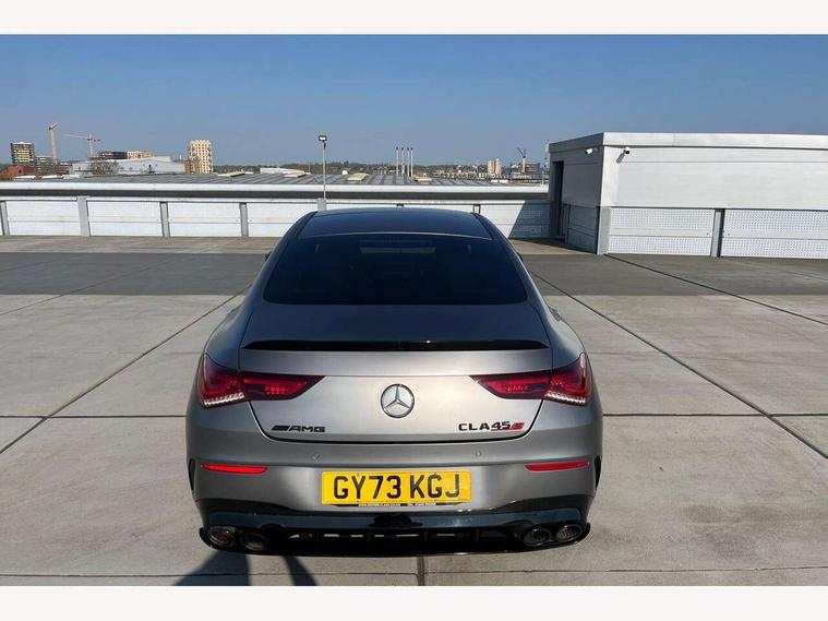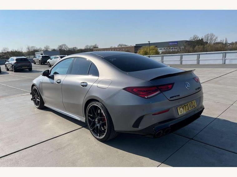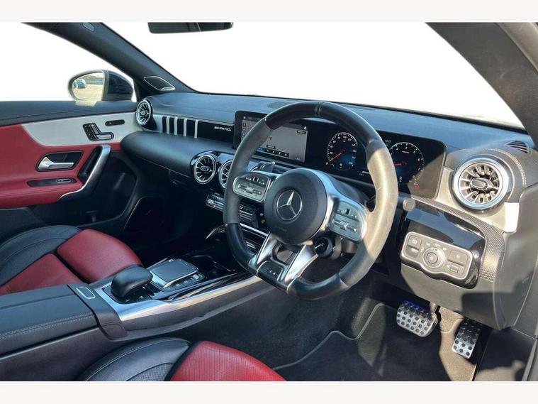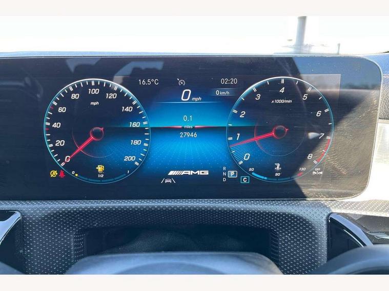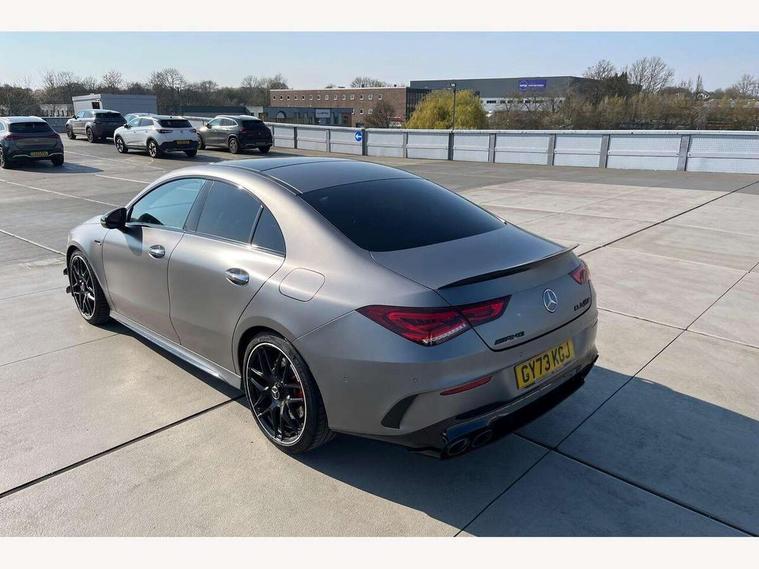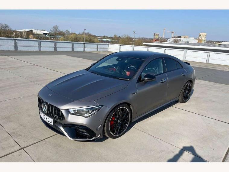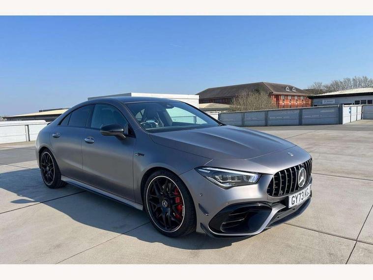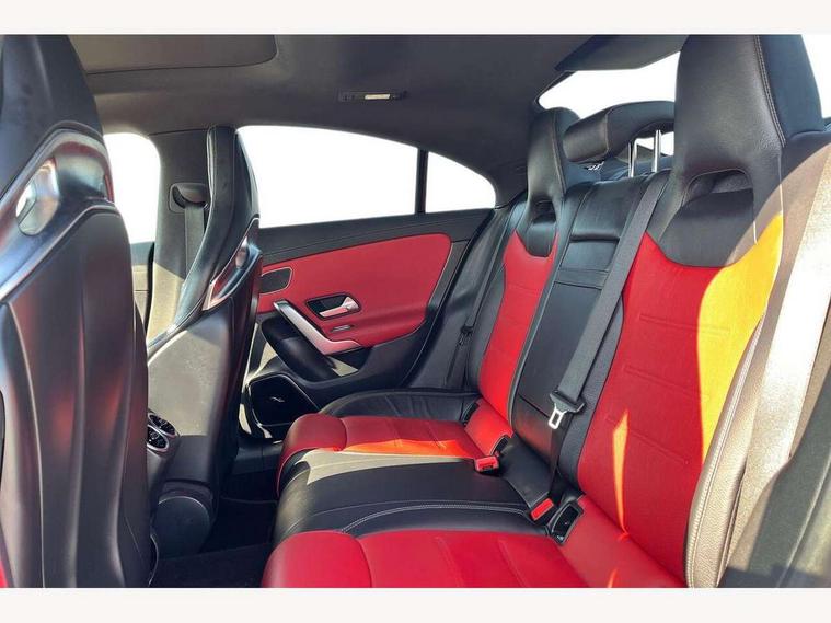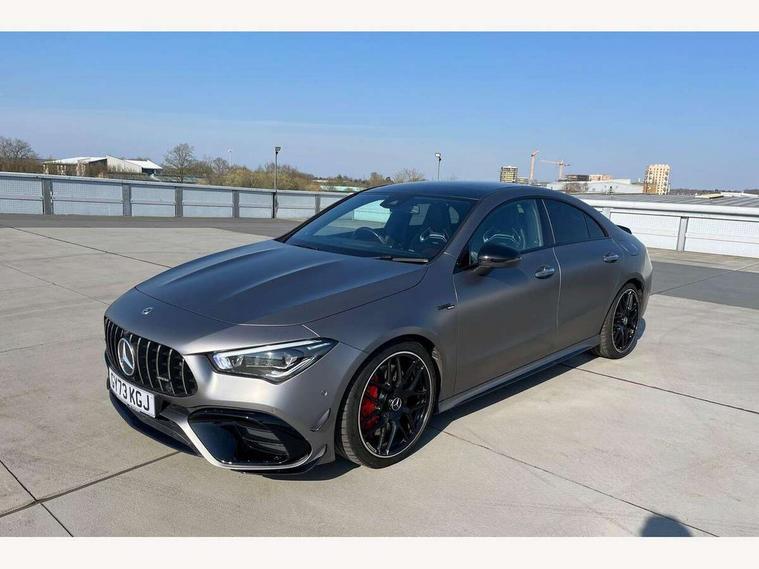 10.25 inch Instrument display with digital cockpit, 10.25 inch touchscreen central media display with AMG specific, AMG start up logo, visualisation of the AMG drive programs, vehicle and engine data, Active lane keeping assist, AMG DYNAMIC SELECT with drive programs Slippery, Comfort, Sport, Sport+, Individual and RACE including Drift mode activated + RACE START function, AMG menu with sporty additional information - Gear indicator with yellow M symbol manual mode, Warm Up menu and Set Up menu, Attention assist - Monitors steering behaviour and long journey fatigue, Blind spot assist, Bluetooth connection, Car wash mode, Cruise control with limiter, Direct steer system with AMG speed sensitive power steering with two sets of steering characteristics, ECO start/stop function, Fluid level warning indicator for fuel, oil, coolant and washer fluid, Hard-disk navigation, Hey Mercedes Voice activation, Lamp failure indicator, Mercedes me connect including emergency call system, accident recovery, breakdown management and maintenance, Mercedes me remote services, Outside temperature gauge, Owners manual and service booklet in English, Pre-installation of private car share, Preinstallation for Mercedes Benz link, Radio aerial integrated into front and rear windshields, Service indicator (ASSYST), Smartphone integration with Apple CarPlay and Android auto, Speed limit assist, Traffic sign assist, Trip computer in multifunction display with current consumption indicator, AMG performance 4MATIC+ with torque control distribution, Rear axle multi-link, Suspension with adaptive damping system, DAB digital radio tuner, MBUX multimedia system, Mid-range sound system, USB (type C) ports (2) in stowage compartment and 1 in front of centre console, Adaptive brake lights, AMG body styling specific front apron, AMG side sill panels, AMG rear apron, AMG roof spoiler lip, Specific S labelling boot lid + front apron CLA 45, AMG specific radiator grille in high gloss chrome with AMG lettering, AMG specific radiator grille with a wider lower contour and twelve vertical louvres, AMG spoiler lip in body colour, AMG wider side skirts, Automatically controlled exhaust flap, Beltline strips in High gloss Black, Body colour bumpers, Body colour door handles, Chrome weather strip, Diffuser with two vertical twin fins, Electric panoramic sunroof with automatic tilt and convenience closing fuinctions, rain sensor auto closing and electronic roller sunblind, Electric windows, Electrically adjustable and heated door mirrors with integrated LED indicators, Exhaust system with AMG Real Performance Sound (Balanced or Powerful settings), Front apron with horizontal fins in the outer air inlets and stretched lower air inlet, Headlamp assist automatic headlamp activation, Heated glass rear windscreen + timer control, High level LED third brake light, Integrated LED daytime running lights, Interior mirror with black reading lamps and frameless, LED tail lamp, Multibeam LED headlamps with adaptive highbeam assist plus, Privacy glass with dark tinting on rear side windows and rear window, Rain sensing windscreen wipers with two sensitivity settings, Rear boot, Rear fog lamp, Rear side wing doors, Two round twin tailpipe trim elements each measuring 90 mm in diameter and AMG lettering plus ribbing on the inside of the pipe, Valve control dependent on drive program, Variable front intermittent wipers, Window line trim strip in high gloss black, 3 seat bench in 2nd row, 3 spoke flattened lower sporty design AMG Performance steering wheel with Nappa/MICROCUT microfiber, grip area, 12 clock mark +AMG letter silver chrome, 40:20:40 split folding rear seats with backrest, Air conditioning - Two zone thermotronic luxury automatic climate control with display, Air vents with surround in silver chrome, AMG brushed stainless steel sports pedals with rubber studs, AMG centre console decidedly sporty with raised front section, AMG centre console finished with trim in silver chrome, AMG Performance sportily shaped seats with power adjustable front seats, special seat cushions + AMG badge backrests, AMG Steering wheel touch control buttons, Automatic child seat recognition sensor, Black roof lining, Electrically adjustable front memory seats including lumbar support, Fixed head restraints, Floor mats with stitched AMG lettering, Front centre armrest with stowage, Heated front seats, Illuminated front door sills with changeable cover, Illuminated glove compartment stowage, Interior lighting - 64 colour Ambient lighting, Manually height and reach adjustable steering column, Rear armrest with two integral cup holders for drinks, Silver coloured aluminium gear shift paddles on steering wheel, Single front passenger seat, Stowage compartment in centre console with retractable cover, Sunvisors with illuminated vanity mirrors, Touchpad on center console, Twin front cupholders, Two outer rear seat isofix and top tether child seat fixing points, Aerodynamics pack - CLA, AMG driver's package - CLA, AMG Multi contour seat pack - CLA, AMG Night package - CLA 35/45, AMG performance seat pack (High End) - CLA 45 S 4Matic+ Plus, Keyless go comfort pack - CLA, Light and sight pack - CLA, Mirror pack - CLA, Parking package - CLA, Seat comfort pack - CLA, Active bonnet pedestrain safety measure which detects an impact and raises bonnet by 65mm, Active brake assist includes forward collision warning system with autonomous braking, Adaptive brake assist with hold function and hill start assist, AMG high performance brake system with red painted brake callipers and black AMG lettering at the front, ventilated and perforated brake discs, Anti lock braking system (ABS) with brake assist, Black seat belts, Bonnet with power domes, Brake pad wear warning indicator, Childproof locks manually operated for rear doors and electrically operated for rear power windows, Crash responsive emergency lighting, Driver and front passenger head and sidebags, Driver and front passenger