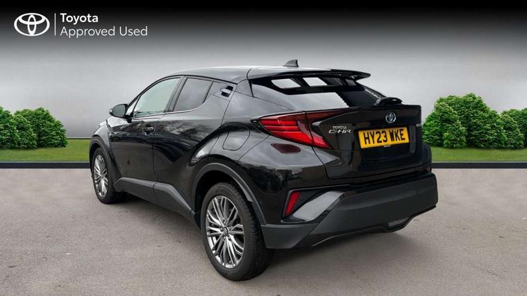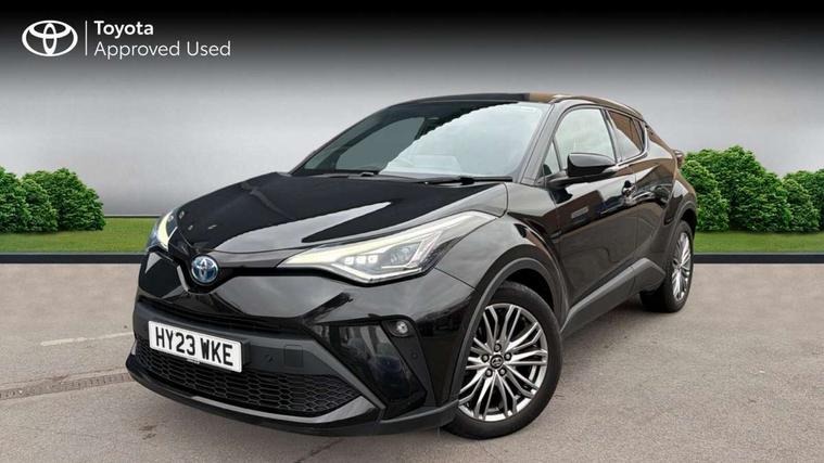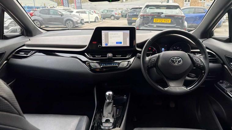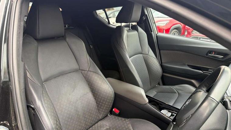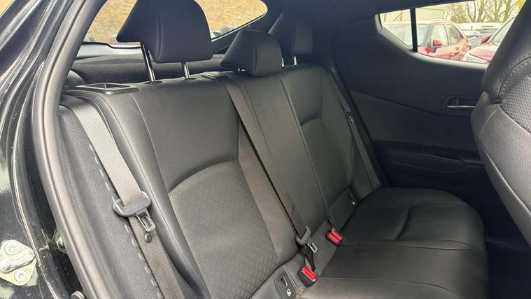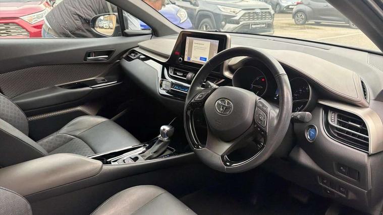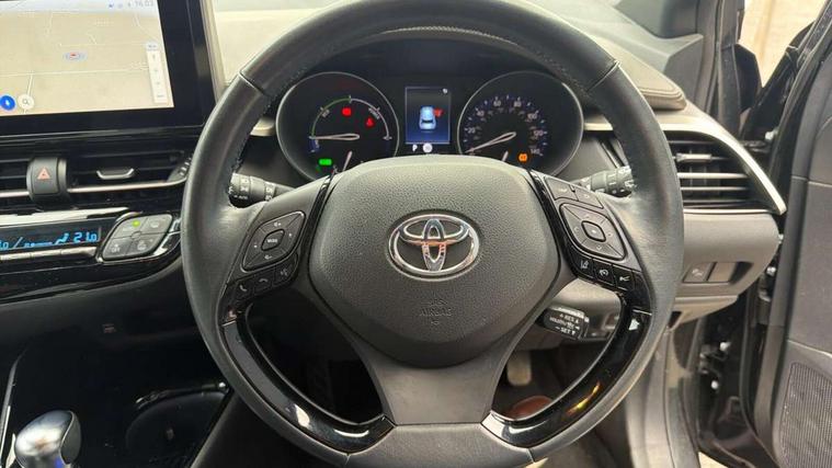 4.2" coloured TFT screen for multi-information display, Adaptive cruise control, Apple car play and Android auto, Bluetooth connectivity, E-call, Electric power steering, Hybrid system indicator, Lane departure alert with steering control, Lane trace assist, Push button tailgate release, Remote boot door release in cabin, Remote boot door release in key, Reversing camera, Road sign assist - RSA, Simple Intelligent parking assist, Smart voice assist, Touch 2 Go navigation system, Trip computer, Voice recognition, Wireless smartphone integration, Vehicle Stability Control (VSC), 6 speakers, AM/FM radio, DAB Radio (Digital Audio Broadcasting), Toyota touch 2 multimedia system with 8" display, USB connector, Wi-fi connectivity, Adaptive front light system, Adaptive LED Headlights, Anti-jam protection on power windows, Auto high beam, Auto up and down function on all power windows, Automatic headlight levelling, Automatic headlights, Automatic headlights cut-off, Black and body coloured rear bumper, Black lower front grille, Black upper front grille, Body colour door handles, Body colour door mirrors, Body colour front spoiler lip, Body coloured front bumper, Boot door release with push button, Electric heated door mirrors, Follow me home headlights, Front and rear power windows, Headlight cut off reminder, Honeycomb lower front grille, LED daytime running lights, LED fog lights, LED front light guide, LED High mounted stop light, LED rear brake lights, LED rear combination lights, Noise reduction layer on front windows and windscreen, Power adjustable door mirrors, Privacy glass, Rain sensor, Rear sequential indicators, Rear side wing doors, Rear spoiler, Rear tailgate, Rear window defogger, Rear window wiper, Shark fin antenna, UV-filter on driver and passenger windows, UV-filter on rear windows, Variable front intermittent wipers, 12v power outlet - front, 3 rear headrests, 3 seat bench in 2nd row, 3 spoke leather steering wheel, 60/40 split folding 2nd row rear seats, Adjustable rear headrests, Adjustable speed limiter switch on steering wheel, Assist grips front and centre pillar, Audio and telephone switches on steering wheel, Black front door assist grips, Blue ambient lighting on front cup holders, Blue ambient lighting on front doors, Boot light, Chrome interior door handles, Driver and front passenger personal light, Driver and front passenger Whiplash Injury Lessening seats, Driver and passenger seatback pockets, Dual zone automatic air conditioning, Floor mats, Front cupholders, Front head restraints, Front sports seats, Glovebox with internal light, Hard tonneau cover, Heated driver and front passenger seats, Heated steering wheel, Hooks for luggage holding net, Humidifying Nanoe air purifier, Illuminated entry system, Isofix attachments on outer rear seats, Leather gearshift, Light on driver sun visor, Light on passenger sun visor, Manual telescopic steering wheel, Manual tilt steering wheel, Microphone on front personal light, Mirror on driver sun visor, Mirror on passenger sun visor, Multimedia switches on steering wheel, Pollen filter, Power adjustable lumbar support on driver seat, Power tilting cushion on driver seat, Shopping bag hooks, Single front passenger seat, Slow opening on lower glovebox, Voice recognition switch on steering wheel, Leather pack - C-HR, Tech with parking sensor pack - C-HR, 16 Disk front wheel brake, 3x3 point rear seatbelts, ABS+EBD+Brake assist, Electronic parking brake, Front and rear seatbelt reminder, Front passenger airbag on/off switch, Hill start assist control (HAC), Pre collision system with pedestrian detection, Pre-tensioners and force limiters, Rear door child safety locks, SRS Airbags - Driver + Front passenger, front side, front and rear curtain and driver's knee airbags, Toyota safety sense, Tyre pressure monitoring system, Tyre pressure warning system, Acoustic vehicle alert system (AVAS), Glass-breaking alarm sensors, Immobiliser, Intrusion alarm, Intrusion sensor, Motion sensor alarm, Power door locks, Power passenger window lock, Remote central locking, Black lower dashboard, Dark brown upper dashboard, Piano black console, Silver deco line on upper dashboard, Tyre repair kit,