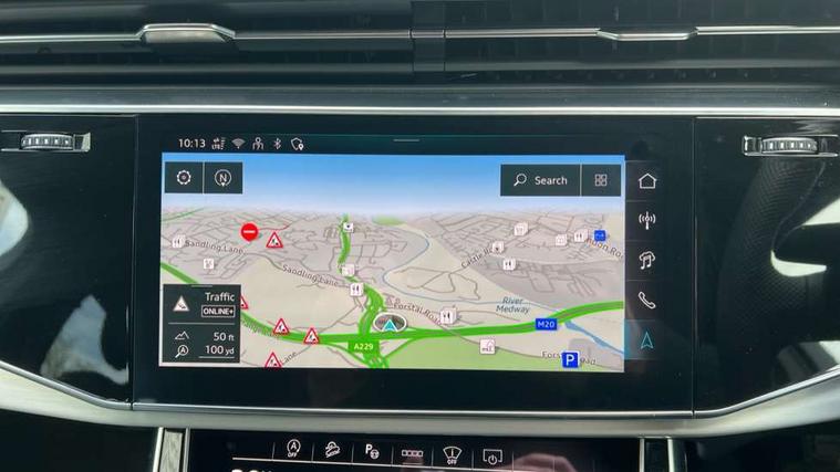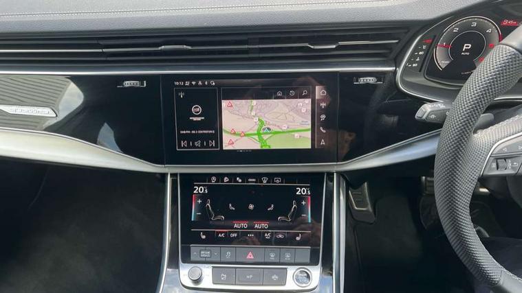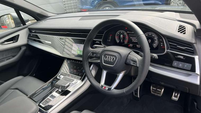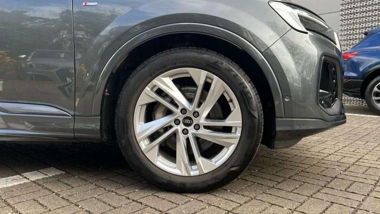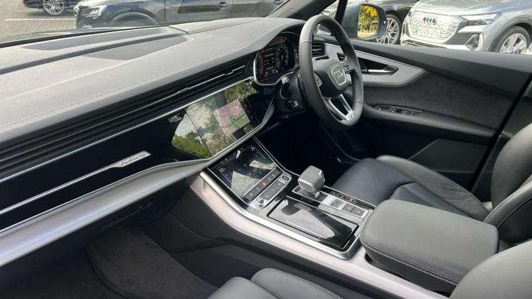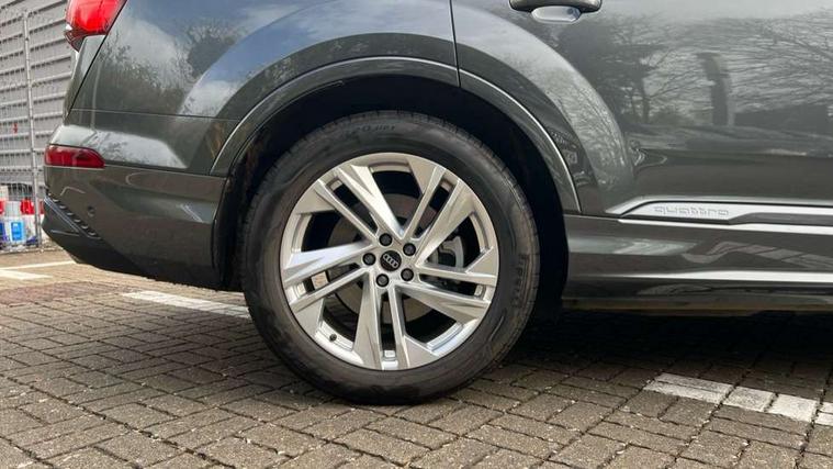 Audi connect safety and service (e-call), Audi connect with Amazon Alexa Integration, Audi drive select (Auto, Comfort, Dynamic, Efficiency, Individual, Off-road and All road), Audi phone box light with wireless charging, Audi virtual cockpit - 12.3" high-resolution LCD display with fully customisable instrument cluster, Bluetooth interface, Camera based traffic sign recognition, Electromechanical power steering, MMI navigation plus with MMI touch screens includes 10.1" and 8.6" screens with haptic feedback, Natural voice recognition, Operating buttons in Matte black, Parking system plus with 360 degree display (front, rear and side sensors) - acoustic and visual park assist system, Power operated tailgate, Rear view camera, Smartphone interface includes wireless Apple carplay/Android Auto, Start/stop system, 48V Mild hybrid technology, Adaptive air suspension, Quattro all wheel drive with self locking centre differential, Audi music interface - front 2 USB-C ports with charger and data functions, Audi sound system with 6 channel amplifier, 180 watt amplifying capacity and 10 loudspeakers including subwoofer, DAB digital radio module, Aluminium roof rails, Aluminium window trim, Auto dimming frameless rear view mirror, Body coloured door mirrors, Electrically adj heated/folding + automatically dimming exterior mirrors with memory + automatic kerb side function for passenger side exterior mirror, Heat insulating glass in windshield, Integrated LED indications in door mirrors, LED 3rd brake light, LED daytime running lights, LED rear tail lights, Loading edge protection in stainless steel, Matrix LED headlights with dynamic front and rear indicators, Privacy glass - dark tinted rear and rear side windows from B-pillar backwards, Rear side wing doors, Rear wiper, S Line badge on wings, S Line body styling, S line bumpers in full body colour paint finish, S line roof spoiler, S line styling side ventilation grilles and side skirts, 2 seat bench in 3rd row, 2 zone automatic climate control, 3 seat bench in 2nd row, 7 seat layout with ISOFIX points for the front passenger seat and rear passenger seat, Black carpets, Black cloth headlining, Comfort front centre armrest, Electric adjustable front seat with 4 way lumbar support, driver memory functionality, Folding rear seats, Front head restraints, Front/rear floor mats, Heated front seats, Illuminated door sill trims with S logo, ISOFIX child seat mounting for front passenger seat and 2 outer rear seats with top tether child seat mounting for all 3 rear seats, LED interior ambient lighting, Luggage compartment cover, Luggage compartment sill protection in stainless steel, Rear head restraints, Rear seat bench plus for the second row, with forwards/backwards sliding adjustment and backrest angle adjustment, Single front passenger seat, Stainless steel pedals, Sunvisors with illuminated vanity mirrors, 3 point seatbelts on all rear seats, Audi pre sense front, Child locks on rear doors, Convenience key with safelock and gesture tailgate, Driver and front passenger, front side and curtain airbags, Electromechanical parking brake, Electronic Stabilisation Control (ESC) including ABS, ASR and EDL, Extended pedestrian protection measures, Hill hold assist, Seatbelt reminder, Tyre pressure loss indicator, Warning triangle and first aid kit, Anti theft alarm with tow away protection, Anti-theft wheel bolts and wheel loosening detection, Keyless Go, Remote central locking, Black dashboard, Darkened matt brushed aluminium inlays, Tool kit, Tyre repair kit,