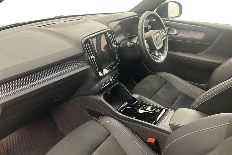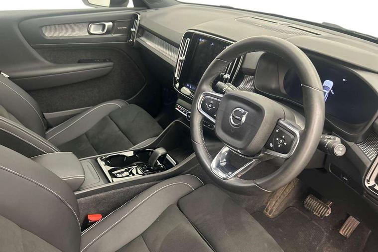 12.3" Progressive Driver Display, 360 degree surround view parking camera with side proximity sensors, 9" centre console portrait touch screen, Adjustable steering wheel force, Bluetooth hands free telephone kit, E-call, Front park assist, Google automatic services - Nav with google maps, apple carplay/android auto, voice recognition with google assistant, Hands free power tailgate, Lane keep assist with driver alert control, Oncoming Lane Mitigation, Rear park assist, Speed limiter, Speed sensitive steering, Wireless/Inductive Mobile Phone Charging, Dynamic chassis, DAB Digital radio, Premium Sound by Harman Kardon, Dolby Pro Logic II Surround Sound, Dirac Unison, 12 speakers/600W and subwoofer, Steering wheel mounted remote controls, Active bending pixel LED headlights with adaptive shadow technology, Active high beam incorporating daytime running lights, Adaptive brake lights with high level LED brake lights, Auto dimming interior mirror, Automatic headlamp levelling, Dark tinted windows for rear door side windows and cargo compartment, Front aluminium tread plates, Front and rear electric windows, Headlight cleaning system, High gloss black front and rear skid plate, High gloss black mesh front grille with high gloss black surround, High gloss black window trim, Home safe and approach lighting, Integrated roof rails in high gloss black, LED front fog lights, Power glass tilt and slide panoramic sunroof with sun curtain, Puddle lights, Rain sensor with automatic windscreen wiper activation, Rear side wing doors, Rear wiper, Roof antenna, Roof spoiler, Visible VIN plate, 12V socket in front tunnel console and luggage compartment, 2-Zone electronic climate control with CleanZone air quality system and pollen filter, 3 seat bench in 2nd row, 3 Spoke tailored steering wheel with chrome trim, 60/40 versatile split folding rear seat, A-pillar parking ticket holder, Ambient front door and instrumental panel lighting, Centre console cupholders and storage, Flexible load floor and grocery bag holder, Floor mats, Front door pocket and front cupholder illumination, Front footwell illumination, Front headrests, Front reading light and theatre lighting, Front seat cushion extensions, Front tunnel pocket, Glovebox bag hook, Heated front seats, Height adjustable passenger seat, Height/reach adjustable steering column, High gloss centre tunnel deco, Illuminated glovebox, Illuminated luggage compartment, Illuminated tailgate, Illuminated vanity mirrors, Integrated waste bin, Isofix attachments on outer rear seats, Load protection net, Multi directional lumbar support, Power driver seat with memory + exterior mirrors memory, Power folding rear headrests, Power passenger seat, Rear armrest / integral cup holders / storage tray, Rear reading and courtesy lights, Single front passenger seat, Underfloor cargo storage, Climate pack without heated front seats - XC40, Driver assist pack - XC40, 3x3 point rear seatbelts, City safety with steering support with Pedestrian + cyclist + front collision warning with full auto brake and rear auto brake, Drivers knee airbag, Dual stage driver/passenger airbags, Electronic parking brake with auto hold, First aid kit, Front and outer rear seatbelt reminder and pretensioners, Front seats SIPS airbags, Hill descent control, Hill start assist, Inflatable curtain, Passenger airbag cut-off device, Power child locks on rear doors, Road sign information display, Run off Road Mitigation, Run off Road Protection, SIPS (Side Impact Protection System), Slippery road and hazard light alert, Stability and Traction Control with Spin control, Engine Drag Control and Corner Traction Control, Tyre pressure monitoring system, Vehicle deceleration control with Anti-lock Brake System, Electronic Brake Distribution and Emergency Brake Assist, Warning triangle, WHIPS whiplash protection system - front, Anti-theft alarm including immobiliser/volume sensor + level sensor, Key integrated remote control central locking + fuel flap with deadlocking system and auto open/close power windows, Keyless drive includes keyless entry and keyless start, Locking wheel nuts,