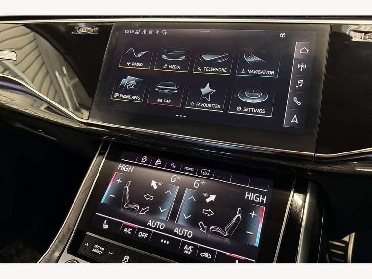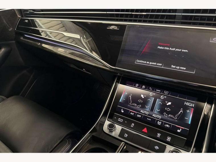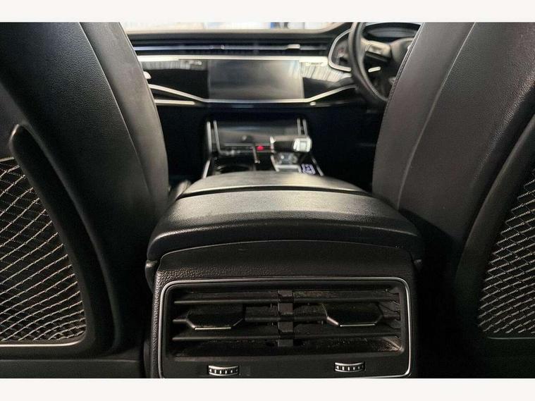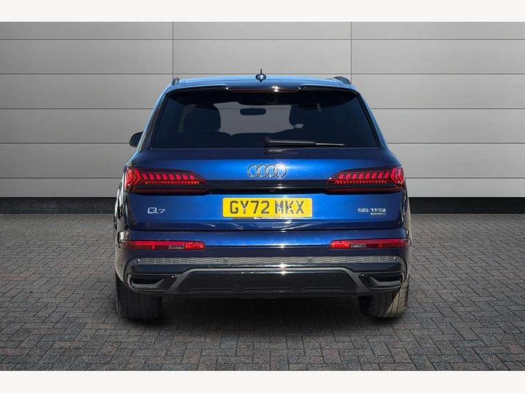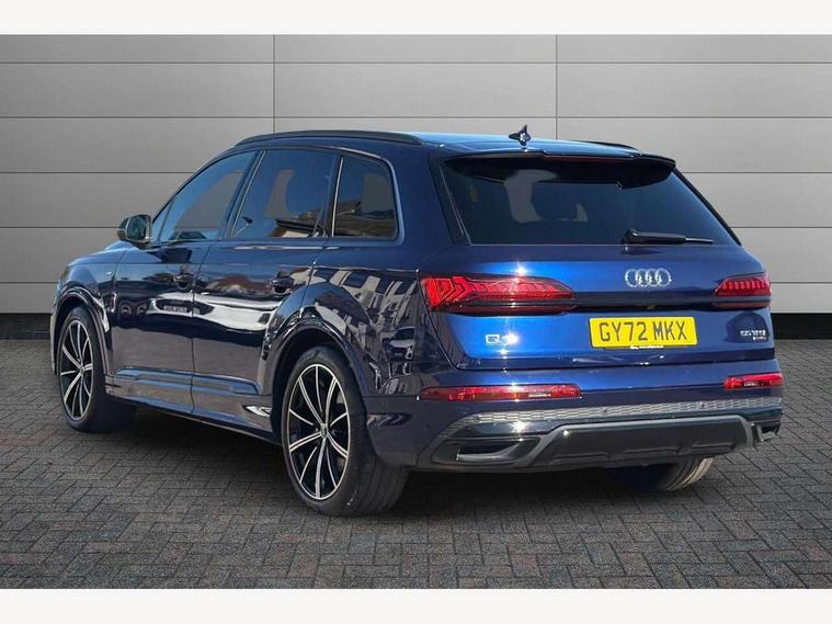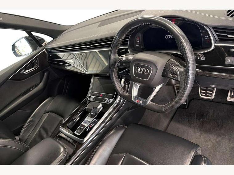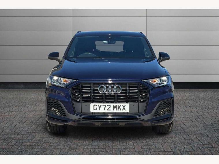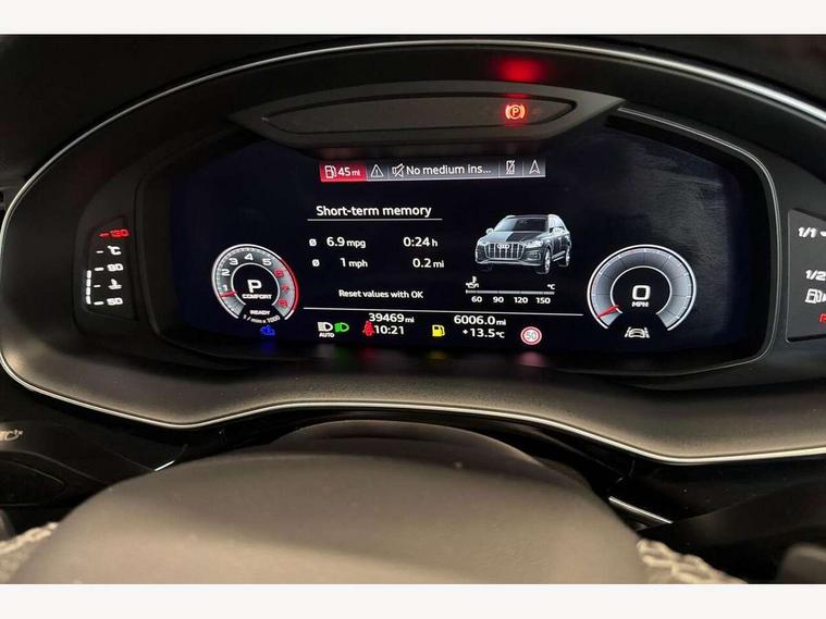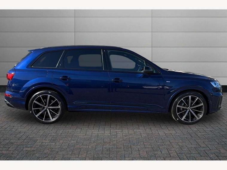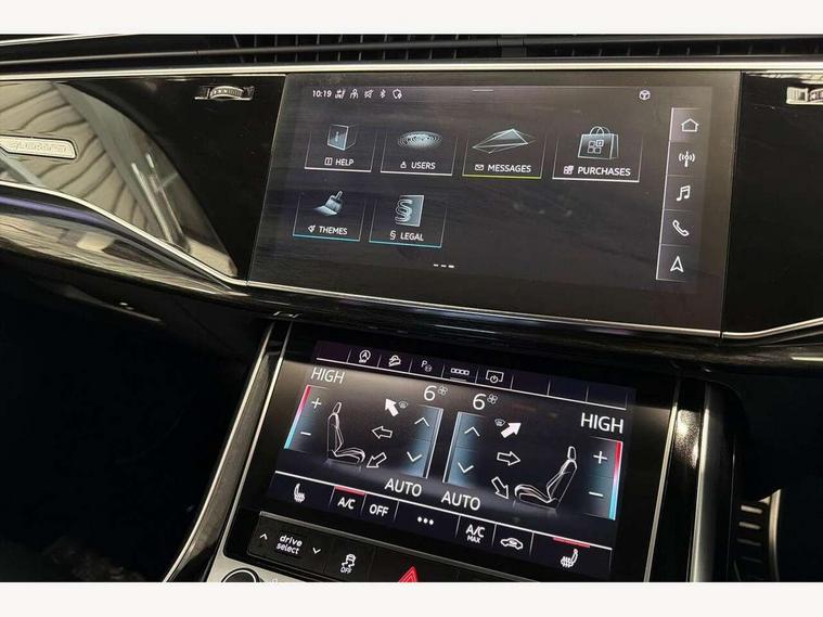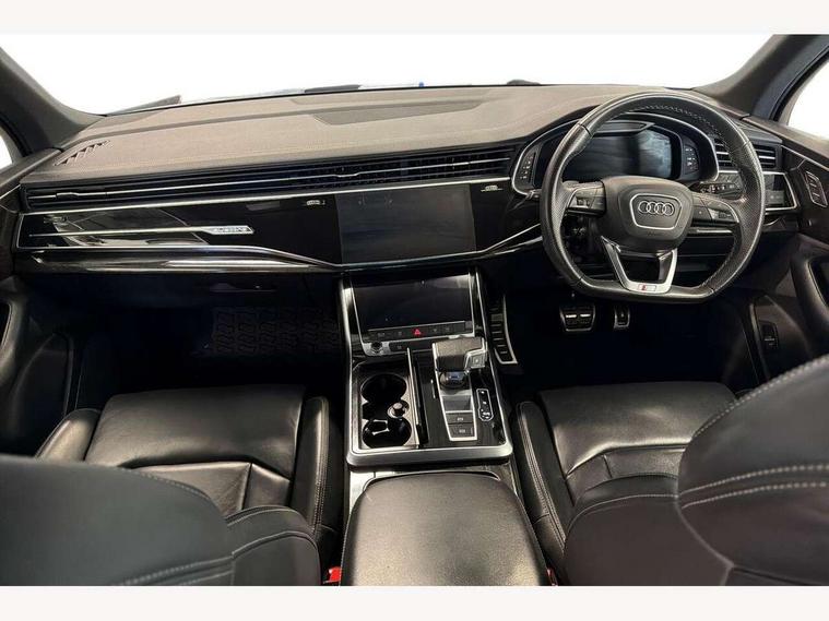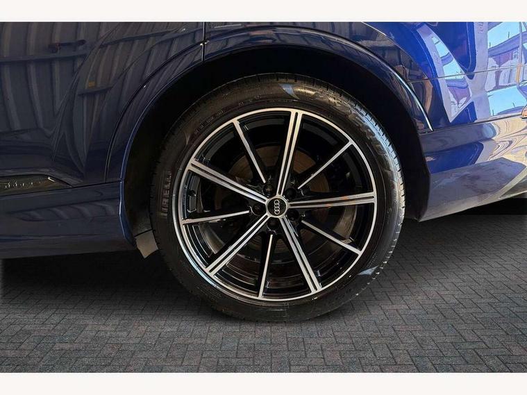 Audi connect safety and service (e-call), Audi connect with Amazon Alexa Integration, Audi drive select (Auto, Comfort, Dynamic, Efficiency, Individual, Off-road and All road), Bluetooth interface, Camera based traffic sign recognition, Electromechanical steering, MMI navigation plus with MMI touch screens includes 10.1" and 8.6" screens with haptic feedback, Natural voice recognition, Parking system plus with 360 degree display (front, rear and side sensors) - acoustic and visual park assist system, Power operated tailgate, Rear view camera, Smartphone interface includes wireless Apple carplay/Android Auto, Start/stop system, 48V Mild hybrid technology, 85 litre fuel tank, Adaptive air sports suspension, Quattro all wheel drive with self locking centre differential, Audi music interface - front 2 USB-C ports with charger and data functions, Audi sound system with 6 channel amplifier, 180 watt amplifying capacity and 10 loudspeakers including subwoofer, DAB digital radio module, 3rd brake light, Audi matrix LED headlights with dynamic front and rear indicators, Auto dimming frameless rear view mirror, Black roof rails, Bumpers in contrast paint scandium grey finish includes door trim and wheel arch trim strips, inlays in door strip contain quattro embossing, Electrically adj heated/folding + automatically dimming exterior mirrors with memory + automatic kerb side function for passenger side exterior mirror, Heat insulating glass in windshield, Integrated LED indications in door mirrors, LED daytime running lights, LED rear tail lights, Privacy glass - dark tinted rear and rear side windows from B-pillar backwards, Rear side wing doors, Rear wiper, 2 seat bench in 3rd row, 3 seat bench in 2nd row, 4 zone deluxe automatic climate control, 7 seat layout with ISOFIX points for the front passenger seat and rear passenger seat, Black cloth headlining, Comfort front centre armrest, Electric adjustable front seat with 4 way lumbar support, driver memory functionality, Folding rear seats, Front head restraints, Front/rear floor mats, Heated front seats, Illuminated door sill trims with S logo, LED interior ambient lighting, Luggage compartment cover, Luggage compartment sill protection in stainless steel, Rear head restraints, Single front passenger seat, Stainless steel pedals, Sunvisors with illuminated vanity mirrors, Titanium black styling pack - Q7/SQ7, 3 point seatbelts on all rear seats, Audi pre sense front, Child locks on rear doors, Driver and front passenger, front side and curtain airbags, Electromechanical parking brake, Electronic Stabilisation Control (ESC) including ABS, ASR and EDL, Extended pedestrian protection measures, Hill hold assist, Seatbelt monitoring, Tyre pressure loss indicator, Warning triangle and first aid kit, Anti theft alarm, Anti-theft wheel bolts and wheel loosening detection, Keyless Go, Remote central locking, Polished oak trim with grey finish inlay, Tool kit, Tyre repair kit,