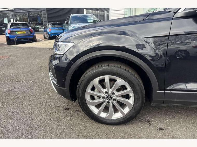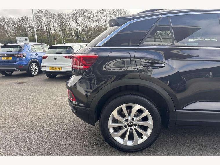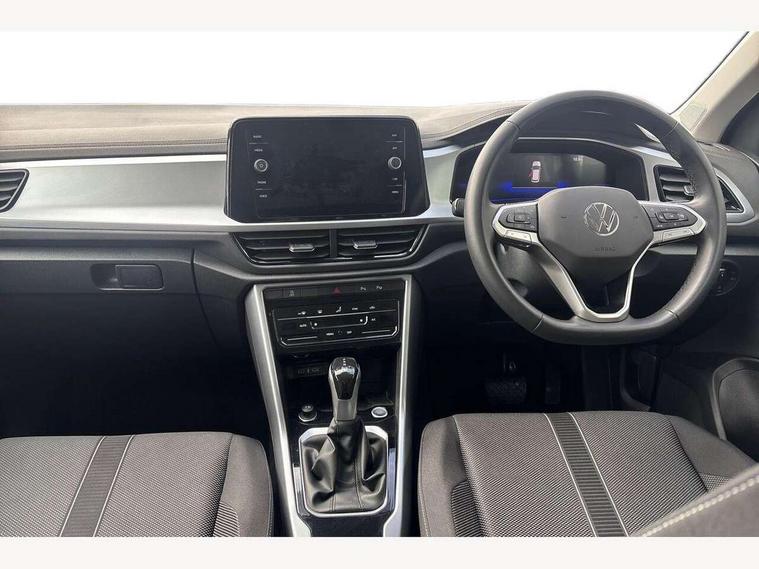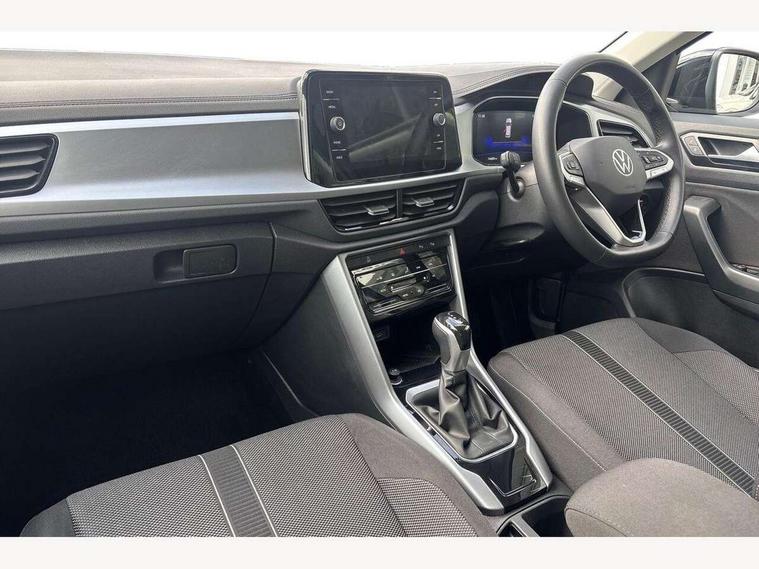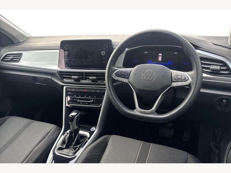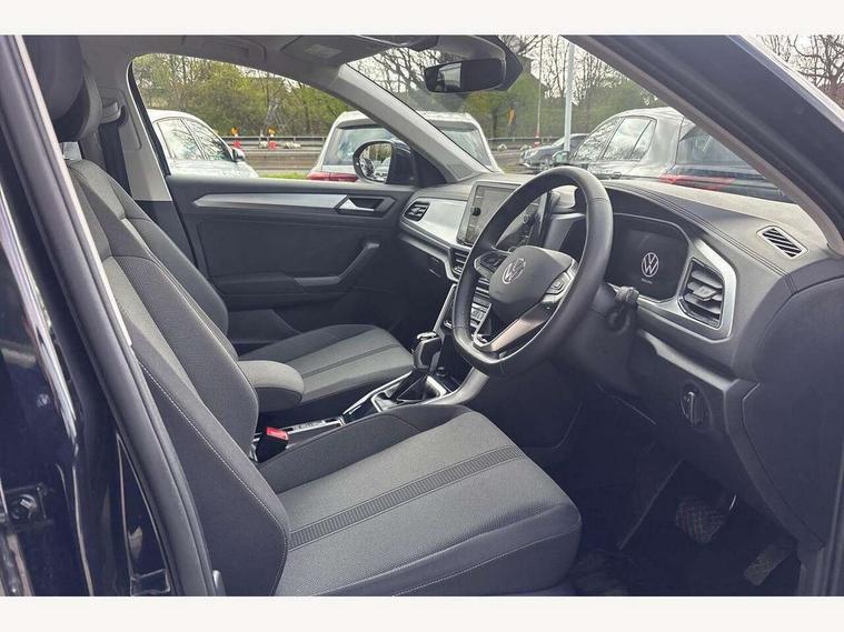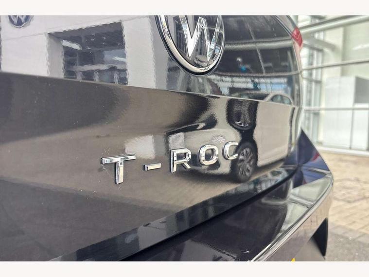 Advanced driver attention and drowsiness monitor, Dynamic road sign display, Emergency call service, Lane keeping system Lane Assist, Mobile phone interface, Modified key software - reduce switch off time for key status change to Long no motion, Online services, Park assist including front and rear parking sensors, Power assisted speed sensitive steering, Rear view camera, Service interval indicator, Tailgate/trunk lid release from outside, Think blue trainer driver tips and journey analysis, Warning sound and light for front seatbelts unfastened, Wireless app connect, Battery regeneration during braking, Front shock absorption, Rear shock absorption chassis with increased ride height, Start/stop function with battery regeneration, DAB Digital radio, Diversity antenna for FM reception, Music playback - MP3, WMA and AAC files, SD card slot, Simultaneous pairing of 2 compatible mobile devices, Title and cover art display, We Connect and We Connect Plus functionality, Auto dimming interior rear view mirror, Automatic hazard lights activation under emergency braking, Automatic headlight control with LED separate daytime running lights with coming/leaving home function, Black roof rails, Body coloured bumpers and radiator grille with chrome trim and front fog lamps with chrome bezel, Body coloured exterior mirror housings and door handles, Electrically adjustable and heated door mirrors, Extended roof spoiler, Exterior mirrors aspherical on driver side, convex on front passenger side, External USB type C socket and charging sockets, Front windscreen wiper with intermittent wipe and 4 position delay, Heated rear window, LED 3rd brake light, LED rear combination lamps, LED rear number plate lights, Power windows with comfort operation and circuit breaker, Privacy glass for rear side windows and rear window, Rain sensor, Rear exhaust tailpipe, Rear fog light on one side and reversing lights on both sides, Rear side wing doors, Rear wash/wipe with intermittent wipe setting, Remote electrically foldable door mirrors, puddle lights and reverse activated passenger's door mirror, 12V power socket in centre console, 3 rear head restraints, 3 seat bench in 2nd row, 4 load lashing points in luggage compartment, Air care climatronic air conditoning system with active combination filter and 2-zone temperature control, Black stitching for floor mats, Ceramique roof liner, Cloth upholstery, Door and side trim panel in cloth, Drawer under drivers seat, Driver/front passenger seat height adjustment, Front centre armrest, Front comfort sports seats, Front cupholders x 2, Front reading light, Front seat back storage pockets, Glove compartment door with light, Instrument lighting, white adjustable panel illumination, Interior ambient lighting and surround lighting, Interior light delay, Isofix child seat preparation, Leather gearshift handle, Load-through provision with cup holder when folded down ('Unsplit rear seat bench, split folding backrest, with centre armrest), Luggage compartment lighting, Lumbar support for driver's and front passengers seat, Non-folding front passenger seat backrest, Single front passenger seat, Storage compartment in left and right luggage area, Storage compartment in rear doors, Storage compartments in driver and front passenger doors, Sunvisors with illuminated vanity mirrors, Variable boot floor, height adjustable and removable, Driver assistance pack without proactive passenger protection - T-Roc Life/Match, 3 point height adj front seatbelts + pretensioners, 3 point seatbelts in outer rear with ECE label, ABS, Child locks on rear doors, City emergency braking and pedestrian monitoring, Driver and front passenger airbag with front passenger airbag deactivation, Driver and front passenger safety-optimised head restraints, Drivers seatbelt reminder, Electronic parking brake, Electronic Stability Control (ESC) inc EDL (Electronic Differential Lock) and ASR (Traction Control), Front and rear passengers curtain airbag system including front side airbags, Front disc brakes, Hill start assist, Predictive pedestrian protection, Rear disc brakes, Two tone horn, Tyre pressure loss indicator, Volkswagen roadside assistance, Alarm with interior protection, Keyless locking and starting system keyless access with safelock, Pewter matt decorative inserts for intrument panel, centre console and door panels at the front, Trims for alloy wheels,
