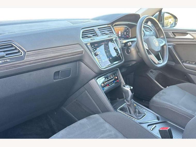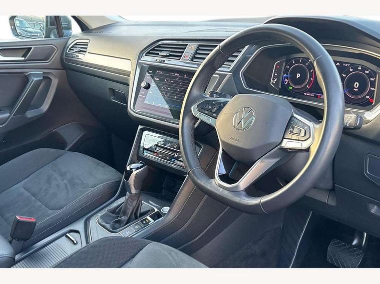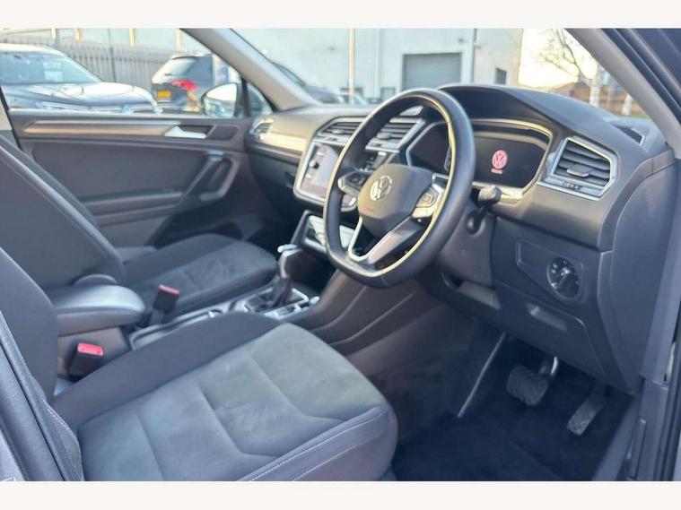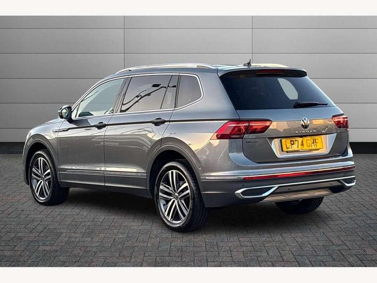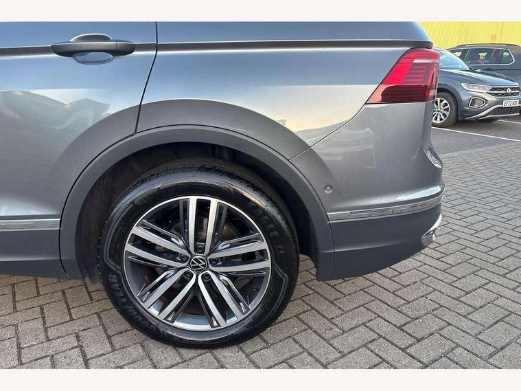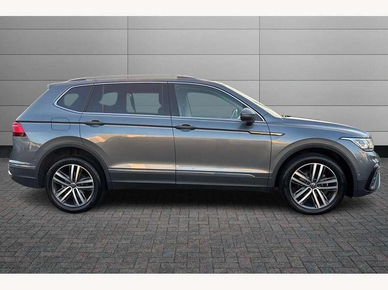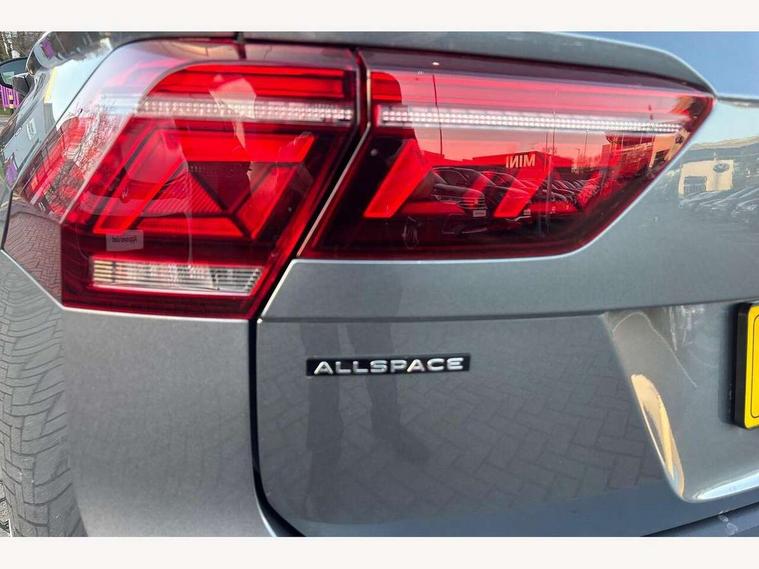 Adaptive cruise control, Advanced driver attention and drowsiness monitor, App-Connect, Digital cockpit pro, Driver profile selection, eCall emergency call service, Electric boot lid, Lane keeping system Lane Assist, Mobile phone interface comfort with inductive charging feature, Multifunction front facing camera, Power assisted speed sensitive steering, Speedo and rev counter, electronic odometer, trip, service interval display and exterior temperature gauge, Front wheel drive, Start-stop system with battery regeneration (recuperation - energy recovery during braking), 2 USB-C ports in the front, 1 USB-C charging socket on the center console in the rear, DAB Digital radio, Diversity antenna for FM reception, Auto dimming interior rear view mirror, Automatic headlight control system, Body coloured comfort bumpers, Chrome mouldings on side window, Coming/leaving home lighting function, Exterior badge deletion, Exterior mirror housings painted in silver, IQ light adv HBC, dyn light assist LED matrix headlamps, DH range, dark red LED rear combo light, poor weather, CL, LED headlamp with LED DRL and DCL - PXC, Privacy glass, Rain sensor, Rear fog light, Rear side wing doors, Rear wiper, Silver roof rails, Third brake light, Tilting and sliding panoramic sunroof, 12-volt outlet in centre console rear and luggage compartment, 12V socket in centre console, 3 head restraints in rear, 3 individual folding 2nd row seats, 3rd row 2 individual seats, Air Care Climatronic 3 zone automatic climate control with enhanced air filter and controls in the rear, Door and side trim panel, Drawers under front seats, Driver and front passenger seat height adjustment, Foldable front passenger seat backrest, Front + rear carpet mats, Front centre armrest, Front footwell illumination, Illuminated scuff plates, ISOFIX anchorage points for mounting 2 child seats on rear seats and i-Size child seats, Leather gearshift handle, Leather-wrapped multi-function steering wheel with shift paddles, LED interior light with switch off delay/dimmer and 2 front/rear LED reading lights, Sun visors with illuminated vanity mirrors, Ambience pack - Tiguan Allspace, Easy open and close pack with safelock - Tiguan Allspace, Park assist pack - Tiguan Allspace, 3 point seat belt for centre rear seat, 3 rear three point seatbelts, ABS+EBD+Brake assist, Driver and front passenger safety-optimised head restraints, Driver's and front passenger's airbag with front passenger's airbag deactivation switch, Electronic parking brake, Electronic Stability Control (ESC) inc EDL (Electronic Differential Lock) and ASR (Traction Control), Height adjustable front 3 point seatbelts + pretensioners, Manual rear child locks, Pedestrian monitoring, Rear disc brakes, Side airbag in front and rear with curtain airbag, Two tone horn, Warning buzzer for seatbelts if unfastened, Anti theft alarm system with interior monitoring, backup horn and towing protection, Anti-theft wheel bolts, Remote central locking with 2 remote folding keys, Chequered flag tinanium decorative inserts,
