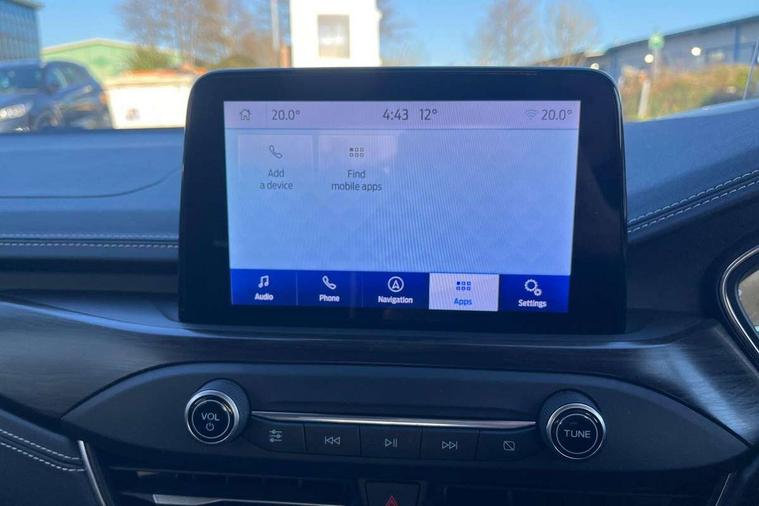 Active park assist system, Bluetooth system, Digital clock, Easy fuel capless refuelling system, Eco mode, Ford pass connect, Ford SYNC 3 nav system with DAB radio, 8" colour touch screen, voice control, app link, Apple car play/Android auto and 4.2" TFT coloured cluster, Front and rear parking sensors, Head up Display, Intelligent speed assist, Lane keeping aid with lane departure warning, PAS, Rear wide view camera, Selectable drive mode, Trip computer, 2 USB ports, Aux input, B&O Audio system with 360 degree sound, 10 speakers, 675 watts of total amplifier power and digital sound processor, 'Quickclear' heated windscreen/heated washer jets, Auto dimming rear view mirror, Auto headlamps (on/off), Automatic rain sensing wipers, Body coloured bumpers, Body coloured door handles, Body coloured electrically operated and heated door mirrors with side indicators, Door edge protectors, Electrically operated front and rear windows with one touch opening and closing, Front variable intermittent wipers with electric wash, Heated rear window, LED daytime running lamp, LED front fog lamps with cornering function, LED rear lamps, Polished twin tailpipe, Power folding door mirrors with puddle lights, Rear privacy glass, Tailgate wash/wipe, Unique door and instrument panel inserts, Vignale front grille and body styling, 3 spoke leather trimmed steering wheel with integrated audio controls, 6 way power adjustable driver seat, 60/40 split back and cushion rear seats with 2 height adjustable headrests, Ambient LED multi colour interior lighting, Centre console with sliding front armrest, Dual zone electronic air temperature control, Front passenger seat manual height and lumbar adjust, Front/rear floor mats, Heated front seats, Heated steering wheel, Height adjustable front headrests, Isofix child seat preparation, Leather gear knob, Leather upholstery, Load through ski hatch, Reach + rake adjustable steering column, Rear centre headrest, Soft console knee pads, ABS+Electronic Brake force Distribution, Auto hold function, Driver airbag, Electronic parking brake, Electronic stability control, Front and rear seatbelt reminder, Front inertia reel height adjustable seatbelts with pre-tensioners, Front passenger airbag, Front side airbags, Hill start assist, Passenger airbag deactivate switch, Post collision braking, Pre collision assist with autonomous emergency braking and pedestrian/cyclist detection, Side curtain airbags, Three rear inertia reel lap/diagonal seatbelts, Tyre pressure monitoring system, Ford keyfree system with Keyless entry and keyless start, MyKey system, Remote central locking & engine immobiliser, Thatcham category 1 alarm, 18" 5x3 spoke liquid aluminium alloy wheels, Mini steel spare wheel,