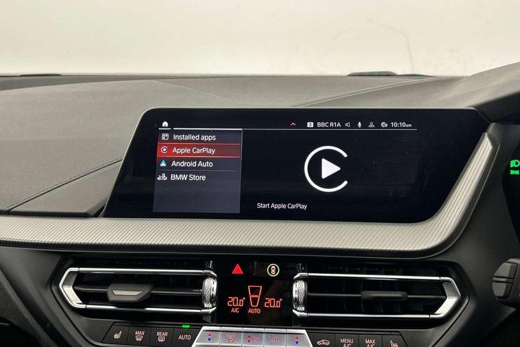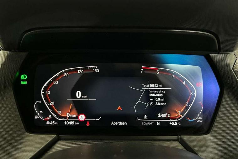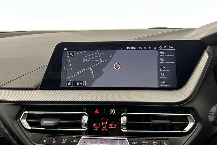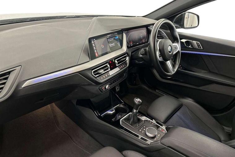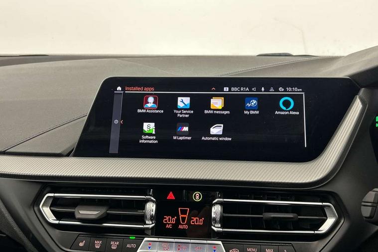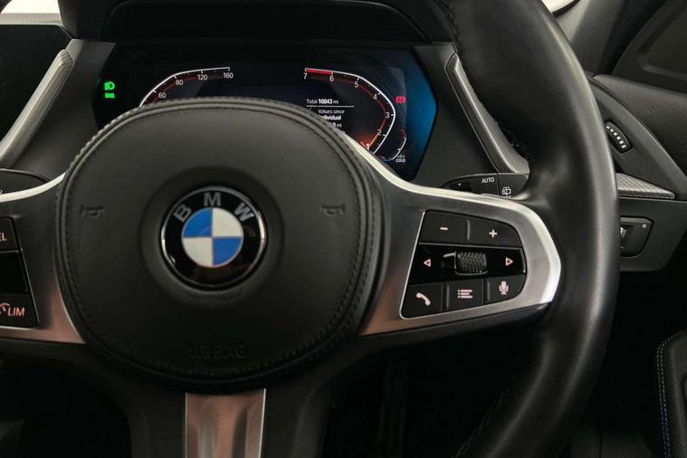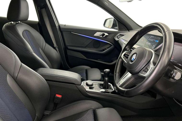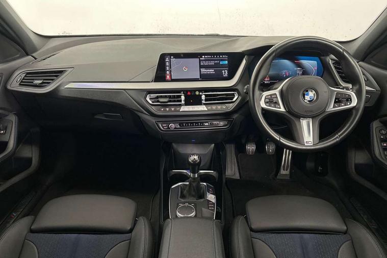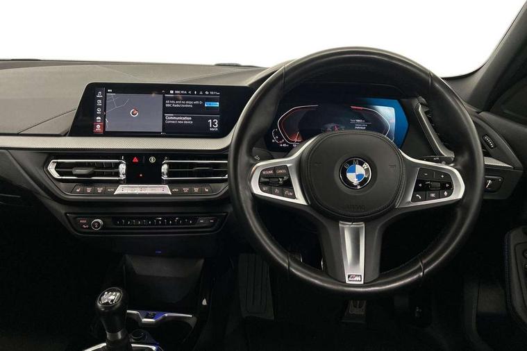 Active guard plus, Attentiveness assist, BMW ConnectedDrive online services, BMW Teleservices, Check Control warning system for monitoring of lights and door/luggage compartment open warning, Cruise control with brake assist, Eco pro mode, Front axle single joint with specific axle kinematics to minimise drive influences on steering + provide increased rigidity agile driving behaviour, Integrated owners handbook, Lane departure warning system, Oil sensor for level and grade, On board computer, Optimum shift indicator, Personal Profile, Pull away assistant, Rigidly mounted rear subframe - Multi link construction with separate spring / damper configuration and excellent driving characteristics, Speed limit Info including no-overtaking indicator, Speed limiter, Aluminium lightweight construction, Anti roll bar front and rear, Balancer shaft, Double VANOS twin scroll turbocharging system, Drive Performance Control, Electronic differential lock, High precision injection, M sport suspension, Petrol Particulate Filter, Twin tube gas filled shock absorbers with degressive characteristic curve, VALVETRONIC engine management, DAB Digital radio, Auto dimming rear view mirror, Automatic headlight beam throw control, Automatic windscreen wipers and automatic headlight, Body colour door handles, Body colour mirror caps, Body colour roof trims, Chrome 'M' logo side designation, Chrome exhaust twin tailpipes round 90mm in left, Chrome kidney grille frame with Satin Aluminium struts, Direction indicator side lights in exterior mirrors, Fading support, Folding side mirrors with auto dimming/folding wing mirrors with auto dimming, Follow me home headlights, Front and rear bumper system with replaceable deformation elements, Front and rear electric windows with open and close fingertip control, anti trap facility and comfort closing, Front door sill finishers in black plastic with M designation in metallic look, Green tinted heat protection glazing, Heated, electrically adjustable exterior mirror aspheric on driver side, convex on passenger side, High gloss shadowline window frame, Recess cover mirror frames and B/C pillar embelisher trim, High level third brake light, Integrated front windscreen with washer jets, LED daytime running lights, LED eyebrow turn indicators, LED front fog lights, LED Headlights, Lightweight engineering, Matt black air guide grilles, Matt black wheel arch trim, Model designation on electric bootlid, Nearside reverse light in rear light cluster, Preparation for high beam assistant, Rear fog lights, Rear side wing doors, Rear window wiper, Shark fin antenna, Trailer stabilisation logic, Visible VIN plate, Welcome lighting, 12V power socket in front centre console with blanking plug, 3 rear seat head restraints, 3 seat bench in 2nd row, 3 spoke sports leather steering wheel in black leather with black stitching and decorative finisher in pearl chrome, specific M badge + leather knob, Anthracite headlining, Black boot net with lashing eyes, Cargo function on 2nd seat row, Child seat ISOFIX attachment for two outer rear seats and front passenger seat with anchorage points, Conditioned based service, Driver and front passenger seat heating, Folding rear clothes hook, Four grab handles integrated in roof lining, Front and rear door pockets with bottle holders, Front and rear side armrest integrated into door trim, Front armrest, Front sports seats, Gearshift lever with M designation, Glove compartment, Height adjustable front head restraints, Luggage compartment for bag hooks on left and right, foldable luggage compartment liner and four lashing eyelets, Manual adjust steering wheel, Multi-function controls for steering wheel, Single front passenger seat, Storage compartment in centre console, Sun visors with vanity mirrors and insert tab, Two front centre console cupholders, Two zone automatic air conditioning, Velour floor mats, Additional interior lighting pack - 1 Series, BMW live cockpit professional pack- 1 Series, Connected pack professional - 1 Series, Interior lights pack - 1 Series, M Sport exterior styling aerodynamics pack - 1 Series, 2 tone horn, 3 point seatbelts on all seats, front pyrotechnic belt tensioners, stopper and belt force limiters, rear coded belt buckles, Airbags - Front driver/passenger, front and rear curtain head protection, front side, manual deactivation of front passenger airbag, Anti lock braking system (ABS) with brake assist, BMW emergency call, Brake drying, Braking readiness, Child proof locking system in rear door, City braking function, Comfort modes, Cornering brake control, Crash sensor activating central locking release, hazard warning lights, fuel cut off, interior lighting + activation of safety battery terminal clamp, Driver and front passenger seat belt security check, Dynamic stability control + (DSC+), Dynamic Traction Control - DTC, Electrically operated hand brake, Front and rear disc brakes, Seatbelt warning, Side impact protection, Tyre pressure monitoring system, Warning triangle and first aid kit, Central locking switch for all doors, fuel filler cap and luggage compartment, Deadlocking function system to all doors, Drive away locking system on all doors and luggage compartment with de-activated in iDrive settings, Locking wheel bolts, Remote control with integrated key with High-gloss Black inlay and M designation and 1 button for open/ close lock, window, open luggage compartment, Start/stop button illuminated in centre console with keyless engine start and auto start stop deactivation button, Thatcham Cat.1 alarm and immobiliser, Wheel slip limitation close to the actuator (ARB), Contrast stitching on instrument panel, Electrically powered 12V compressor, Reduced rolling resistance tyres,