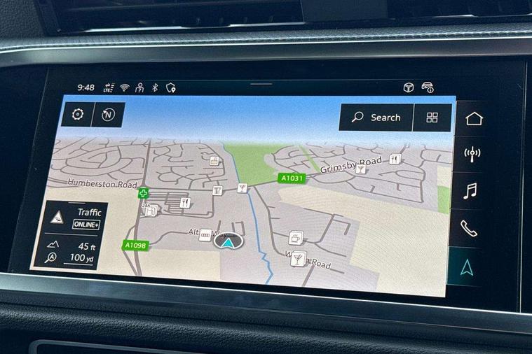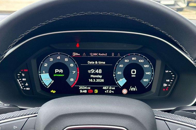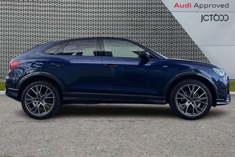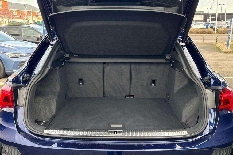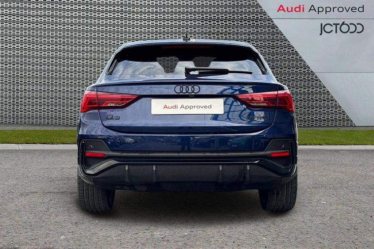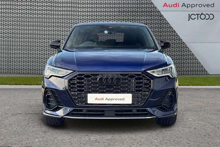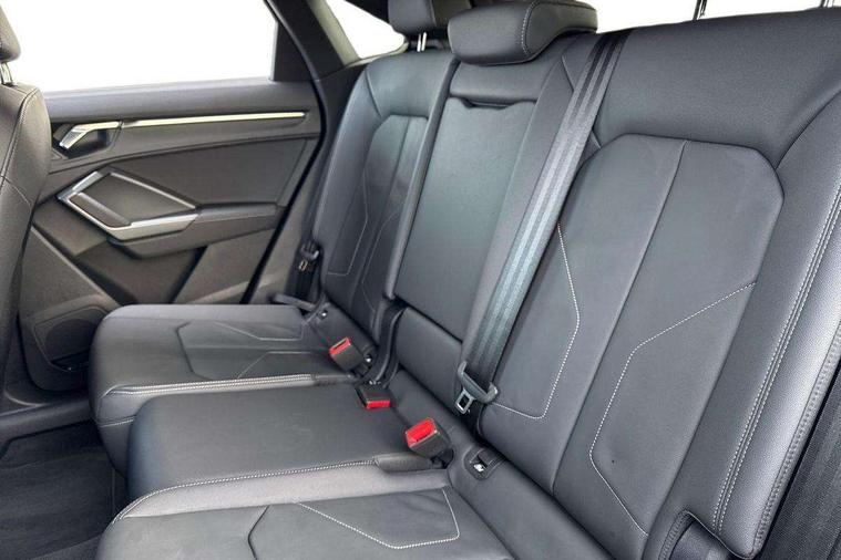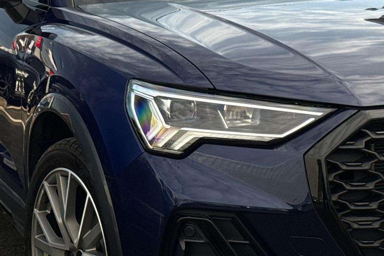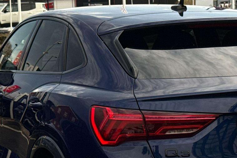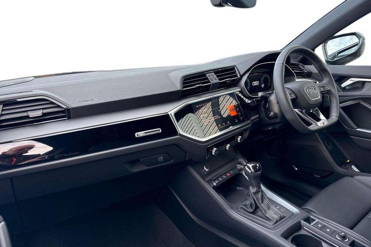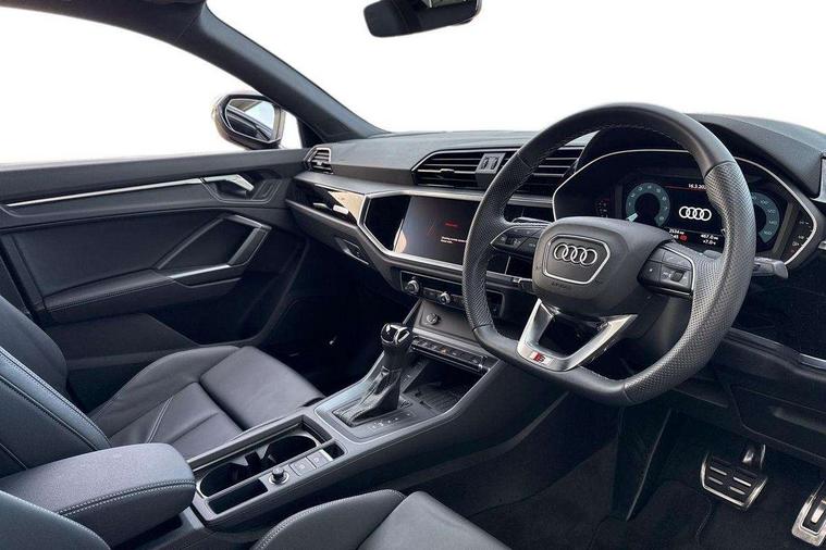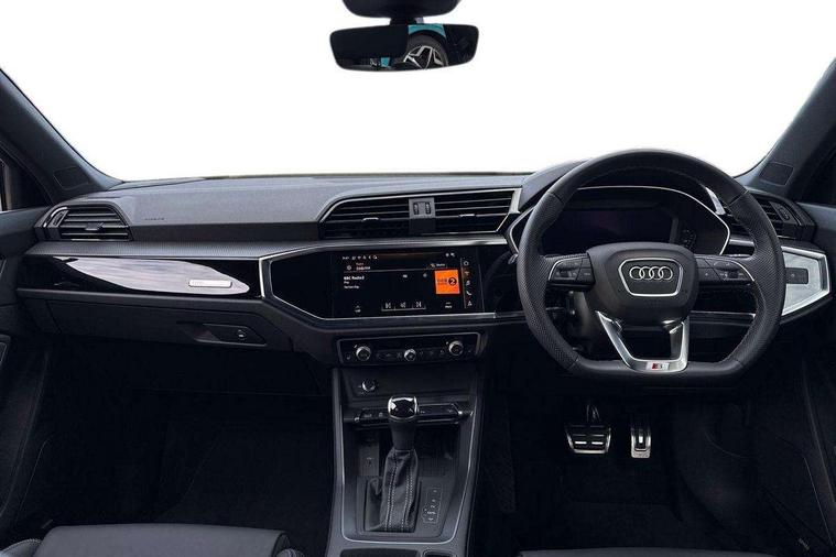 Audi connect safety and service, Audi drive select, Audi lane departure warning, Audi Virtual Cockpit - 10.25" display, Bluetooth interface, Camera based traffic sign recognition, Distraction and Fatigue warning, Legal emergency call, MMI Navigation Plus with high resolution 10.1 inch touchscreen colour display, Power operated tailgate, Progressive steering, Service interval indicator, Smartphone interface includes wireless Apple carplay/Android Auto, Start stop system with recuperation, Voice control system with natural language interaction, Sports suspension, 2 USB-C ports with charge and data functions, 6 passive loudspeakers, DAB digital radio module, Acoustic windscreen, Audi Beam uses LEDs to project the Audi logo onto the ground as you exit your Q3, Auto dimming door mirrors, Auto dimming frameless rear view mirror, Electrically folding, adjustable and heated door mirrors with integrated LED side indicators and kerb view function for passenger side, Front and rear electric windows, Front fog lights, Front underbody protection in manhattan grey paint finish, High gloss black finish B and C pillars, Honeycomb design radiator grille in matt anthracite black, LED Dynamic rear indicators, LED headlights with LED daytime running lights, LED rear lights, LED third brake light, Privacy glass dark tinted rear and rear-side windows (from B-pillar backwards), Rain and light sensors, Rear diffuser grille in grained matt black, Rear diffuser strip in matt anthracite black, Rear side wing doors, Rear underbody protection in matt black, Rear wiper, S line front and rear bumpers and side skirts in contrasting Manhattan grey paint finish, Variable front intermittent wipers, 12V socket in rear centre console, 3 seat bench in 2nd row, 40:20:40 folding with manual adjustment for 60:40 forwards/backwards position and backrest angle, Adjustable rear seat bench/backrest with centre armrest and cupholder, Black carpet mats, Black cloth headlining, Dual zone electronic climate control, Electric lumbar support, Front and rear black floor mats with contrast stitching in rock grey, Front and rear headrests, Front centre armrest, Height and reach adjustable steering wheel, Illuminated door sill trims with S logo, ISOFIX child seat mounting for front passenger with airbag deactivation and outer rear seat including top tether attachment point for outer rear seats, Luggage compartment sill protection in stainless steel, Manual front seats with height adjustment, Perforated leather gearknob, Single front passenger seat, Stainless steel pedals, Twin leather upholstery with front sport seats + S embossing, Black styling pack - Q3, Non smoking pack - Q3, 3x3 point rear seatbelts, 6 airbags - Driver, front passenger, curtain and side windows, Audi pre-sense front with pedestrain and cyclist recognition, Electrically operated child locks on rear doors, Electromechanical parking brake, Electronic stabilisation control including ABS, ASR and EDL, Front seatbelt reminder, Hill descent control, Hill hold assist, Pre sense basic, Seatbelt monitoring, Tyre pressure warning, Warning triangle and first aid kit, Anti theft wheel bolts, Immobiliser, Remote central locking, Thatcham approved category 1 anti theft alarm, Aluminium look interior elements, Detail dashboard around MMI touch colour display in glass look, black with surround in aluminium look, Leatherette door armrest, Piano black inlay,