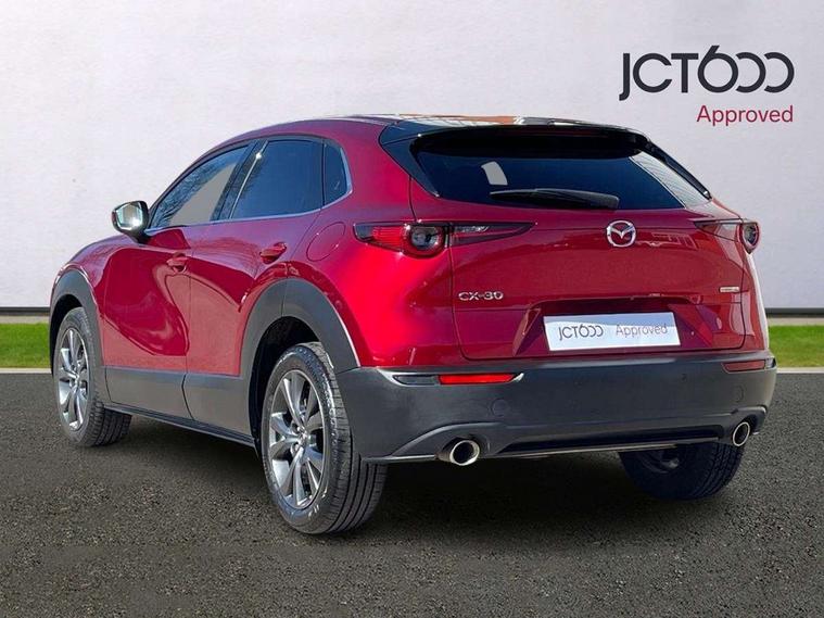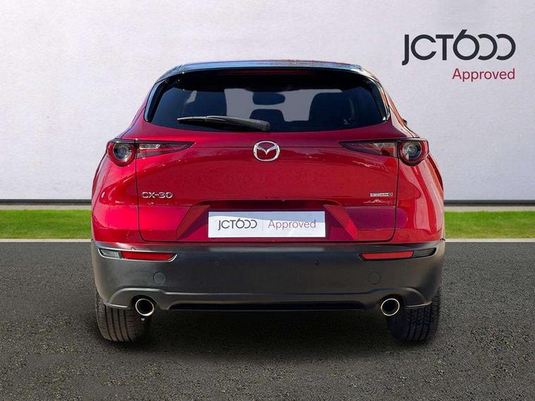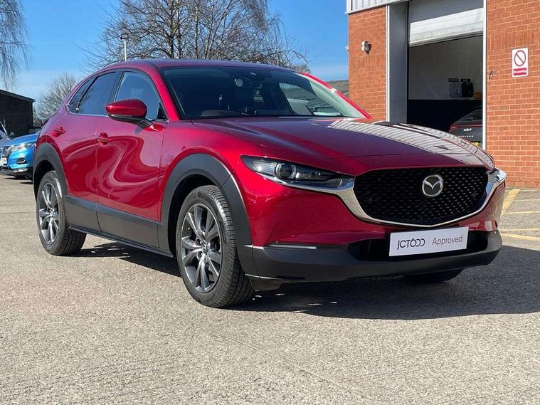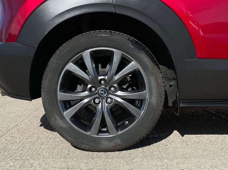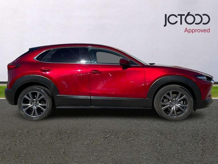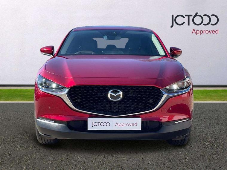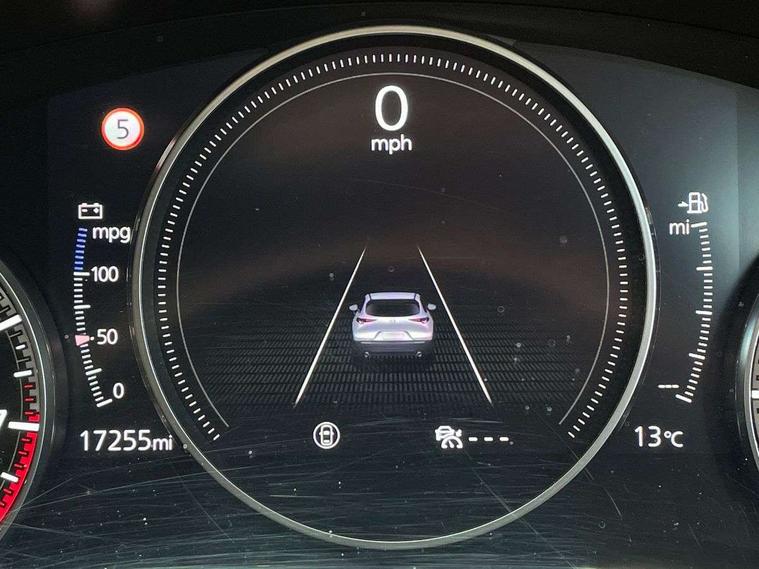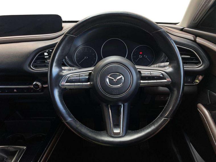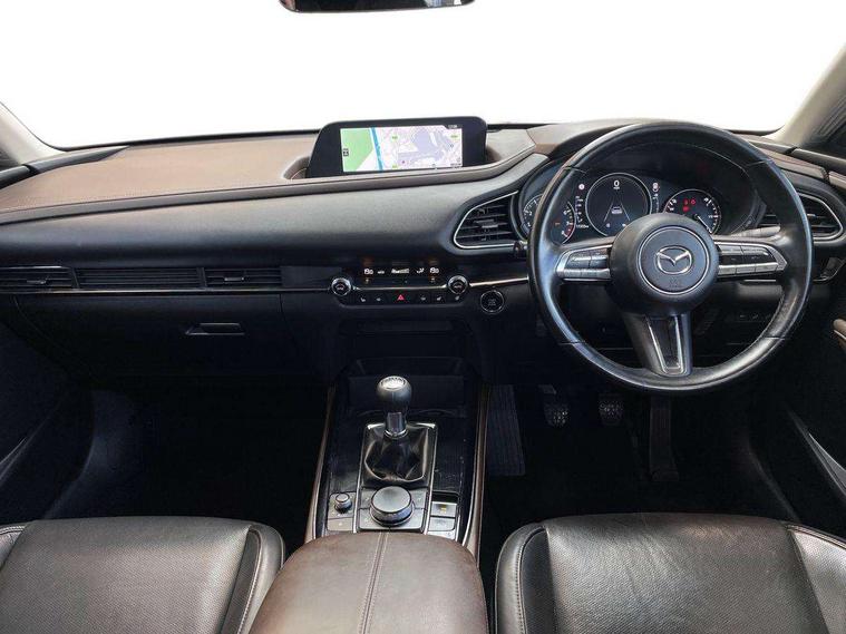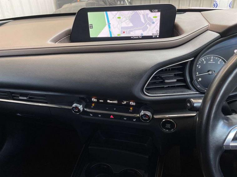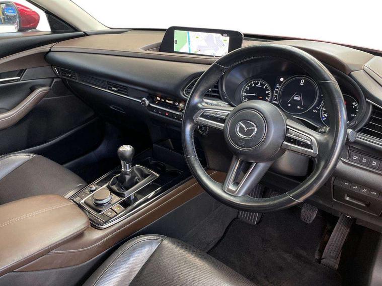 7" TFT Colour driver instrument panel display, 8.8" Colour centre touch screen display with Mazda Connect infotainment, Adaptive cruise control (Mazda radar cruise control), Apple car play/Android Auto, Blind spot monitoring with rear cross traffic alert, Driver attention alert system, E-call with GPS, Emergency stop signalling system, Engine start/stop button, Front and rear parking sensors, Integrated bluetooth, Integrated Mazda navigation system, Intelligent speed assist, Lane keep assist system (LAS) with Lane departure warning system (LDWS), Mazda connected services, PAS, Power lift gate, Reversing camera, Service indicator, Traffic sign recognition, Trip computer, Windscreen projected colour active driving display (HUD), i-stop, 2 USB charging ports in front inner central armrest, AM / FM / DAB radio with 8 speakers, Multimedia Commander including separate volume dial, Steering wheel mounted audio/bluetooth controls, Adaptive LED Headlights, Auto dimming driver's door mirror, Auto headlight levelling, B-pillar and C-pillar garnishes in gloss black finish, Body coloured, electrically adjustable, heated auto power folding door mirrors with integrated indicators, Chrome finish signature wing in front grille, Coming/leaving home lighting function, Door mirrors with adjustable memory and tilt-down function when reversing, Dual chrome exhaust, Dusk sensing headlights, Electric front/rear windows with one touch auto up/down, Frameless auto dimming interior rear view mirror, Front kodo turn signal, Gloss black front grille, High beam assist, LED signature daytime running lights, Piano black rear roof spoiler, Power tilt/slide sunroof, Privacy glass (rear side windows and rear screen), Rain sensing front wipers with adjustable speed and intermittent wipe, Rear fog lights, Rear side wing doors, Rear wiper, Signature LED rear combination lights, Third brake light, 12V power outlet in centre console, 3 seat bench in 2nd row, 60/40 split fold down rear seats, Chrome horn pad ring, Chrome interior trim accents with steering wheel centre bezel, surround of engine start / stop button and glove box handle, Dashboard, door cards and front centre armrest in rich brown leather, Driver and front passenger visors with covered vanity mirror and driver ticket holder, Driver's seat power slide, recline, height, seat tilt and lumbar adjustment with head up display and driver door mirror memory, Driver, front passenger and two rear door storage, Driver, Front passenger and two rear grab handles with coathooks, Dual zone climate control air conditioning with rear air vents, Folding rear centre armrest with two cup holders, Front and rear (x3) head restraints, Front and rear LED lighting, Front armrest, Front centre storage with two cupholders with lid, Front passenger seatback pockets, Front passengers seat manual slide, recline and height adjustment, Gear shift indicator, Glovebox illumination, Heated front seats with 3 stage setting, Heated steering wheel, ISOFIX child seat anchorage points attached on outer rear seats, Leather upholstery with interior accents, Leather wrapped gear shift knob, Leather wrapped steering wheel with telescopic and tilt adjustment, LED luggage compartment lighting, Light roof headlining and pillars, Rear armrest inner material in cloth, Roof mounted sunglasses holder, Single front passenger seat, 3 point ELR front seat belts x2 with pretensioners, 3 point ELR rear seat belts, Anti-lock braking system (ABS), Drivers knee airbag, DSC - Dynamic Stability Control, Electronic parking brake with auto disengage function and auto hold function, Front and rear curtain airbags, Front dual stage driver and single stage front passenger airbags, Front passenger airbag cut-off switch, Front side airbags, Front smart city brake support, G-Vectoring control plus, Hill launch assist, Manual child lock in rear doors, Mild Hybrid system with regenerative braking, Seatbelt reminder for driver/front passenger and rear seats, Traction control system (TCS), Tyre pressure monitoring system (TPMS), Remote central locking with deadlocking and automatic door lock when driving, Smart keyless entry, Thatcham accredited alarm and immobiliser, Dark vinyl door panel inserts, 18" Bright silver metallic alloy wheels, Emergency tyre repair kit,
