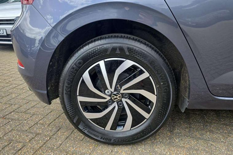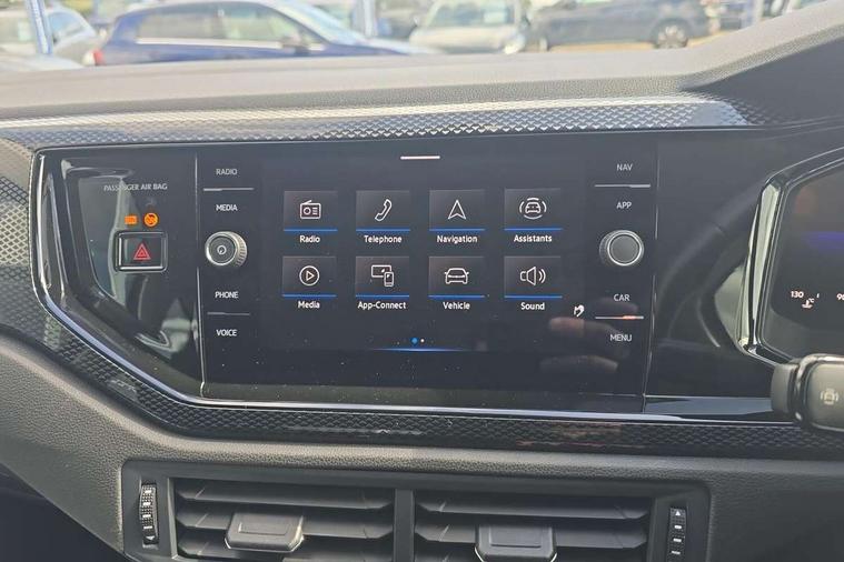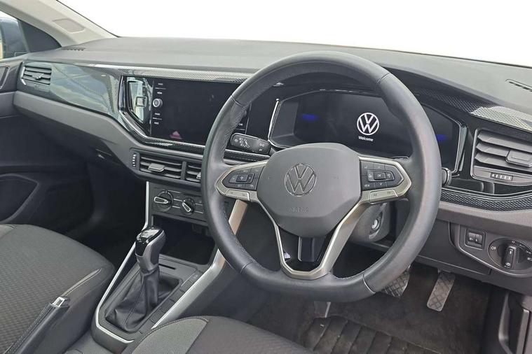 Adaptive cruise control with follow-to-stop and speed limiter, Advanced driver attention and drowsiness monitor, Bluetooth mobile phone interface, Dynamic road sign display, Emergency call service, Front assist system, Power assisted speed sensitive steering, Preparation for We connect and We connect plus, Speedo and rev counter, electronic odometer, trip, service interval display and fuel gauge, Standard rear axle, Travel Assist - Lane keeping system and traffic jam assist, Travel assist including emergency assist, Trip computer, Warning signal and warning light for front and rear seatbelts not fastened, Washer fluid level indicator, Wireless app connect, Front wheel drive, Rear shock absorpion, Start-stop system with battery regeneration (recuperation - energy recovery during braking), DAB Digital radio, Diversity antenna for FM reception, Front and rear 6 speakers, Automatic dimming interior rear view mirror, Body colour bumpers, Body colour door handles, Body colour door mirrors, Electric front windows, Heat insulating darkened glass in side and rear windows, Heat insulating glass windscreen, Power folding adjustable/heated exterior mirrors and front passenger exterior mirror lowering function, Rain sensor, Rear electric windows, Rear fog light, Rear side wing doors, Rear windscreen washer and wiper with interval delay, Third brake light, 12V power socket in centre console, 2 front and 2 rear reading lights, 2 USB-C ports in the front, 2 USB-C charging sockets on the center console in the rear, 3 rear head restraints, 60/40 split folding rear seat and rear seat bench not split, Chrome plated radiator grille inserts, air vent surrounds and light switch surrounds, Door and side trim panel, Driver and front passenger seat height adjustment, Driver/passenger sunvisors with illuminated vanity mirrors, Front centre armrest, Front seat backrest storage pockets, Front standard seats, Handbrake lever handle in leather, Hartley/Thomas cloth upholstery, Headliner in recycled material, Isofix child seat preparation easy-fit (for two outer rear seats, and front passenger seat) compatible with I-size, Leather trimmed gear knob, Luggage compartment cover, Luggage compartment floor, Luggage compartment lighting, Single front passenger seat, Standard pedal cluster, Three spoke leather wrapped multifunction steering wheel with shifting paddles, Light and vision pack - Polo, 3 point height adj front seatbelts + pretensioners, 3x3 point rear seatbelts, ABS, Driver and front passenger airbag with front passenger airbag deactivation, Drivers and front passengers safety optimised head restraints, ESC (Electronic stability control) + EDL (Electronic Differntial lock) and ASR (Traction control), Extended and predictive pedestrian/ cyclist protection, Front curtain and side airbags with center airbag, Front disc brakes, Hill hold control, Manual child lock in rear doors, Rear drum brakes, Single tone horn, Tyre pressure loss indicator, Alarm with interior protection, Anti-theft alarm system with interior monitoring, backup horn, and towing protection, Anti-theft wheel bolts, Electronic engine immobiliser, Lava stone black gloss/matt decorative inserts in dash and front door panels, Low rolling resistance tyres,