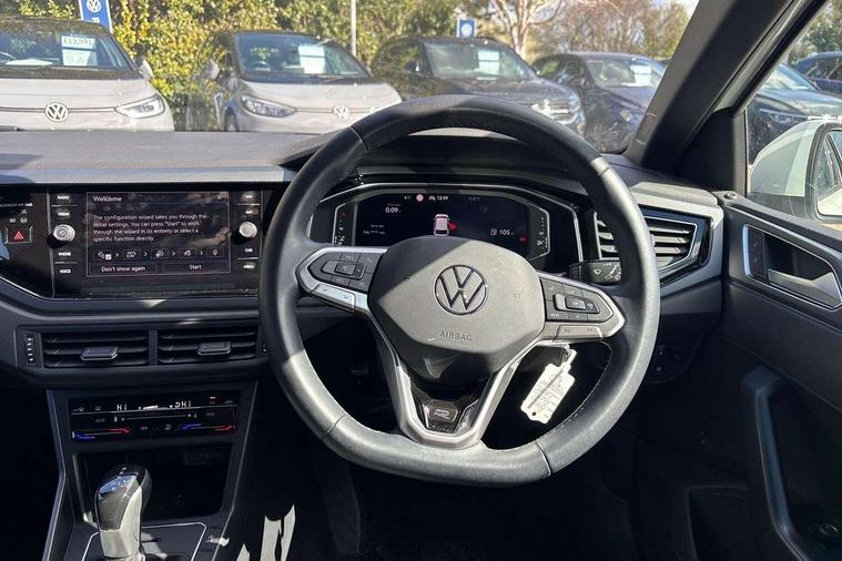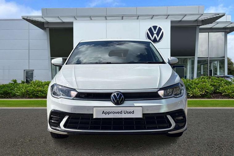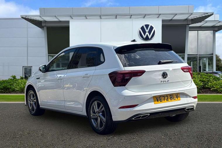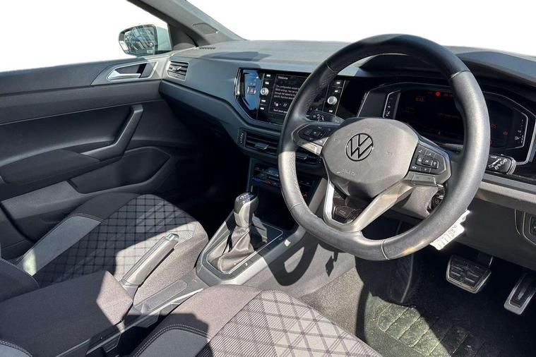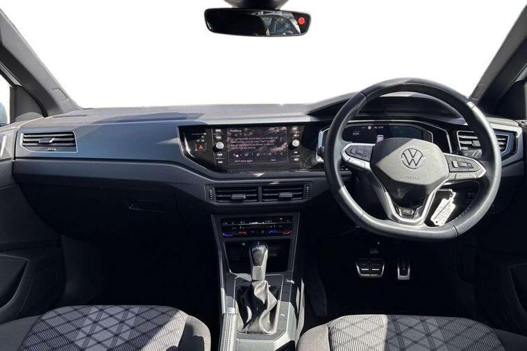 Adaptive cruise control with follow-to-stop and speed limiter, Bluetooth mobile phone interface, Digital Cockpit Pro with 10.25" Display, Driver alert system, Dynamic road sign display, Emergency call service, Power assisted speed sensitive steering, Preparation for We connect and We connect plus, Speedo and rev counter, electronic odometer, trip, service interval display and fuel gauge, Standard rear axle, Travel Assist - Lane keeping system and traffic jam assist, Travel assist including emergency assist, Trip computer, Warning signal and warning light for front and rear seatbelts not fastened, Washer fluid level indicator, Wireless app connect, Front wheel drive, Rear shock absorpion, Start-stop system with battery regeneration (recuperation - energy recovery during braking), DAB Digital radio, Diversity antenna for FM reception, Front and rear 6 speakers, Body colour bumpers, Body colour door handles, Electric front windows, Front scuff plates with R-Line logo, Heat insulating darkened glass in side and rear windows, Heat insulating glass windscreen, Power folding adjustable/heated exterior mirrors and front passenger exterior mirror lowering function, Rear electric windows, Rear fog light, Rear side wing doors, Rear windscreen washer and wiper with interval delay, Third brake light, 12V power socket in centre console, 2 USB-C ports in the front, 2 USB-C charging sockets on the center console in the rear, 3 rear head restraints, 60/40 split folding rear seat and rear seat bench not split, Air care climatronic air conditoning system with active combination filter and 2-zone temperature control, Black roof lining, Chrome plated radiator grille inserts, air vent surrounds and light switch surrounds, Door and side trim panel, Driver and front passenger seat height adjustment, Driver/passenger sunvisors with illuminated vanity mirrors, Front + rear carpet mats in recycled material, Front centre armrest, Front footwell illumination, Front seat backrest storage pockets, Front sports comfort seats, Handbrake lever handle in leather, Headliner in recycled material, Isofix child seat preparation easy-fit (for two outer rear seats, and front passenger seat) compatible with I-size, Karoso artvelours cloth upholstery, Leather trimmed gear knob, LED interior light with switch off delay and dimmer, 2 reading lights front and rear, Luggage compartment cover, Luggage compartment floor, Luggage compartment lighting, Lumbar adjustment for front seats, Single front passenger seat, Stainless steel pedals, Standard pedal cluster, Three spoke leather wrapped multifunction steering wheel with shifting paddles, Light and sight pack - Polo R-Line/Black Edition, 3 point height adj front seatbelts + pretensioners, 3x3 point rear seatbelts, ABS, Driver and front passenger airbag with front passenger airbag deactivation, Drivers and front passengers safety optimised head restraints, ESC (Electronic stability control) + EDL (Electronic Differntial lock) and ASR (Traction control), Extended and predictive pedestrian/ cyclist protection, Front curtain and side airbags with center airbag, Hill hold control, Manual child lock in rear doors, Single tone horn, Tyre pressure loss indicator, Alarm with interior protection, Anti-theft alarm system with interior monitoring, backup horn, and towing protection, Anti-theft wheel bolts, Electronic engine immobiliser, Chrome applications on rotary light, mirror adjustment, window regulator switches, outlet with frame in black, Dark grey anodised matt decorative inserts in dash and front door panels, Low rolling resistance tyres,