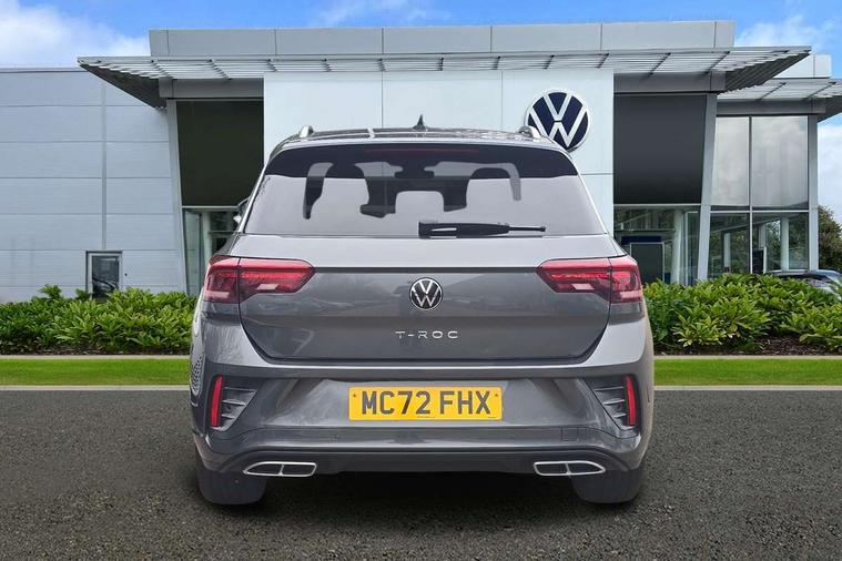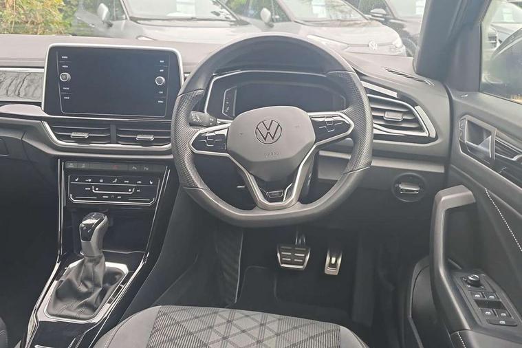 10.25" Digital cockpit pro, Bluetooth mobile phone interface, Driver alert system with fatigue detection, Driver tips and journey analysis, Emergency call service, Lane keeping system Lane Assist, Modified key software - reduce switch off time for key status change to Long no motion, Online services, Park assist including front and rear parking sensors, Service interval indicator, Tailgate/trunk lid release from outside, Think blue trainer driver tips and journey analysis, Warning sound and light for front seatbelts unfastened, Wireless app connect, Battery regeneration during braking, Start/stop function with battery regeneration, Diversity antenna for FM reception, Front and rear 6 speakers, Music playback - MP3, WMA and AAC files, Premium USB cable in choice of either Apple or Android smartphone compatibility, SD card slot, Simultaneous pairing of 2 compatible mobile devices, Title and cover art display, We Connect and We Connect Plus functionality, 3rd brake light, Auto dimming interior rear view mirror, Automatic hazard lights activation under emergency braking, Automatic headlight control with LED separate daytime running lights with coming/leaving home function, Extended roof spoiler, Exterior mirrors aspherical on driver side, convex on front passenger side, External USB type C socket and charging sockets, Front windscreen wiper with intermittent wipe and 4 position delay, Heated rear window, LED Plus headlamps, LED rear combination lamps, LED rear number plate lights, LED tail lamp rear comination lamps, Power windows with comfort operation and circuit breaker, R-Line design body coloured bumpers, Rain sensor, Rear exhaust tailpipe, Rear fog light on one side and reversing lights on both sides, Rear side wing doors, Rear wash/wipe with intermittent wipe setting, Remote electrically foldable door mirrors, puddle lights and reverse activated passenger's door mirror, 12V power socket in centre console, 3 rear head restraints, 3 seat bench in 2nd row, 4 load lashing points in luggage compartment, Air care climatronic air conditoning system with active combination filter and 2-zone temperature control, Black roof lining, Chrome plated radiator grille inserts, air vent surrounds and light switch surrounds, Door and side trim panel with leatherette insert, Drawer under drivers seat, Front + rear carpet mats, Front centre armrest, Front cupholders x 2, Front footwell illumination, Front reading light, Front scuff plates with R logo, Instrument lighting, white adjustable panel illumination, Interior ambient lighting and surround lighting, Interior light delay, Isofix child seat preparation, Leather gearshift handle, Load-through provision with cup holder when folded down ('Unsplit rear seat bench, split folding backrest, with centre armrest), Luggage compartment lighting, Single front passenger seat, Stainless steel pedals, Storage compartment in left and right luggage area, Storage compartment in rear doors, Storage compartments in driver and front passenger doors, Sunvisors with illuminated vanity mirrors, Variable boot floor, height adjustable and removable, Driver assistance pack without proactive passenger protection - T-Roc, 3 point height adj front seatbelts + pretensioners, 3 point seatbelts in outer rear with ECE label, ABS, Child locks on rear doors, Driver and front passenger airbag with front passenger airbag deactivation, Driver and front passenger safety-optimised head restraints, Drivers seatbelt reminder, Electronic parking brake, Electronic Stability Control (ESC) inc EDL (Electronic Differential Lock) and ASR (Traction Control), Front and rear passengers curtain airbag system including front side airbags, Front assist with city emergency braking and pedestrian monitoring, Front seat side impact airbags, Hill start assist, Predictive pedestrian protection, Rear disc brakes, Single tone horn, Tyre pressure loss indicator, Volkswagen roadside assistance, Alarm with interior protection, Anti-theft alarm system with interior monitoring, backup horn, and towing protection, Remote central locking with SAFELOCK, radio remote control with 2 remote control folding keys, Trims for alloy wheels,