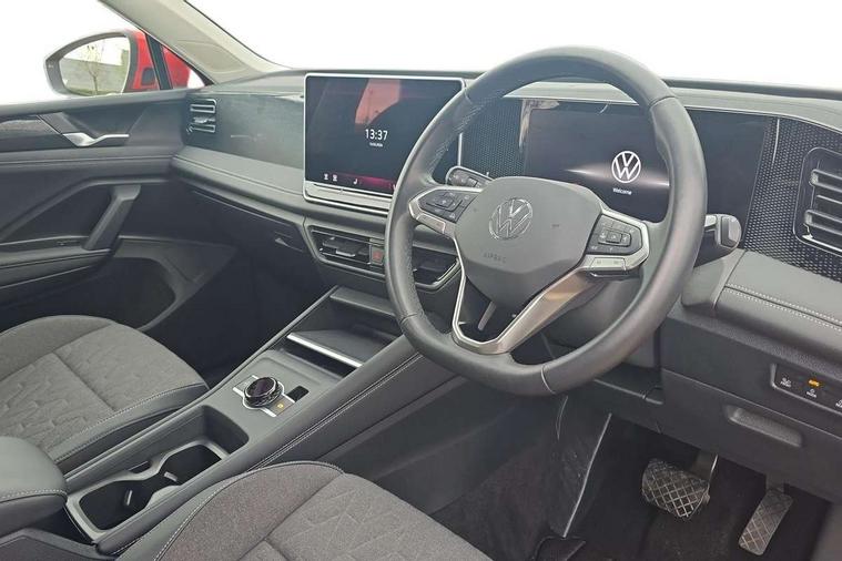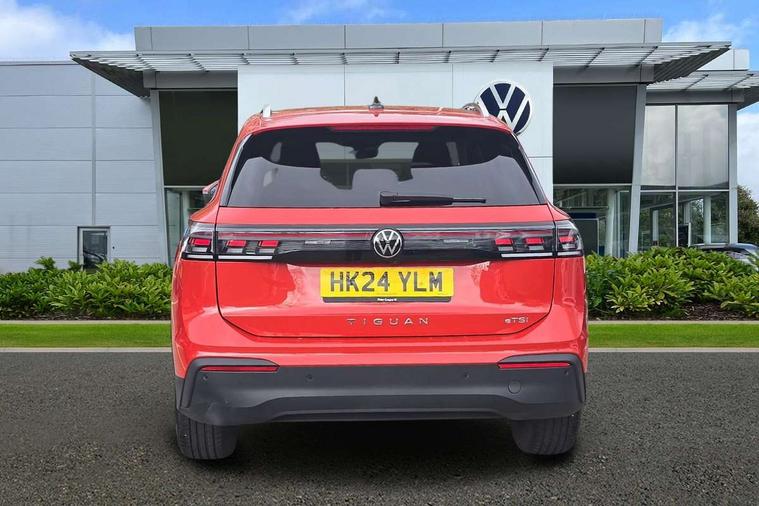 Adaptive cruise control (ACC), Advanced driver attention and drowsiness monitor, Bluetooth mobile phone interface, Digital Cockpit Pro - 10.25" high resolution dash display screen with customisable menus and information, Dynamic road sign display, E-Sim card for online connectivity, eCall emergency call service, Front Assist - Autonomous emergency braking with pedestrian and cyclist monitoring, Lane change system, Side assist, Rear traffic alert and Exit warning system, Lane keeping system Lane Assist, Multifunction front facing camera, Oncoming vehicle braking when turning including swerve support, Park assistance plus with front and rear parking sensors, Power assisted steering with speed sensitive, Start/stop system with regenerative braking, Warning signal and warning light for front and rear seatbelts not fastened, Wireless App-Connect, Front wheel drive, Digital radio reception (DAB), Diversity antenna for FM reception, Ambient lighting with logo projection, Auto dimming interior rear view mirror, Automatic headlight control system, Body coloured bumpers and air intake with chrome trim, Body coloured door handles, Body-coloured exterior mirror housings, Coming/leaving home lighting function, Heat insulating glass in side and rear windows, Heat insulating windshield, Heated rear window, High level 3rd brake light, Illuminated door handle recesses, Illuminated lightline between headlamps, Rain sensor windscreen wipers, Rear fog light on one side, reversing light on both sides, Rear side wing doors, Rear wiper, 12V outlet in center console rear and in luggage compartment, 12V socket in centre console, 3 bench rear seats in 2nd row, Air care climatronic 3 zone air conditioning system with rear air conditioning control panel, Carpet mats, front and rear, Centre console with illuminated storage compartment with sliding cover and two drinks holders, Ceramique headlining, Door and side trim panel in foam film and woven fabric, Front centre armrest, ISOFIX anchors for child seats on outer rear seats and front passenger seat compatible with i-Size, Mechanical rear seat release, Power adjustable lumbar support in front, Rear bench seat, split folding, longitudinally movable and folding with load-through hatch and centre armrest, Safety optimised front head restraints, Single front passenger seat, Sun visors with illuminated vanity mirrors, Three rear head restraints, Variable luggage compartment floor, Comfort package incl. Memory feature for Park assist and Safelock - Tiguan, Design package - Tiguan, 3 point seat belt for centre rear seats, 3 Point seat belts in front with pretensioners, 3 point seatbelts in outer rear with ECE label, Driver and front passenger airbag with front passenger airbag deactivation, Electronic parking brake with auto hold, Front and rear curtain airbags, Front and rear side airbags, Front centre airbag, Front disc brakes, Manual child proof rear door locks, Rear disc brakes, Two tone horn, Warning triangle, Anti theft wheel bolts, Soul instrument panel,