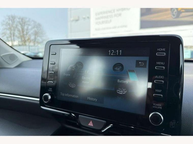 4.2" multi information display, 8" Toyota touch 2 multimedia system with Smartphone integration with Apple CarPlay and Android auto, Adjustable speed limiter, Bluetooth connectivity, Digital speedometer, Driver attention alert system, eCall emergency system, Electric power steering, Full range intelligent adaptive cruise control, Hybrid system indicator, Key reminder warning, Lane trace assist, Multimedia, audio, telephone and voice recognition switches on steering wheel, My T Connected services, Pre-collision system enhanced with emergency steering assist, Reversing camera, Road sign assist - RSA, Steering assisted vehicle stability control, 6 speakers, DAB Digital radio, USB connection, 3rd brake light, Acoustic windscreen glass, Anti-jam protection on power windows, Auto high beam [AHB] with on/off switch, Automatic headlights, Black lower front grille, Black Shark-fin antenna, Black upper front grille, Black wheel arch mouldings, Body colour door handles, Body colour front bumper, Body colour rear bumper, Electric adjustable heated door mirrors, Follow me home headlights, Front and rear electric windows with auto up/down function, Halogen projector headlights, Headlight cut off reminder, Indicators integrated on door mirrors, Intermittent rear wiper, LED daytime running lights, LED Indicators, Manual headlight levelling, Manually retractable door mirrors, Noise reduction layer on windscreen, Rain sensor, Rear side wing doors, Rear spoiler, Rear window defogger, 12v power outlet - front, 2x Rear coat hooks, 3 seat bench in 2nd row, 3 spoke leather steering wheel, 60/40 split folding rear seat, Adjustable speed limiter switch on steering wheel, Auto air conditioning, Boot light, Central armrest, Driver and front passenger personal lights, Fabric door trim, Fabric upholstery, Front console box, Front cup holders, Front head restraints, Glovebox, Grey roof lining, Height adjustable driver's seat, Height adjustable front passenger seat, ISOFIX child restraint system, Lane departure alert switch on steering control, Leather gearshift, Manual telescopic and tilting steering wheel, Mirror on driver and passenger sun visor, Pollen air filter, Rear head restraints, Single front passenger seat, Soft tonneau cover, 3x3 point rear seat belts, ABS+EBD+Brake assist, Driver and passenger central airbags, Driver and passenger front airbags, Driver and passenger side airbags, Electronic parking brake, Emergency brake light system (EBS), Front seat belt reminder, Hill start assist control (HAC), Passenger airbag on/off switch, Pre-collision system with pedestrian and cyclist detection, Rear door child safety locks, Rear passenger side airbags, Rear seat belt reminder, Traction control, Tyre pressure warning system, Immobiliser, Intrusion alarm, Keyless smart entry with push button start, Power door locks, Power passenger window lock, Remote door lock, 16" 10 spoke alloy wheels, Tyre repair kit,