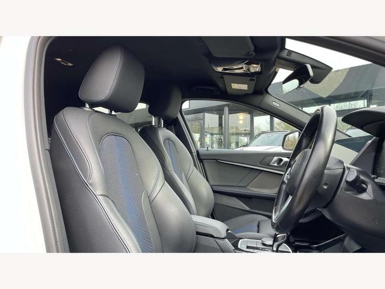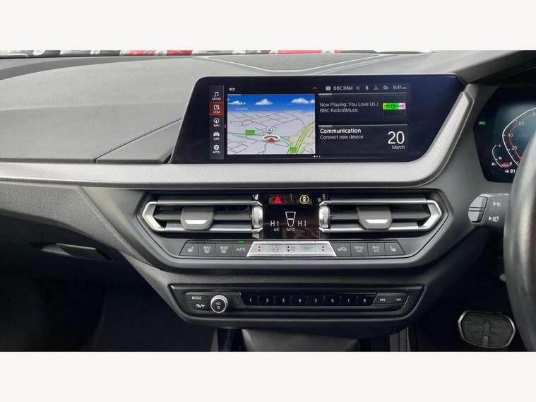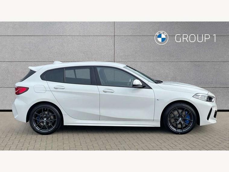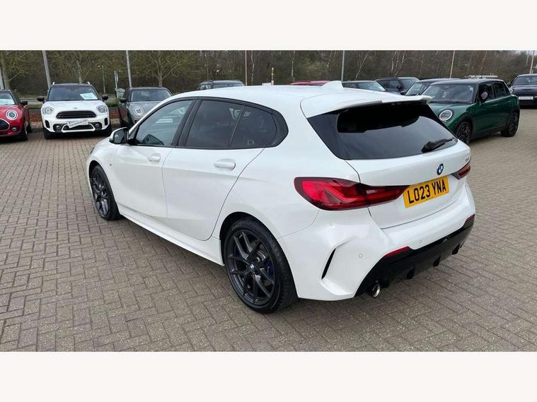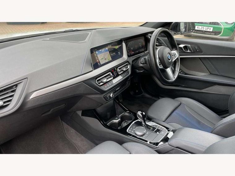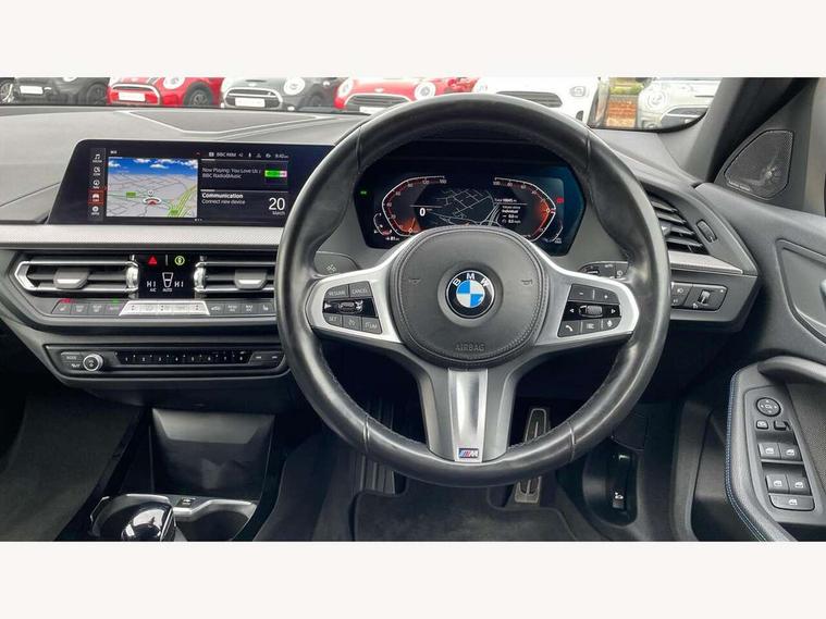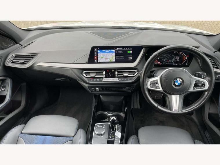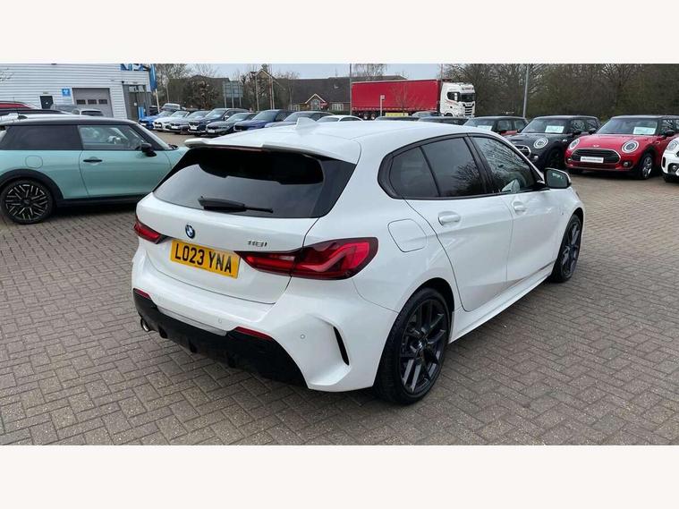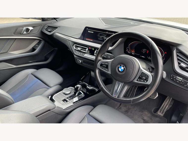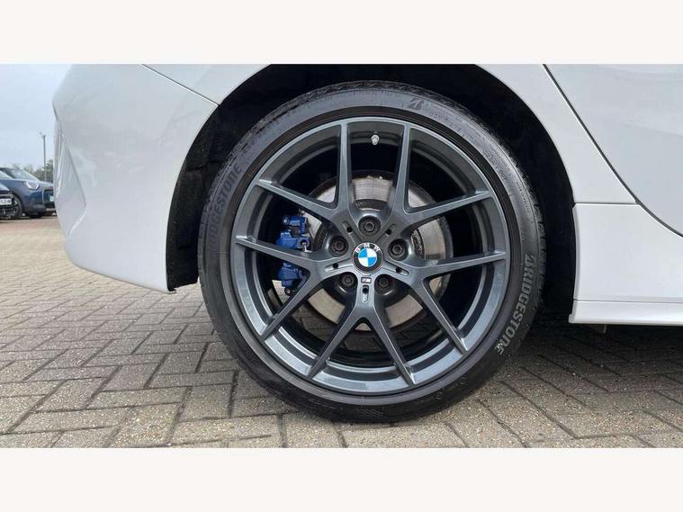 Active guard plus, Attentiveness assist, BMW ConnectedDrive online services, BMW Teleservices, Check Control warning system for monitoring of lights and door/luggage compartment open warning, Cruise control with speed limiter, Eco pro mode, Front axle single joint with specific axle kinematics to minimise drive influences on steering + provide increased rigidity agile driving behaviour, Integrated owners handbook, Lane departure warning system, Oil sensor for level and grade, On board computer, Optimum shift indicator, Personal Profile, Pull away assistant, Rigidly mounted rear subframe - Multi link construction with separate spring / damper configuration and excellent driving characteristics, Speed limit Info including no-overtaking indicator, Aluminium lightweight construction, Anti roll bar front and rear, Balancer shaft, Double VANOS twin scroll turbocharging system, Drive Performance Control, Electronic differential lock, High precision injection, M sport suspension, Petrol Particulate Filter, Twin tube gas filled shock absorbers with degressive characteristic curve, VALVETRONIC engine management, DAB Digital radio, Auto dimming rear view mirror, Automatic headlight beam throw control, Automatic windscreen wipers and automatic headlight, Body colour door handles, Body colour mirror caps, Body colour roof trims, Chrome 'M' logo side designation, Chrome exhaust twin tailpipes round 90mm in left, Chrome kidney grille frame with Satin Aluminium struts, Direction indicator side lights in exterior mirrors, Electrically adjustable exterior mirror with mirror adjustment switch on drivers armrest and aspheric on driver side, convex on passenger side, Fading support, Folding side mirrors with auto dimming/folding wing mirrors with auto dimming, Follow me home headlights, Front and rear bumper system with replaceable deformation elements, Front and rear electric windows with open and close fingertip control, anti trap facility and comfort closing, Front door sill finishers in black plastic with M designation in metallic look, Green tinted heat protection glazing, High gloss shadowline window frame, Recess cover mirror frames and B/C pillar embelisher trim, High level third brake light, Integrated front windscreen with washer jets, LED daytime running lights, LED eyebrow turn indicators, LED front fog lights, Lightweight engineering, Matt black air guide grilles, Matt black wheel arch trim, Model designation on electric bootlid, Nearside reverse light in rear light cluster, Preparation for high beam assistant, Rear fog lights, Rear side wing doors, Rear window wiper, Shark fin antenna, Trailer stabilisation logic, Visible VIN plate, Welcome lighting, 12V power socket in front centre console with blanking plug, 3 rear seat head restraints, 3 seat bench in 2nd row, 3 spoke sports leather steering wheel with black leather and stitching, pearl chrome decorative finish, specific M Badge, Anthracite headlining, Black boot net with lashing eyes, Cargo function on 2nd seat row, Child seat ISOFIX attachment for two outer rear seats and front passenger seat with anchorage points, Conditioned based service, Driver and front passenger backrest net on rear, Driver and front passenger seat heating, Driver side folding compartment in instrument panel, Folding rear clothes hook, Four grab handles integrated in roof lining, Front and rear door pockets with bottle holders, Front and rear side armrest integrated into door trim, Front armrest, Front sports seats, Glove compartment, Height adjustable front head restraints, Luggage compartment for bag hooks on left and right, foldable luggage compartment liner and four lashing eyelets, Manual adjust steering wheel, Multi-function controls for steering wheel, Single front passenger seat, Storage compartment in centre console, Storage compartment in luggage compartment, Stowage of the parcel shelf in luggage compartment trim, Sun visors with vanity mirrors and insert tab, Two front centre console cupholders, Two zone automatic air conditioning, Type C two USB ports in rear centre console, Velour floor mats, Additional interior lighting pack - 1 Series, BMW live cockpit professional pack- 1 Series, Connected pack professional - 1 Series, Interior lights pack - 1 Series, M Sport exterior styling aerodynamics pack - 1 Series, 2 tone horn, 3 point seatbelts on all seats, front pyrotechnic belt tensioners, stopper and belt force limiters, rear coded belt buckles, Airbags - Front driver/passenger, front and rear curtain head protection, front side, manual deactivation of front passenger airbag, Anti lock braking system (ABS) with brake assist, BMW emergency call, Brake drying, Braking readiness, Child proof locking system in rear door, City braking function, Comfort modes, Cornering brake control, Crash sensor activating of airbags, Unlocking doors, hazard warning lights, fuel cut off, interior lighting+activation of safety battery terminal clamp, Driver and front passenger seat belt security check, Dynamic stability control + (DSC+), Dynamic Traction Control - DTC, Electrically operated hand brake including automatic hold function, Front and rear disc brakes, Seatbelt warning, Side impact protection, Tyre pressure monitoring system, Warning triangle and first aid kit, Central locking switch for all doors, fuel filler cap and luggage compartment, Deadlocking function system to all doors, Drive away locking system on all doors and luggage compartment with de-activated in iDrive settings, Locking wheel bolts, Remote control with integrated key with High-gloss Black inlay and M designation and 1 button for open/ close lock, window, open luggage compartment, Start/stop button illuminated in centre console with keyless engine start and auto start stop deactivation button, Thatcham Cat.1 alarm and immobiliser, Wheel slip limitation close to the actuator (ARB), Contrast stitching on instrument panel, 18" Burnished M double spoke bi-colour alloy wheels finished in orbit grey - styl