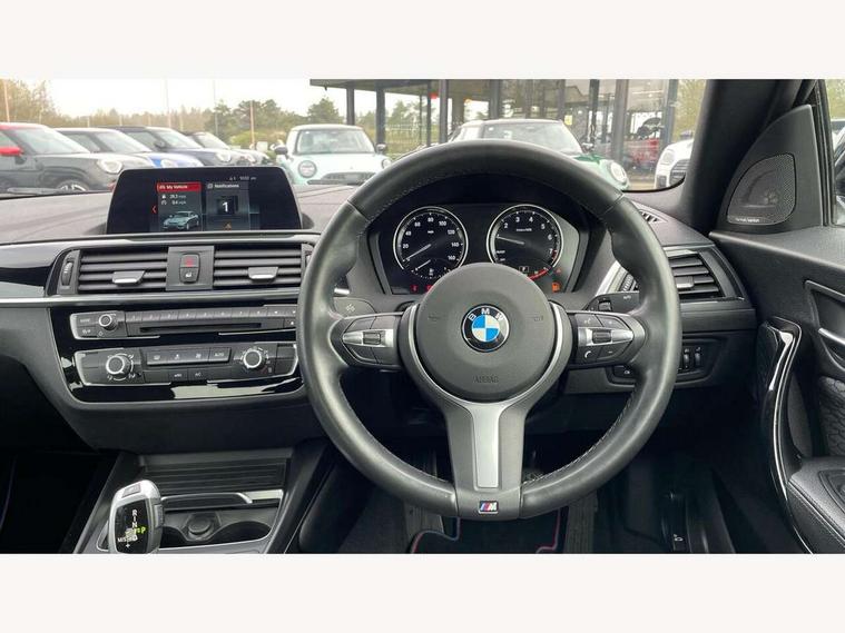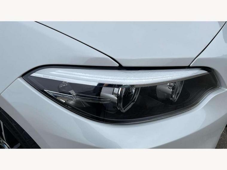 Auto start-stop, BMW Online services, BMW remote services, BMW Teleservices, Door/boot open warning, Front and rear Brake pad wear indicator, Instrument cluster with speedometer with miles per hour read out, tachometer and fuel gauge, Lights on warning by audio warning signal when ignition is switched off, Oil temperature display via on board computer in instrument cluster, On board computer - average speed+fuel consumption, service interval, clock/date, odometer/trip meter, outside temperature display and ice warning, Optimum shift indicator, Personal Profile - automatic lock when driving away selectable, Real time traffic information, Speed limiting function, Traffic message channel (TMC), 8 speed automatic transmission, Battery age recognition function, Drive performance control - ECO PRO, comfort, sport and sport+ modes, Engine cover with BMW roundel twin power turbo designation, Oil dipstick, DAB Digital radio, 2 speed adjustable intermittent wipers with wash/wipe function, Automatic headlight beam throw control, Automatically dimming rear view mirror, Body colour door handles, Body colour door mirrors, Body colour front bumper, Body colour roof mouldings, Chrome single exhaust tailpipe, round, left, Clear lenses direction indicator lights, Darkened rear lights with LED light bars, Daytime driving lights, Direction indicator side lights integrated exterior mirrors, Dynamic brake lights, Electric windows - front and rear, with open/close fingertip control, anti-trap facility and comfort closing, Follow me home headlights, Front air inlet with high gloss black finish, Front and rear bumper system with replaceable deformation elements, Green tinted heat protection glazing, Headlight range control, Heated windscreen washer jets, Heated, electrically adjustable exterior mirror aspheric on driver side, convex on passenger side, High gloss shadow line, High level third brake light, LED Headlights, LED welcome home lights, Lightweight engineering, M aerodynamic body styling, M logo designation in chrome on left and right front wings, Model designation, Model specific design elements, Rain sensor with automatic headlight activation, Rear bumper with high gloss black finish, Rear fog lights, Rear window aerial, Reversing light in rear light cluster, Shark fin roof aerial, Visible VIN plate, 12V power socket in centre console, 12V power socket in passenger footwell, 3 spoke nappa leather steering wheel, Anthracite headlining, Conditioned based service, Front and rear side armrests integrated into door trim, Front door sill finishers with M designation, Front door storage bins, Front floor mats in velour, Front head restraints, Front sliding armrest, Front sports seats with electric side bolster adjustment, Glove box handle with chrome surround, Interior lighting, front centre over interior mirror and rear centre automatic interior light activation when door is opened, Isofix child seat for two outer rear seats, Leather gearknob, Leather handbrake lever, Luggage compartment access via BMW roundel, Manually adjustment steering wheel column, Multi-function controls for steering wheel, Rear coat hooks, Rear folding head restraints, Storage compartment in rear centre console, Two cupholders with sliding cover and inlay mat, 2 rear 3 point safety belts, Active differential brake (ADB), electronic differential lock in DSC-OFF mode, Airbag - Front driver and passenger, front and rear head, front side, curtain head protection, manual deactivation of front passenger airbag possible, Anti lock braking system (ABS) with brake assist, Automatic Stability Control (ASC), BMW emergency call, Brake drying, Brake energy regeneration, Braking readiness, CBC - (Cornering brake control), Crash sensor activating central locking release with hazard warning lights and interior lighting + battery safety cut-off, Dynamic brake control, Dynamic stability control + (DSC+), Dynamic Traction Control - DTC, Front pyrotechnic belt tensioners and belt force limiter, rear coaded belt buckles, Hill start assist, Rear brake discs, Seat belt security check for driver and front passenger, Side impact protection, Twin horns, Tyre pressure monitoring with 3 level warning strategy, Ventilated front disc brakes, Warning triangle and first aid kit, Central locking switch for all doors, fuel filler cap and luggage compartment, Check control system for monitoring of lights and door/luggage compartment open warning, Locking wheel bolts, Remote control including integrated key with blue insert, Start/stop button with Comfort Go keyless engine start and auto Start/stop deactivation button, Thatcham category 1 alarm + immobiliser, Reduced rolling resistance tyres,