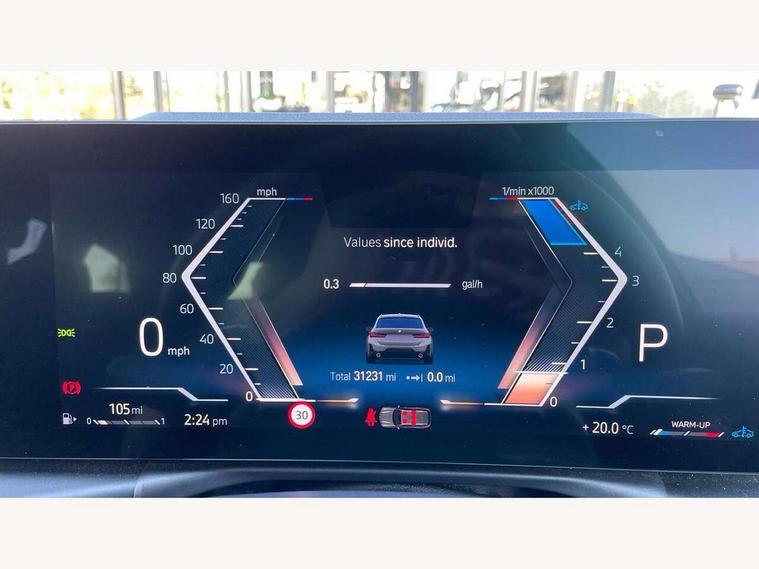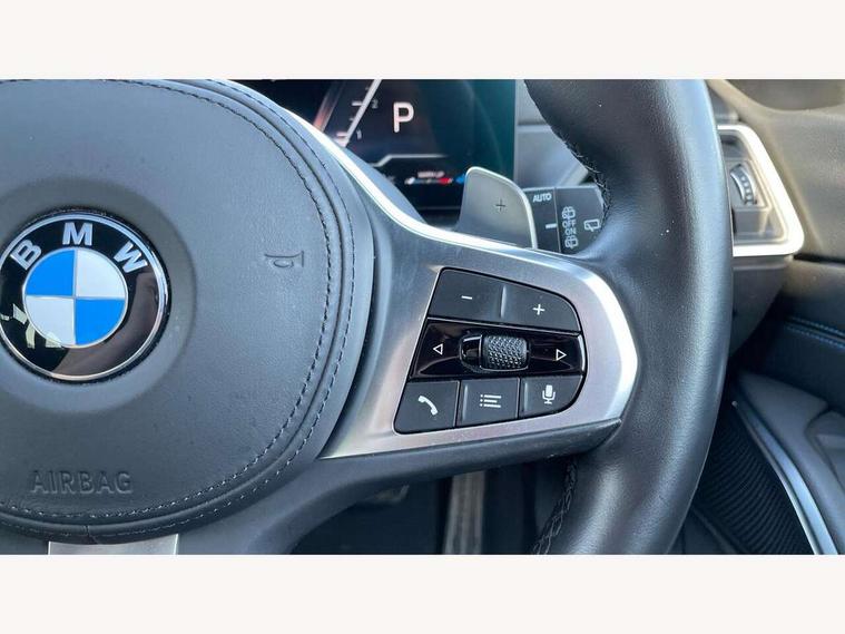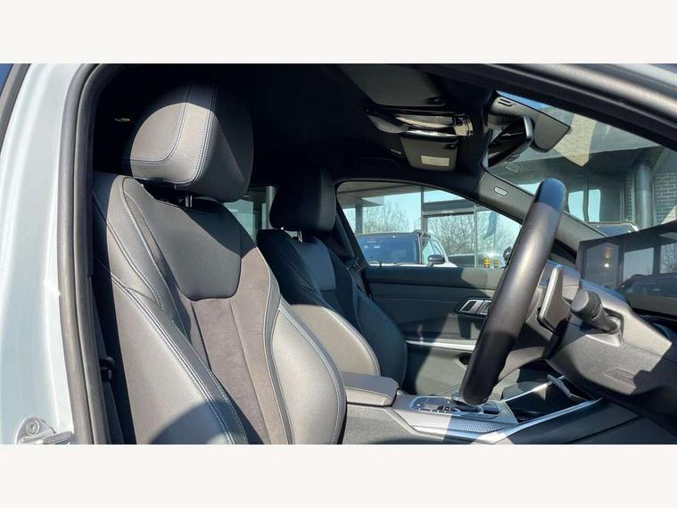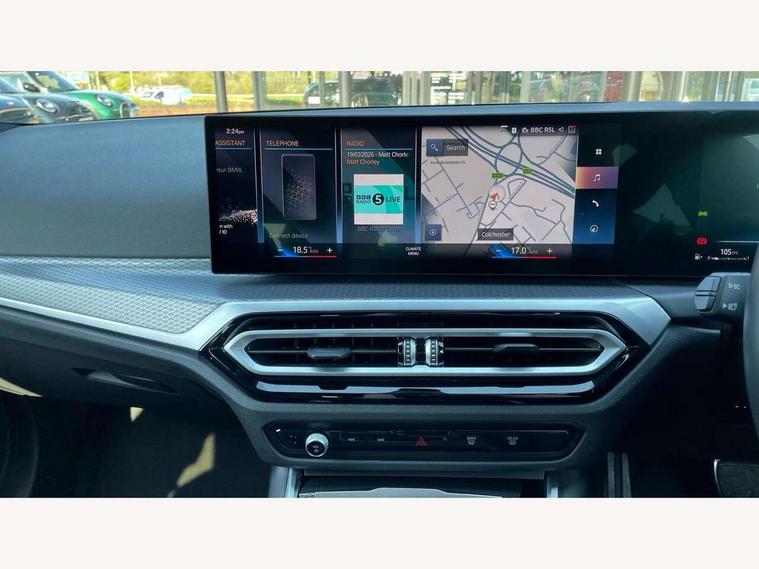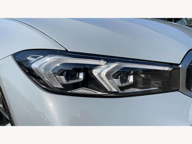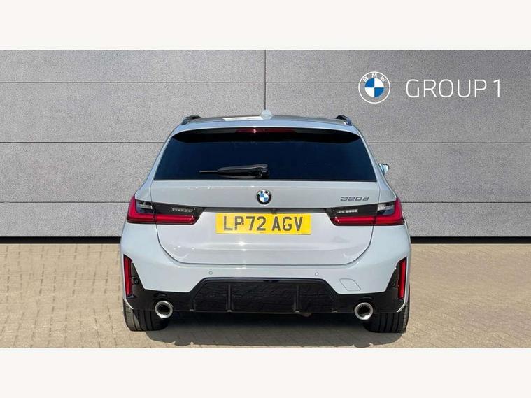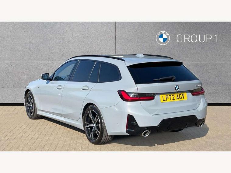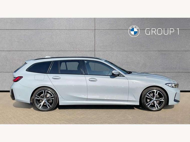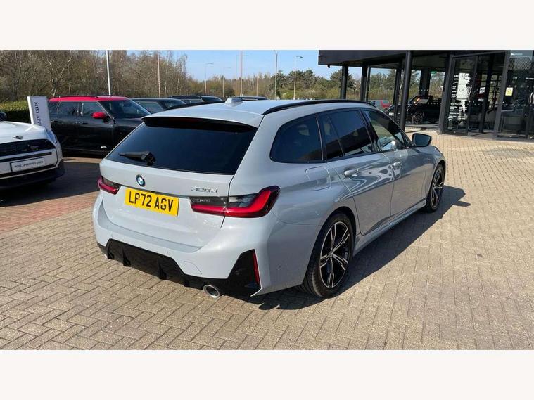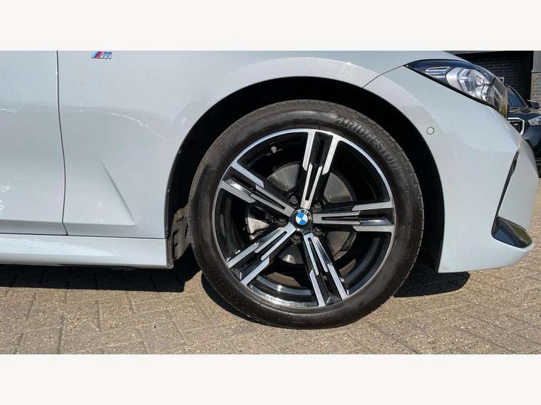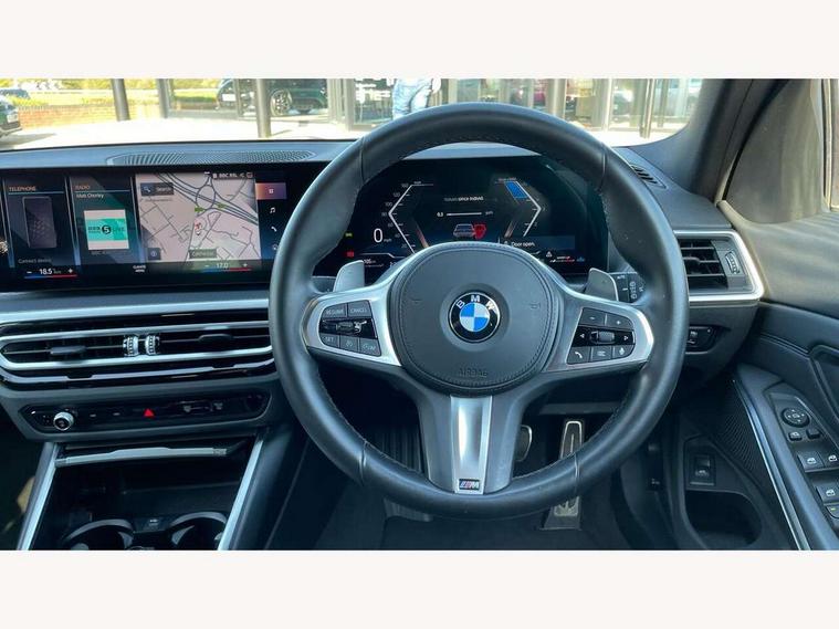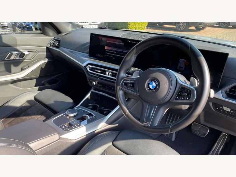 Active guard plus, Attentiveness assist, Automatic Start/stop button, BMW iDrive, BMW Teleservices, Condition based service, ConnectedDrive Services, Driving experience switch, Live cockpit plus with Navigation + 12.3" instrument display + 14.9" display, Intelligent voice assist, 2 USB, 4G LTE connect, Oil sensor for level and grade, Preparation for driver assistance, Shifting point display, Variable sport steering, 48V Mild hybrid technology, Double joint spring strut front axle, Electronic differential lock control (EDLC), Fuel tank breather system, Larger capacity fuel tank, M sport suspension, Sport automatic transmission with steering-wheel mounted gearshift paddles and launch control, DAB tuner, 3rd brake light, Acoustic glazing, Automatic headlight beam throw control with load dependent regulating reaction, dynamic compensation of braking dive and acceleration squat, BMW emblem, engine compartment lid and tailgate, Body colour roof fin, Door sill strips, Electric windows - front and rear, with open/close fingertip control, anti-trap facility and comfort closing, Follow me home headlight function, Front and rear bumper system with replaceable deformation elements, Front apron plastic in body colour, Fuel filler flap - right rear in body colour, Heated washer jets, High gloss shadow line exterior trim, High gloss shadow line roof rails, Illuminated bow type door handles in body colour drivers side with door lock, Interior rear view electrochromatic mirror with automatic anti dazzle function, LED rear lights, Licence plate panel integrated into front bumper and tailgate, Matt black B-pillar finsher, Matt black window recess cover, Model designation on right side of tailgate, One piece front bumper cover including towing eye cover in body colour, Rain sensor with automatic headlight activation, Rear side wing doors, Rear wiper, Reversing lights, Side frame decorative moulding black matt, Visible exhaust tailpipe finisher, Welcome lights in interior and door handle area, 12V power socket in front storage compartment, 2 front cupholder in centre console with clamping elements and matt black inlay, 3 seat bench in 2nd row, 3 zone automatic air conditioning, 40:20:40 split folding rear seat with loading system, Ambient inside door handle light, Ambient light design projected onto the left and right entering and exiting area, Ambient lighting front and rear with 9 selectable colours, Ambient storage compartment lighting in the centre console, Anthracite headlining, Armrest integrated in front and rear door trim + front centre console armrest, BMW ID, Contour lighting in instrument panel and door trim panel, Cruise control operation in steering wheel, Driver backrest width adjustment, Folding rear centre armrest with 2 cupholders, Front and rear ambient footwell lighting, Front and rear door exit lighting (left / right), Front and rear headrests, Front and rear reading lights, Front and rear velour floor mats, Front sport seats, Heated front seats, Height adjustable mechanically and infinitely variable steering column, Illuminated armrest storage compartment, Illuminated glove compartment, Illuminated luggage compartment, Lashing eyelets in luggage compartment, M Sport multifunction leather steering wheel, Make-up mirror lights, Single front passenger seat, Standard seat for driver and passenger with manual adjustment, Sunvisors with vanity mirrors and ticket pocket, Toolkit located in luggage compartment, Connected pack professional - 3 Series Saloon/Touring, Interior and exterior mirror pack - 3 Series Touring/Saloon, M Aerodynamics package - 3 Series Saloon/Touring, M sport exterior styling pack - 3 Series Saloon/Touring, Storage compartment pack - 3 Series Saloon/Touring, 3x3 point rear seatbelts, BMW emergency call, Child locks on rear doors, Crash sensor activating of airbags, Unlocking doors, hazard warning lights, interior light, safety battery terminal, Driver and front passenger with seat occupancy detection for driver's and passenger side, Driver and passenger side airbags, body protection at side and airbags deploy from seat backrests, Dynamic brake control, Dynamic stability control + (DSC+) - Anti-lock Braking System (ABS) with brake assist and cornering brake control + Automatic Stability Control (ASC), Dynamic Traction Control - DTC, Electric parking brake including automatic hold function and automatic release of the parking brake when driving off, Head airbags in 1st and 2nd row, head protection at side, curtain airbags open from headliner above 1st and 2nd row, Plastic fuel tank, Side impact protection, Tyre pressure monitoring with three level warning strategy, Ventilated front and rear disc brakes, Warning triangle and first aid kit, Alarm system, Centre lock switch, Closing system with central locking, Electronic vehicle immobiliser,
