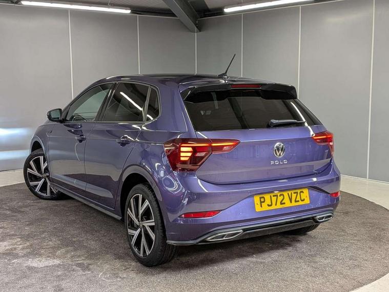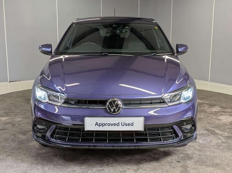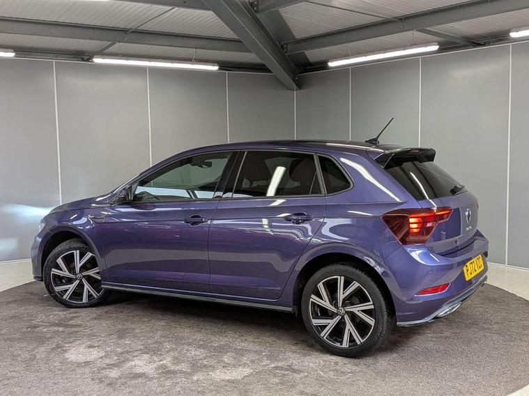 Adaptive cruise control without follow-to-stop and speed limiter, Bluetooth mobile phone interface, Digital Cockpit Pro with 10.25" Display, Driver alert system, Dynamic road sign display, Emergency call service, Power assisted speed sensitive steering, Preparation for We connect and We connect plus, Speedo and rev counter, electronic odometer, trip, service interval display and fuel gauge, Standard rear axle, Travel Assist - Lane keeping system and traffic jam assist, Travel assist including emergency assist, Trip computer, Warning signal and warning light for front and rear seatbelts not fastened, Washer fluid level indicator, Wireless app connect, Front wheel drive, Rear shock absorpion, Start-stop system with battery regeneration (recuperation - energy recovery during braking), DAB Digital radio, Diversity antenna for FM reception, Front and rear 6 speakers, Body colour bumpers, Body colour door handles, Electric front windows, Front scuff plates with R-Line logo, Heat insulating darkened glass in side and rear windows, Heat insulating glass windscreen, Power folding adjustable/heated exterior mirrors and front passenger exterior mirror lowering function, Rear electric windows, Rear fog light, Rear side wing doors, Rear windscreen washer and wiper with interval delay, Third brake light, 12V power socket in centre console, 2 USB-C ports in the front, 2 USB-C charging sockets on the center console in the rear, 3 rear head restraints, 60/40 split folding rear seat and rear seat bench not split, Air care climatronic air conditoning system with active combination filter and 2-zone temperature control, Black roof lining, Chrome plated radiator grille inserts, air vent surrounds and light switch surrounds, Door and side trim panel, Driver and front passenger seat height adjustment, Driver/passenger sunvisors with illuminated vanity mirrors, Front + rear carpet mats in recycled material, Front centre armrest, Front footwell illumination, Front seat backrest storage pockets, Front sports comfort seats, Handbrake lever handle in leather, Headliner in recycled material, Isofix child seat preparation easy-fit (for two outer rear seats, and front passenger seat) compatible with I-size, Karoso artvelours cloth upholstery, Leather trimmed gear knob, LED interior light with switch off delay and dimmer, 2 reading lights front and rear, Luggage compartment cover, Luggage compartment floor, Luggage compartment lighting, Lumbar adjustment for front seats, Multifunction steering wheel, Single front passenger seat, Stainless steel pedals, Standard pedal cluster, Light and sight pack - Polo R-Line/Black Edition, 3 point height adj front seatbelts + pretensioners, 3x3 point rear seatbelts, ABS, Driver and front passenger airbag with front passenger airbag deactivation, Drivers and front passengers safety optimised head restraints, ESC (Electronic stability control) + EDL (Electronic Differntial lock) and ASR (Traction control), Extended and predictive pedestrian/ cyclist protection, Front curtain and side airbags with center airbag, Hill hold control, Manual child lock in rear doors, Single tone horn, Tyre pressure loss indicator, Alarm with interior protection, Anti-theft alarm system with interior monitoring, backup horn, and towing protection, Anti-theft wheel bolts, Electronic engine immobiliser, Chrome applications on rotary light, mirror adjustment, window regulator switches, outlet with frame in black, Dark grey anodised matt decorative inserts in dash and front door panels, Low rolling resistance tyres,