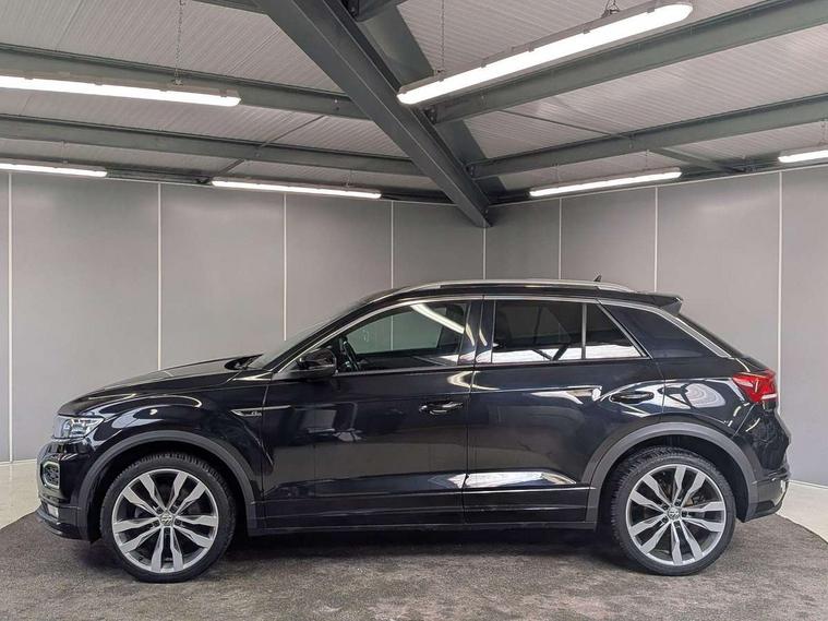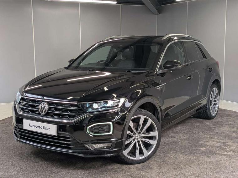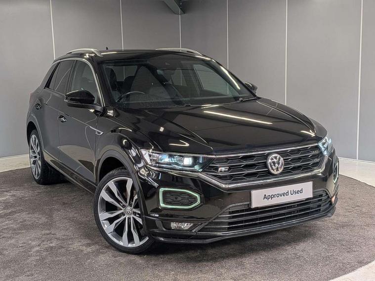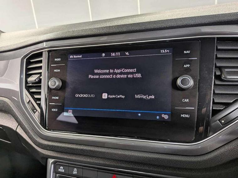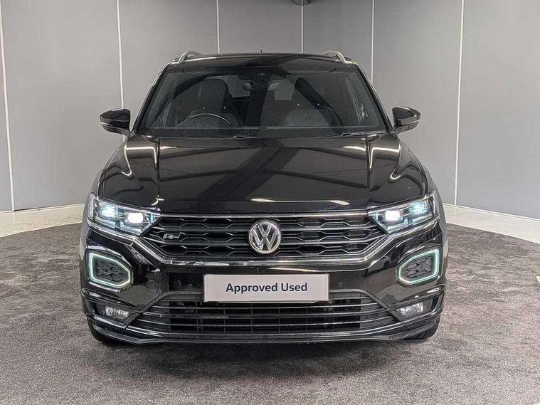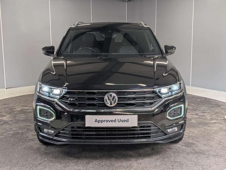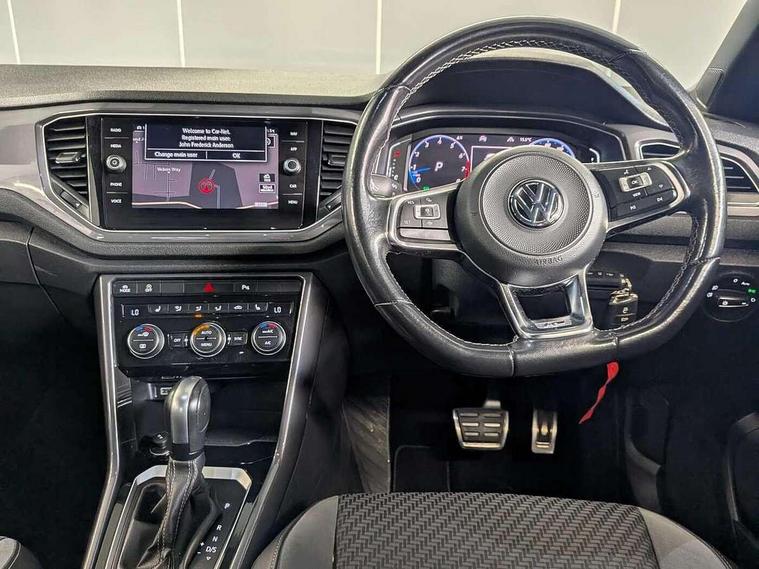 'Lights On' Reminder warning buzzer, Adaptive cruise control with front assist, radar sensor controlled distance monitoring, city emergency braking, Automatic start/stop system, Bluetooth telephone and audio connection for compatible devices, Car information display, Digital Cockpit Pro - Active info display, Discover navigation including 8" touch screen display, streaming and internet, Driver alert system with audible and visual fatigue detection system, Driver tips and journey analysis, Lane assist with warning text instrument cluster, Modified key software - reduce switch off time for key status change to Long no motion, Multifunction computer with visual gear change recommendation for fuel consumption, Service interval indicator, Think blue trainer driver tips and journey analysis, Voice activation, Wireless app connect for apple carPlay, Battery regeneration during braking, Centre arm rest including USB type C interface and USB charging socket, DAB Digital radio, Diversity antenna for FM reception, Front USB type C Interface 2X and USB charging socket, Music playback - MP3, WMA and AAC files, Premium USB cable in choice of either Apple or Android smartphone compatibility, SD card slot, Simultaneous pairing of 2 compatible mobile devices, SMS functionality - read, compose and send SMS messages using touch-screen display, Storage compartment with longitudinal and height adjustable in armrest and two rear air vents, Three route options - Fast, Short, Eco, Title and cover art display, Auto dimming interior rear view mirror, Black grained lower door protectors, Body colour door handles, Body colour rear roof spoiler, Chrome effect left and right trapezoid exhaust tailpipe fascia surround, Chrome trim on upper and lower radiator grille, Dusk sensor, Electrically foldable, adjustable and heated door mirrors with puddle lights and reverse activated kerb-view adjustment on passenger's door mirror, Front and rear electric windows, Front fog lights with static cornering function, Front windscreen wiper with intermittent wipe and 4 position delay, Fully galvanised body, Heated rear window, High level 3rd brake light, LED darkened rear light clusters, LED rear number plate lights, Manual coming/automatic leaving home lighting function, Rain sensor, Rear tinted glass from B-pillar backwards approx 65% tinted, Rear wash/wipe with intermittent wipe setting, Volkswagen roundel, 2 Front and rear reading lights incorporating LED technology, 3 rear head restraints, 4 load lashing points in luggage compartment, Aluminium pedals, Ambient lighting in front footwell and light strips below trim in front doors, Black roof lining and sun visors, Branded points of interest, Carbon flag cloth upholstery, Climate control - 2 zone electronic air conditioning with automatic air recirculation and allergy filter, Drawer under drivers seat, Front + rear carpet mats, Front cupholders x 2, Front seat back storage pockets, Front sports seats with R-Line logo on seat backrest, Glovebox, Height adjustable front seats, Height/reach adjust steering wheel, Illuminated vanity mirrors, Instrument lighting, white adjustable panel illumination, Interior light delay, Isofix easy fit child seat preparation for 2 outer rear seats, Load through provision with single cup holder when folded down, Luggage compartment cover, removable, Luggage compartment lighting, R Line badge, Split folding rear seat backrests with centre armrest, Storage compartment in left and right luggage area, Storage compartment in rear doors, Storage compartments in driver and front passenger doors, Three spoke multi function leather trimmed steering wheel and gear knob including paddle shift, Unique R Line door sill protectors, R line styling pack - T-Roc, 3 rear three point seatbelts, ABS, Curtain airbags, Driver and front passenger safety-optimised head restraints, Drivers and front passengers airbags with passengers deactivation switch, Drivers seatbelt reminder, Electronic parking brake with auto hold, Electronic stability control (ESC) includes ASR, EDL, EDTC and trailer stabilisation function, Front seat side impact airbags, Predictive pedestrian protection, Rigid safety cell with front and rear crumple zones, Three point height adjust front seatbelts + pretensioners, Tyre pressure loss indicator, Ventilated front and rear disc brakes, Volkswagen roadside assistance, Alarm with remote central locking and interior protection, Electronic engine immobiliser, Remote central locking with 2 remote folding keys, Shadow steel decorative inserts in dash and door panel, 19" Suzuka alloy wheels with low rolling resistance tyres and anti wheel bolts,