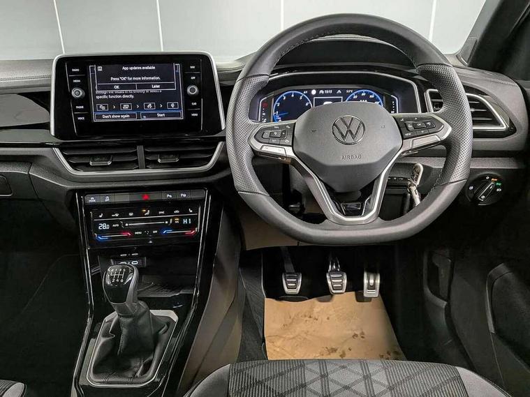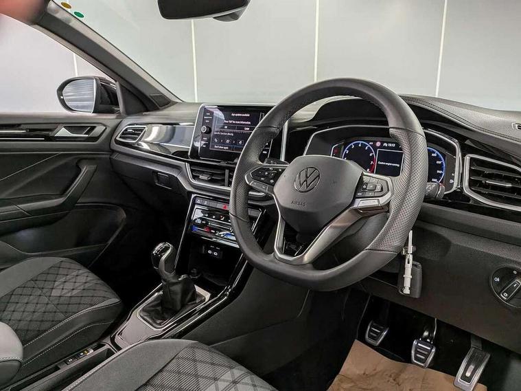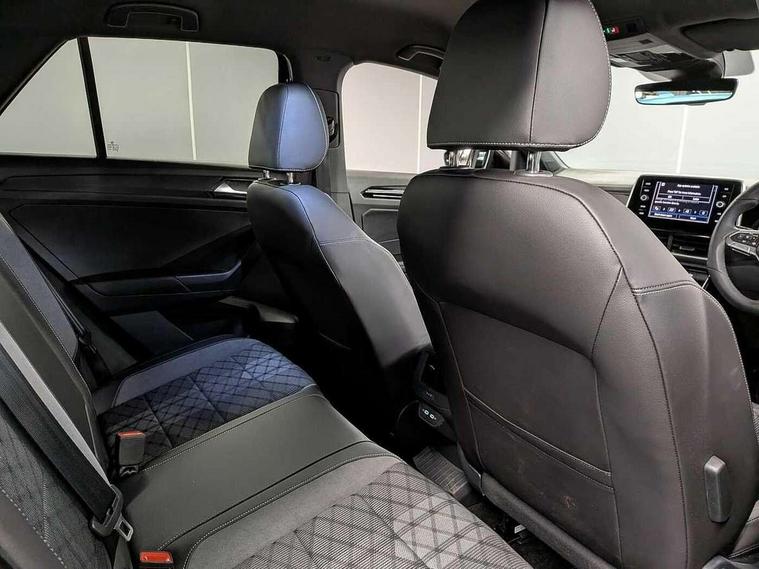 10.25" Digital cockpit pro, Advanced driver attention and drowsiness monitor, Emergency call service, Lane keeping system Lane Assist, Mobile phone interface, Modified key software - reduce switch off time for key status change to Long no motion, Online services, Park assist including front and rear parking sensors, Service interval indicator, Tailgate/trunk lid release from outside, Think blue trainer driver tips and journey analysis, Warning sound and light for front seatbelts unfastened, Wireless app connect, Battery regeneration during braking, Start/stop function with battery regeneration, DAB Digital radio, Diversity antenna for FM reception, Front and rear 6 speakers, Music playback - MP3, WMA and AAC files, Premium USB cable in choice of either Apple or Android smartphone compatibility, SD card slot, Simultaneous pairing of 2 compatible mobile devices, Title and cover art display, We Connect and We Connect Plus functionality, Auto dimming interior rear view mirror, Automatic hazard lights activation under emergency braking, Automatic headlight control with LED separate daytime running lights with coming/leaving home function, Body coloured exterior mirror housings and door handles, Electrically adjustable and heated door mirrors, Extended roof spoiler, Exterior mirrors aspherical on driver side, convex on front passenger side, External USB type C socket and charging sockets, Front windscreen wiper with intermittent wipe and 4 position delay, Heated rear window, LED 3rd brake light, LED rear combination lamps, LED rear number plate lights, Power windows with comfort operation and circuit breaker, Privacy glass for rear side windows and rear window, R-Line design body coloured bumpers, Rain sensor, Rear exhaust tailpipe, Rear fog light on one side and reversing lights on both sides, Rear side wing doors, Rear wash/wipe with intermittent wipe setting, Remote electrically foldable door mirrors, puddle lights and reverse activated passenger's door mirror, 12V power socket in centre console, 3 rear head restraints, 3 seat bench in 2nd row, 4 load lashing points in luggage compartment, Air care climatronic air conditoning system with active combination filter and 2-zone temperature control, Black roof lining, Chrome plated decorative trims, Chrome plated radiator grille inserts, air vent surrounds and light switch surrounds, Door and side trim panel with leatherette insert, Front + rear carpet mats, Front centre armrest, Front cupholders x 2, Front footwell illumination, Front reading light, Front scuff plates with R Line logo, Front seat back storage pockets, Glove compartment door with light, Instrument lighting, white adjustable panel illumination, Interior ambient lighting and surround lighting, Interior light delay, Isofix child seat preparation, Leather gearshift handle, Load-through provision with cup holder when folded down ('Unsplit rear seat bench, split folding backrest, with centre armrest), Luggage compartment lighting, Single front passenger seat, Stainless steel pedals, Storage compartment in left and right luggage area, Storage compartment in rear doors, Storage compartments in driver and front passenger doors, Sunvisors with illuminated vanity mirrors, Variable boot floor, height adjustable and removable, Driver assistance pack without proactive passenger protection - T-Roc, 3 point height adj front seatbelts + pretensioners, 3 point seatbelts in outer rear with ECE label, ABS, Child locks on rear doors, City emergency braking and pedestrian monitoring, Driver and front passenger airbag with front passenger airbag deactivation, Driver and front passenger safety-optimised head restraints, Drivers seatbelt reminder, Electronic parking brake, Electronic Stability Control (ESC) inc EDL (Electronic Differential Lock) and ASR (Traction Control), Front and rear passengers curtain airbag system including front side airbags, Hill start assist, Predictive pedestrian protection, Rear disc brakes, Two tone horn, Tyre pressure loss indicator, Volkswagen roadside assistance, Piano black decorative inserts in dashboard and front door trim panels, Trims for alloy wheels,