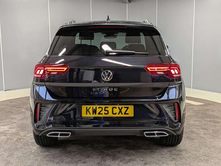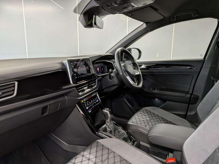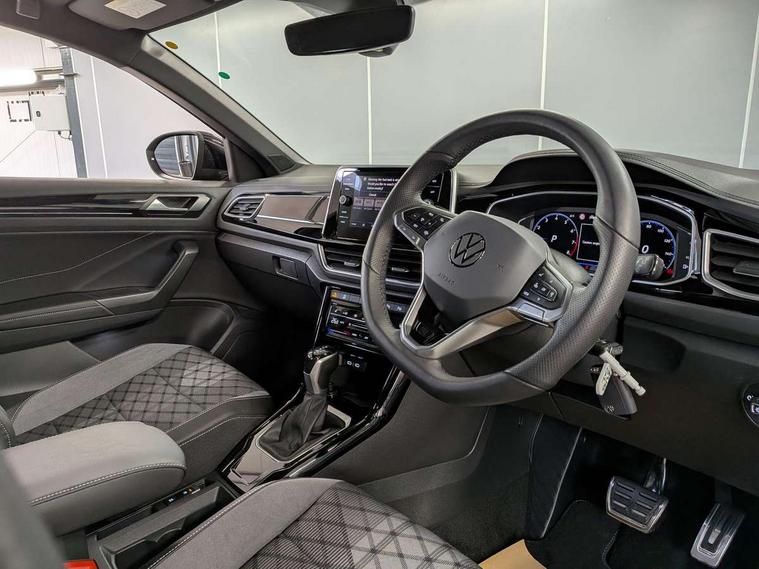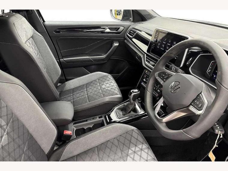 10.25" Digital cockpit pro, Advanced driver attention and drowsiness monitor, Emergency call service, Lane keeping system Lane Assist, Mobile phone interface, Modified key software - reduce switch off time for key status change to Long no motion, Online services, Park assist including front and rear parking sensors, Service interval indicator, Tailgate/trunk lid release from outside, Think blue trainer driver tips and journey analysis, Warning sound and light for front seatbelts unfastened, Wireless app connect, Battery regeneration during braking, Start/stop function with battery regeneration, DAB Digital radio, Diversity antenna for FM reception, Front and rear 6 speakers, Music playback - MP3, WMA and AAC files, Premium USB cable in choice of either Apple or Android smartphone compatibility, SD card slot, Simultaneous pairing of 2 compatible mobile devices, Title and cover art display, We Connect and We Connect Plus functionality, Auto dimming interior rear view mirror, Automatic hazard lights activation under emergency braking, Automatic headlight control with LED separate daytime running lights with coming/leaving home function, Body coloured exterior mirror housings and door handles, Electrically adjustable and heated door mirrors, Extended roof spoiler, Exterior mirrors aspherical on driver side, convex on front passenger side, External USB type C socket and charging sockets, Front windscreen wiper with intermittent wipe and 4 position delay, Heated rear window, LED 3rd brake light, LED rear combination lamps, LED rear number plate lights, Power windows with comfort operation and circuit breaker, Privacy glass for rear side windows and rear window, R-Line design body coloured bumpers, Rain sensor, Rear exhaust tailpipe, Rear fog light on one side and reversing lights on both sides, Rear side wing doors, Rear wash/wipe with intermittent wipe setting, Remote electrically foldable door mirrors, puddle lights and reverse activated passenger's door mirror, 12V power socket in centre console, 3 rear head restraints, 3 seat bench in 2nd row, 4 load lashing points in luggage compartment, Air care climatronic air conditoning system with active combination filter and 2-zone temperature control, Black roof lining, Chrome plated decorative trims, Chrome plated radiator grille inserts, air vent surrounds and light switch surrounds, Door and side trim panel with leatherette insert, Front + rear carpet mats, Front centre armrest, Front cupholders x 2, Front footwell illumination, Front reading light, Front scuff plates with R Line logo, Front seat back storage pockets, Glove compartment door with light, Instrument lighting, white adjustable panel illumination, Interior ambient lighting and surround lighting, Interior light delay, Isofix child seat preparation, Leather gearshift handle, Load-through provision with cup holder when folded down ('Unsplit rear seat bench, split folding backrest, with centre armrest), Luggage compartment lighting, Single front passenger seat, Stainless steel pedals, Storage compartment in left and right luggage area, Storage compartment in rear doors, Storage compartments in driver and front passenger doors, Sunvisors with illuminated vanity mirrors, Variable boot floor, height adjustable and removable, Driver assistance pack without proactive passenger protection - T-Roc, 3 point height adj front seatbelts + pretensioners, 3 point seatbelts in outer rear with ECE label, ABS, Child locks on rear doors, City emergency braking and pedestrian monitoring, Driver and front passenger airbag with front passenger airbag deactivation, Driver and front passenger safety-optimised head restraints, Drivers seatbelt reminder, Electronic parking brake, Electronic Stability Control (ESC) inc EDL (Electronic Differential Lock) and ASR (Traction Control), Front and rear passengers curtain airbag system including front side airbags, Hill start assist, Predictive pedestrian protection, Rear disc brakes, Two tone horn, Tyre pressure loss indicator, Volkswagen roadside assistance, Piano black decorative inserts in dashboard and front door trim panels, Trims for alloy wheels,
