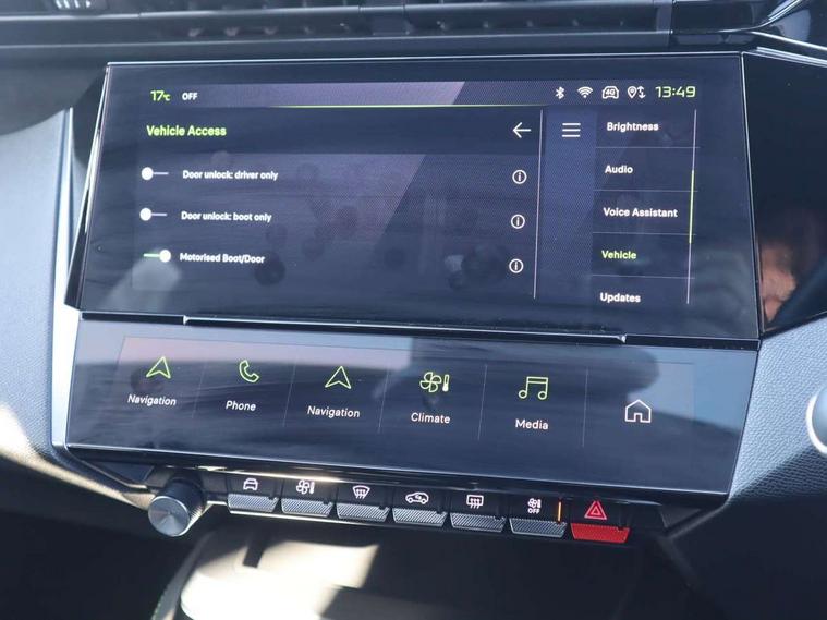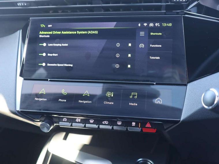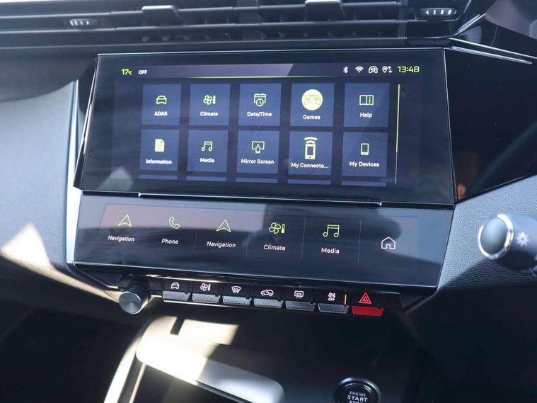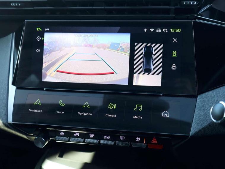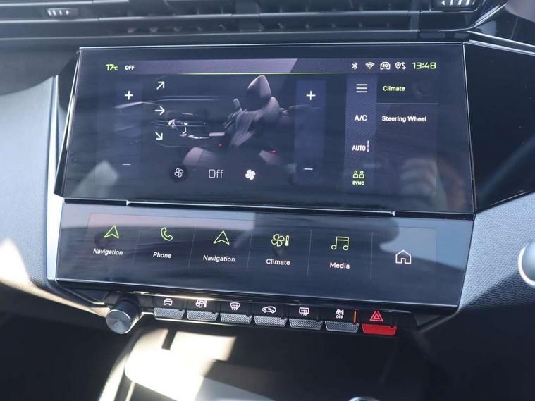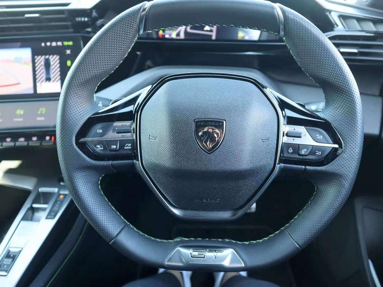Bluetooth telephone facility, Compact automatic gearbox impulse selector, Driver attention warning, Driver's profile setting, Emergency call service, Extended traffic sign recognition, Exterior temperature indicator with ice warning, Front and rear parking sensors, Intelligent speed adaptation, Lane keep assist, Multi driving mode selector - Eco / Normal / Sport mode selector, Multi function trip computer, PEUGEOT i-Cockpit with 10.0" high definition (HD) capacitive touchscreen, PEUGEOT i-Cockpit with compact steering wheel, PEUGEOT i-Connect Advanced - Over the air updates, PEUGEOT SOS and assistance, Push button start, Speed limit recognition and recommendation, Wifi and voice recognition, Wireless apple car play/android Auto, 2x USB sockets in front, 2x USB sockets in rear, DAB Digital radio, PEUGEOT i-Cockpit with PEUGEOT configurable i-Toggles, 3rd brake light, 408 Model designation badges on front and rear, Acoustic laminated front windows, Acoustic tinted windscreen, Automatic hazard light activation upon heavy brake application, Body colour door handles, Body colour rear spoiler, Dark tinted rear side and tailgate windows, Electric, heated, and power folding door mirrors, Electrochrome rear view mirror, Front and rear electric windows with one touch/anti pinch, Front grille with vertical body colour stamping, Full LED matrix headlights with automatic adjustment, Gloss black finish B pillar, Gloss black rear cluster connecting strip, High beam assist, LED rear number plate lights, LED side indicator lights integrated into door mirrors, Lower body and wheel arch "SUV style" protection, Nera black door mirrors, PEUGEOT shield on front doors, PEUGEOT signature LED front daytime running lights incorporating indicators, Rear bumper grained black, Rear full LED 3D Peugeot new claw effect lights with sequential welcome sequence upon unlocking the vehicle, Rear Hybrid badging, Rear reversing lights, Rear side wing doors, Roof mounted 'fin' style antenna, Smart electric tailgate, Tailgate with heated rear windscreen and wiper blade, 1/3 2/3 'Magic Flat' folding rear seats with controls located in the boot, 2x 12V sockets, 3 seat bench in 2nd row, 4 Grab handles retractable and damped, 8 Colour personalisable ambient lighting, Aluminium door sills and boot sill, Aluminium pedals and footrest, Arch design central console with storage, Central front armrest with storage compartment, Dual Zone automatic air conditioning with AQS 3, Dynamic front seats, Electric power steering with reach and rake adjustable steering column, Front central console with two cup holders, Gloss black waistbelt (window weather strips), Glovebox with LED lighting, Heated steering wheel, High air vent system, Luggage cover, Luxury carpet mats with adamite green stitching, Multifunction full grain leather steering wheel with admite green stitching & GT badging, Piano keys toggle switches to access main functions, Roof lining - Mistral black, Seatbelt unfastened on the move audible and visual alert for front and rear seats, Single front passenger seat, Ski hatch with central rear armrest with cup holder, Steering wheel mounted gearshift paddles, Sunvisor with concealable vanity mirrors with LED lighting, Driver Sport Pack - 408, Visibility pack - 408, 2x Isofix child seat fitting on outer rear seats, 3x3 point rear seat belts, ABS + EBD + EBA, Active safety brake with night function/cyclists/pedestrians, Adaptive driver and front passenger airbags with passenger airbag deactivation function, Advanced emergency braking system (Video - AEB) includes Radar, Automatic post collision braking, Child locks on rear doors, Driver/front passenger side airbags, Electronic parking brake, ESP, Front and outer rear seatbelts with pyrotechnic pretensioners, Front and rear curtain airbags, Front and rear disc brakes, Front optimised safety headrests and rear retractable headrests (x3), height adjustable, Front three point retractable seatbelts with force limiters, Hill start assist, Tyre under inflation monitoring and indirect detection with visual indicator and warning sound, 2x keys, Acoustic vehicle alert system (AVAS), Anti-theft wheel bolts, Automatic door locking when moving off, Deadlocking system, Electronic code immobiliser, Locking wheel nuts, Peugeot open and go system includes keyless entry with proximity locking and unlocking, Thatcham cat. 1 alarm with anti lift sensor, 19" Graphite diamond cut alloy wheels in Onyx black gloss, Alloy wheel 'star' centre cap,