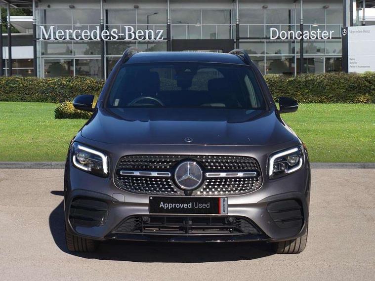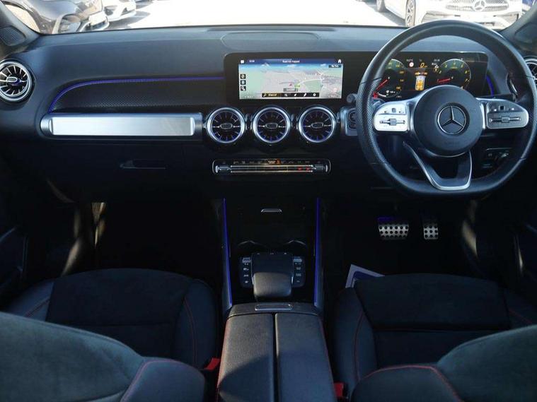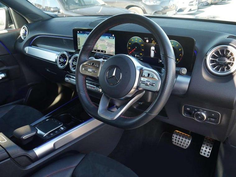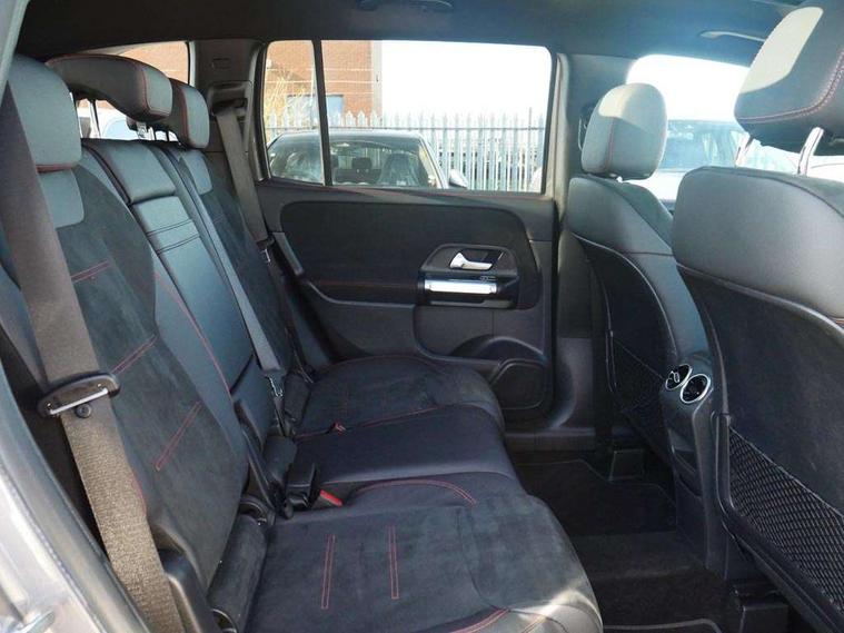 10.25" Digital instrument cluster display screen, 10.25" Digital media screen display, Active lane keeping assist, Attention assist - Monitors steering behaviour and long journey fatigue, Brake pad wear indicator warning light, Car wash mode, Cruise control with limiter, DYNAMIC SELECT with a choice of driving modes (ECO, Comfort, Sport and Individual), ECO start/stop function, Fluid level warning indicator for fuel, oil, coolant and washer fluid, Hard disk navigation, Hey Mercedes Voice activation, Lamp failure indicator, Mercedes me connect including emergency call system, accident recovery, breakdown and maintenance management, Mercedes me remote services, Outside temperature gauge, Owners manual and service booklet in English, Parameter steering system, Pre-installation of private car share, Preinstallation for parking damage notification, Radio aerial integrated into front and rear windshields, Service indicator (ASSYST), Smartphone integration with Apple CarPlay and Android auto, Speed limit assist, Traffic sign assist, Trip computer in multifunction display with current consumption indicator, Comfort suspension, Rear axle multi-link, DAB digital radio tuner, MBUX multimedia system with DAB digital radio and touchpad including satellite navigation, Mercedes Benz sound system (225 W) with 10 speakers, 1 central speaker, speakers on doors, a tweeter on door, one sub woofer + boost amplifier, Pre installation for Mercedes Benz Link, USB (type C) port in front stowage compartment, USB (type C) ports (2) in stowage compartment, Adaptive brake lights, Aerial for GPS, AMG bodystyling door panels black grained with chrome plated inserts, AMG bodystyling front apron with chrome splitter, AMG bodystyling rear apron with diffuser optics and chrome trim element, AMG specific front and rear bumper including underride guard in high gloss chrome, Auto headlights, Beltline strips and weather strip in chrome, Black door mirrors, Black roof rails, Body coloured bumpers, Body coloured door handles with chrome insert for keyless entry, Electric adjustable and heated door mirrors with integrated LED side indicators, Electric panoramic glass sunroof, Exhaust system with dual flow exhaust pipes (non-functional), Front and rear electric windows, Headlamp assist automatic headlamp activation, Heated glass rear windscreen + timer control, High level LED third brake light, Interior mirror with black reading lamps and frameless, LED daytime running lights, Multibeam LED headlamps and tail lamp with adaptive high beam assist, Privacy glass with dark tinting on rear side windows and rear window, Radiator grille with pins in chrome and single louvre with chrome insert, Rain sensor windscreen wipers, Rear fog lamp, Rear side wing doors, Rear wiper, Two visible tailpipe trim elements exhaust, 3 seat bench in 2nd row, 3 spoke multifunction sport steering wheel in nappa leather, Air conditioning - Two zone thermotronic luxury automatic climate control with display, AMG sports pedals with brushed stainless steel surfaces and black rubber studs, Artico man-made leather/Microcut microfibre upholstery with red contrast stitching, Automatic child seat recognition sensor, Black floor mats with AMG lettering, Black roof lining, Electrically adjustable front memory seats including lumbar support, Fore/aft adjustment rear seats, Freight packaging with tie-down hooks, Front centre armrest with stowage, Front door sills with illuminated changeable cover, Front passenger grab handle with brushed side silver chrome, Front sports seats with adjustable head restraints, Galvanished gear shift paddles on steering wheel, Heated front seats, Height/reach adjustable steering column, Interior lighting - 64 colour Ambient lighting, Luggage net on driver/front passenger seat backrest, Net in front passenger footwell, Rear armrest with two integral cup holders for drinks, Rear seat easy entry, Single front passenger seat, Stowage compartment in centre console, Stowage compartment with retractable cover, Third row of seats for two people on rear seat, Touchpad on center console, Twin front cup holders, Two outer rear seat isofix and top tether child seat fixing points, Interior lighting with light and sight pack - GLB, Keyless go comfort pack - GLB with easy pack tailgate, Memory package - GLB, Mirror pack - GLB, Parking pack - GLB, 3 rear 3 point seatbelts, Active bonnet pedestrain safety measure which detects an impact and raises bonnet by 65mm, Active brake assist includes forward collision warning system with autonomous braking, Adaptive brake assist with hold function and hill start assist, Airbags - kneebag for driver, Anti-lock braking system (ABS) with brake assist, Childproof locks manually operated for rear doors and electrically operated for rear power windows, Crash responsive emergency lighting, Curve dynamic assist, Driver and front passenger head and sidebags, Driver and front passenger windowbags, Dual stage driver and front passenger airbags, Electronic parking brake, Electronic stability programme with acceleration skid control, Front and rear seatbelt reminder, Front brake callipers with Mercedes Benz lettering, Front passenger seat occupancy sensor, Tyre pressure monitoring system, Warning triangle and first aid kit, Guard 360 degree vehicle protection - Anti theft alarm system, tow away protection with visual, acoustic warning and alarm, Interior monitoring system, KEYLESS-GO Spanner communicates with the vehicle within two metres of the door, Remote central locking and crash sensor with emergency opening function, Thatcham category 1 alarm system with immobiliser and interior protection, Vehicle key with decorative surround in chrome, Black air vents with chrome surround, Carbon structure trim, 20" AMG multi spoke light alloy wheels painted in high gloss black with high sheen rim flange, Summer tyres, Tirefit tyre sealant kit,