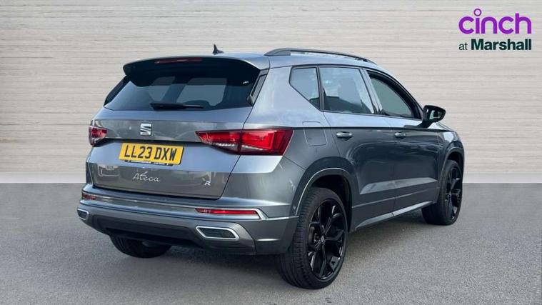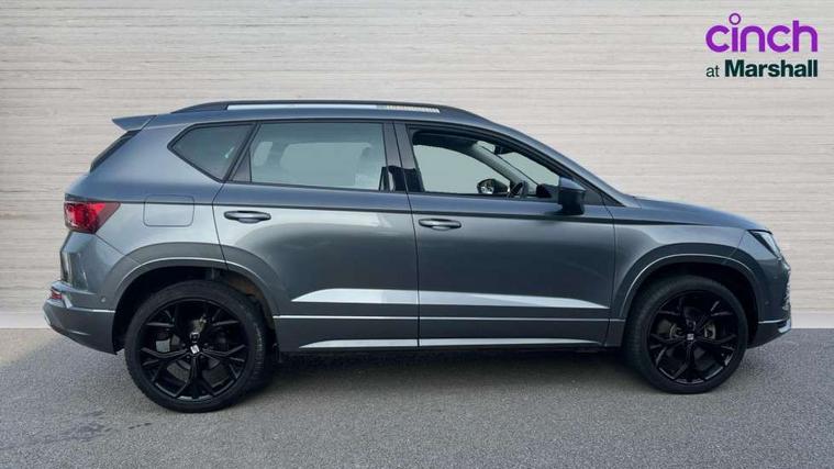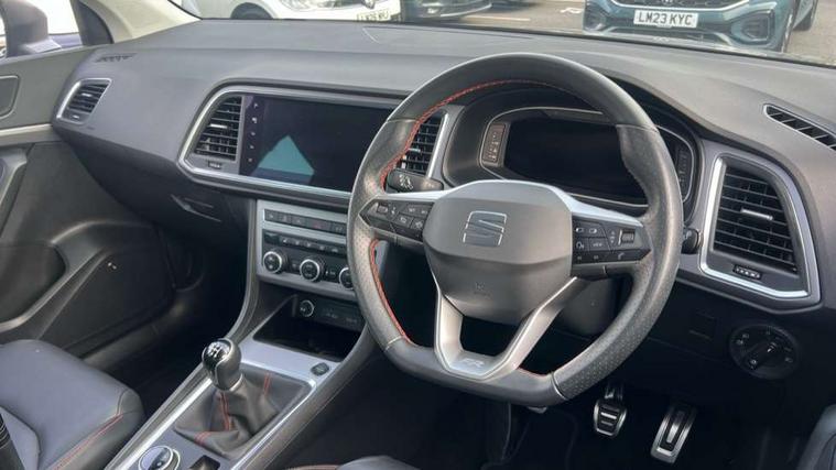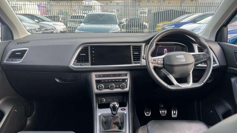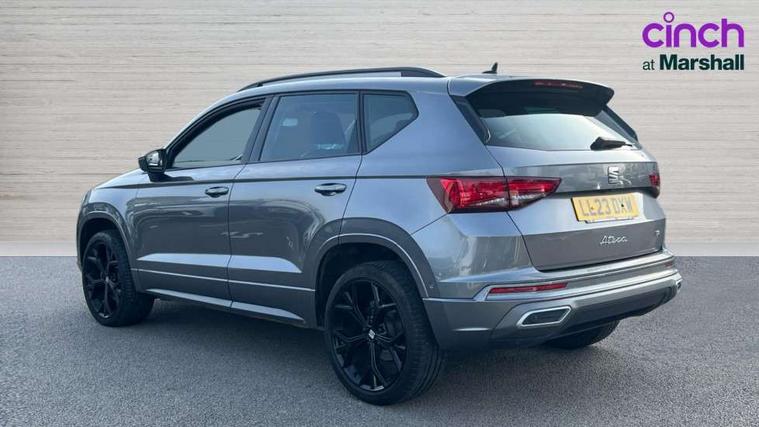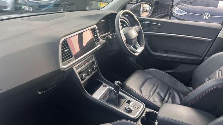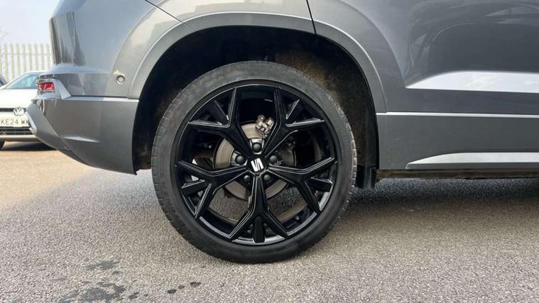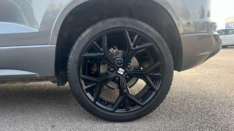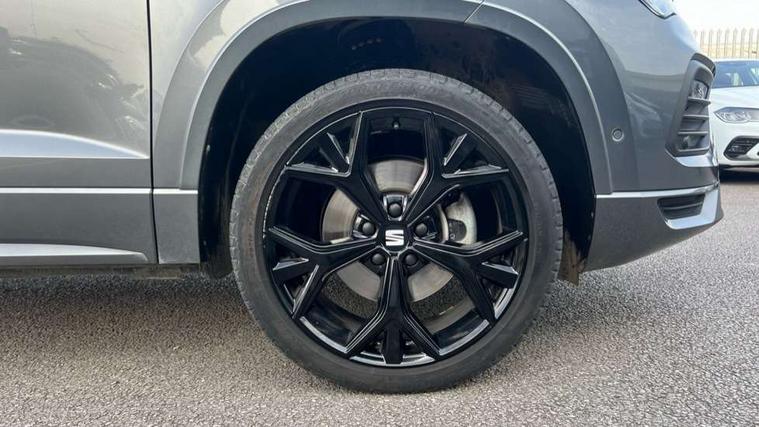 10" Digital cockpit, Cruise control system with speed limiter, E-call, Electric tailgate with virtual pedal, Outside temperature gauge, Progressive power assisted steering, Rear view camera, SEAT drive profile with driving experience button - Normal, Sport, Eco and Individual mode, steering and throttle response, Self parking functionality (includes front and rear parking sensors), Start/stop system, Trip computer, Wireless full link smartphone integration, Wireless phone charger, Beats audio system, Steering wheel mounted audio/phone controls, Black roof rails, Black side window trim, Body colour bumpers, Body coloured wheel arch surrounds, Chrome front grille frame, Dark tinted rear windows, Daytime running lights, Door mirrors with welcome light silhouette, Dynamic headlight range control with self adjusting whilst driving, Electric adjustable/heated/folding door mirrors, Front and rear electric windows, Full LED headlamps with lens and LED front fog lamps with cornering function, Illuminated aluminium front door sill, LED rear tail lights with dynamic indicators, Rear exhaust tailpipe, Rear fog lights, Rear side wing doors, Rear wash/wipe, Roof spoiler, Third brake light, Variable front intermittent wipers, 12V socket in front, 3 seat bench in 2nd row, 60/40 split folding rear seat, Aluminium pedals, Driver seat memory function, Dual zone climate control, Electric adjustable driver seat with lumbar adjustment, Front and rear head restraints, Front centre armrest, Front seat back storage pockets, Heated front seats, Height adjustable passenger seats with lumbar adjustment, ISOFIX points in outer rear seats with top tether anchorage points, Leather sports steering wheel and gear knob, Leather upholstery with front comfort seats, Multicoloured ambient lighting with LED interior illumination, Rear armrest and easy back seat release mechanism from boot, Single front passenger seat, Storage compartment in roof console for sunglass, Convenience pack - Ateca, Interior lighting pack - Ateca, Navigation system pack with DAB - Ateca, 3x3 point rear seatbelts, ABS, Traction control system (TCS), Electronic stability control (ESC) and Electronic differential lock system (XDS), Airbags - Driver and front passenger airbag with deactivation, front side, two curtain and driver's knee airbags, Electric parking brake with auto hold function, Front and rear seatbelt reminder, Front assist with autonomous emergency braking, Hill hold control, Manual rear child locks, Single tone horn, Tiredness recognition system, Tyre pressure monitoring system, Alarm, Keyless entry, Locking wheel bolts, Remote central locking, Chrome interior detailing, 19" Exclusive alloy wheels 36/10 in glossy black, Emergency spare wheel,