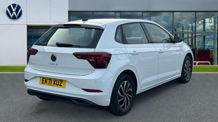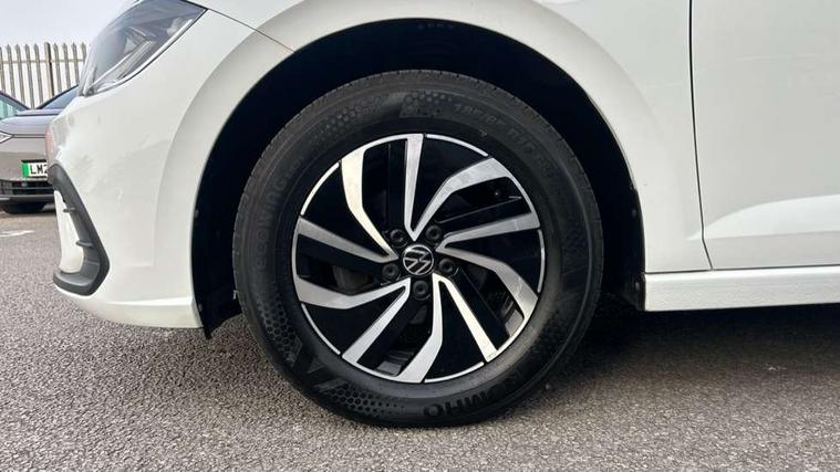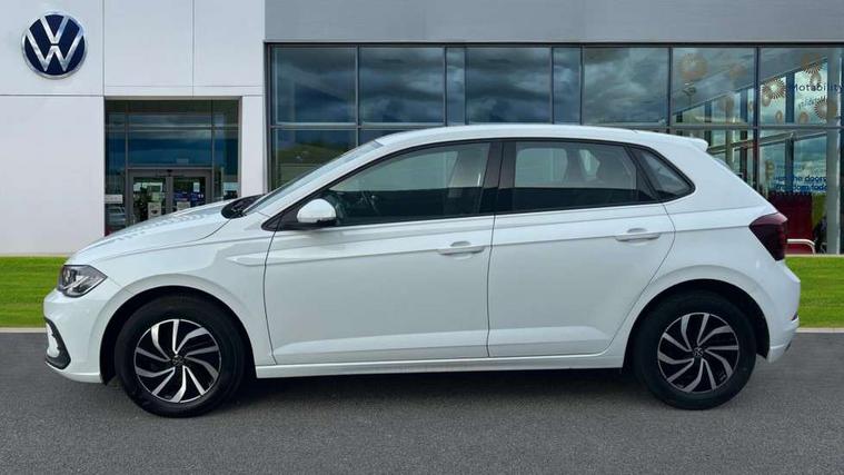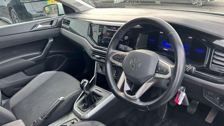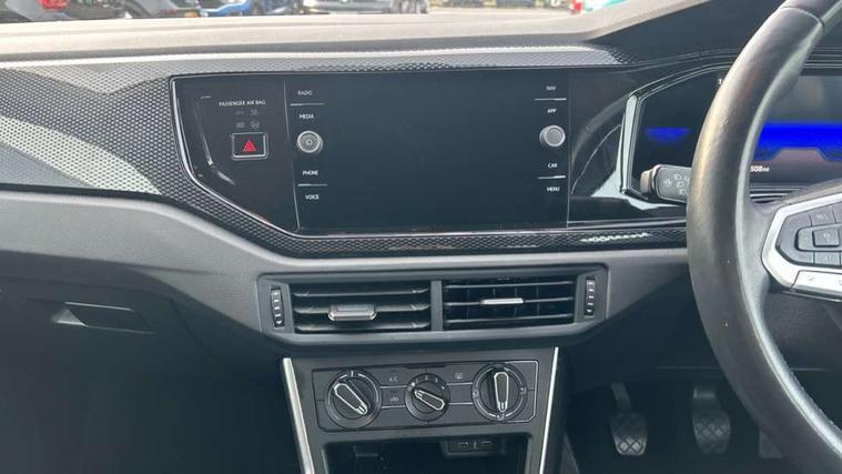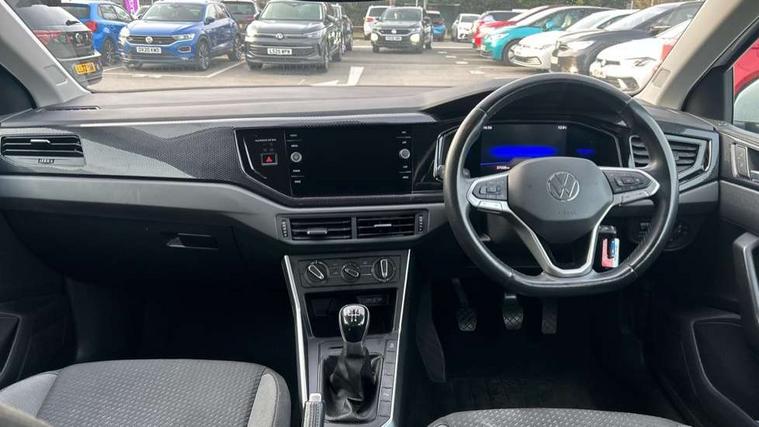 Adaptive cruise control without follow-to-stop and speed limiter, Bluetooth mobile phone interface, Driver alert system, Emergency call service, Front assist system, Power assisted speed sensitive steering, Preparation for We connect and We connect plus, Speedo and rev counter, electronic odometer, trip, service interval display and fuel gauge, Standard rear axle, Travel Assist - Lane keeping system and traffic jam assist, Travel assist including emergency assist, Trip computer, Warning signal and warning light for front and rear seatbelts not fastened, Washer fluid level indicator, Wireless app connect, Front wheel drive, Rear shock absorpion, Start-stop system with battery regeneration (recuperation - energy recovery during braking), DAB Digital radio, Diversity antenna for FM reception, Automatic dimming interior rear view mirror, Body colour bumpers, Body colour door handles, Body colour door mirrors, Electric front windows, Heat insulating darkened glass in side and rear windows, Heat insulating glass windscreen, Power folding adjustable/heated exterior mirrors and front passenger exterior mirror lowering function, Rain sensor, Rear electric windows, Rear fog light, Rear windscreen washer and wiper with interval delay, Third brake light, 12V power socket in centre console, 2 front and 2 rear reading lights, 2 USB-C ports in the front, 2 USB-C charging sockets on the center console in the rear, 3 rear head restraints, 60/40 split folding rear seat and rear seat bench not split, Ceramique headliner, Chrome plated radiator grille inserts, air vent surrounds and light switch surrounds, Door and side trim panel, Driver and front passenger seat height adjustment, Driver/passenger sunvisors with illuminated vanity mirrors, Front centre armrest, Front seat backrest storage pockets, Front standard seats, Handbrake lever handle in leather, Hartley/Thomas cloth upholstery, Isofix child seat preparation easy-fit (for two outer rear seats, and front passenger seat) compatible with I-size, Leather trimmed gear knob, Luggage compartment cover, Luggage compartment floor, Luggage compartment lighting, Multifunction steering wheel, Standard pedal cluster, Light and vision pack - Polo, 3 point height adj front seatbelts + pretensioners, 3x3 point rear seatbelts, ABS, Driver and front passenger airbag with front passenger airbag deactivation, Drivers and front passengers safety optimised head restraints, ESC (Electronic stability control) + EDL (Electronic Differntial lock) and ASR (Traction control), Extended and predictive pedestrian/ cyclist protection, Front curtain and side airbags with center airbag, Front disc brakes, Hill hold control, Rear drum brakes, Single tone horn, Tyre pressure loss indicator, Alarm with interior protection, Anti-theft alarm system with interior monitoring, backup horn, and towing protection, Anti-theft wheel bolts, Electronic engine immobiliser, Remote central locking with 2 remote folding keys, Lava stone black gloss/matt decorative inserts in dash and front door panels, Low rolling resistance tyres,