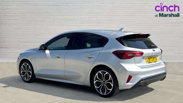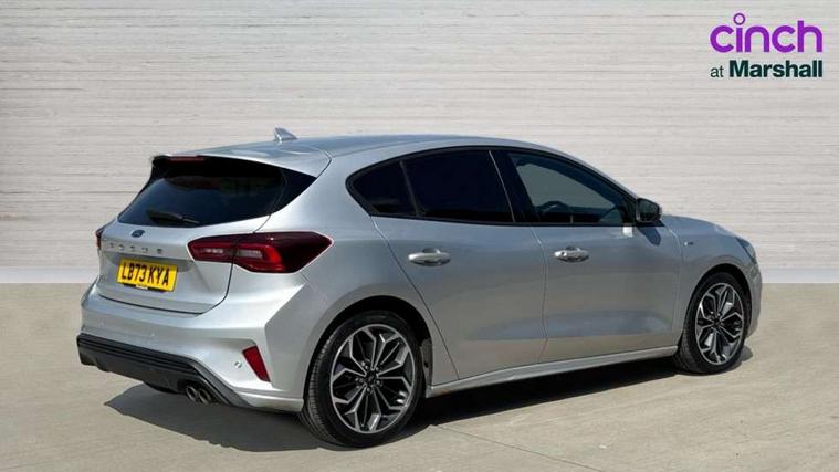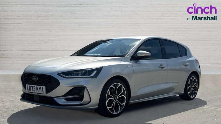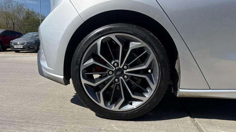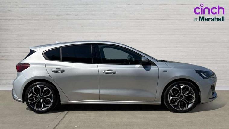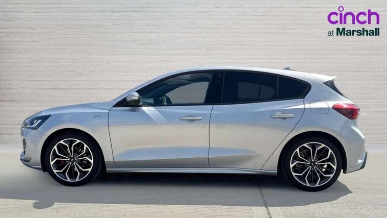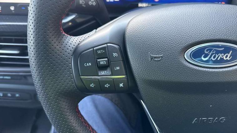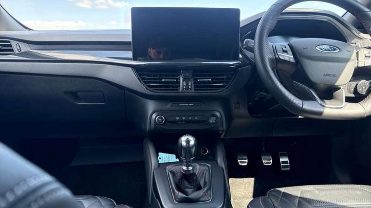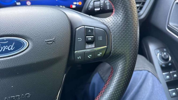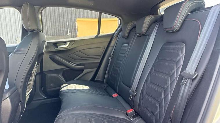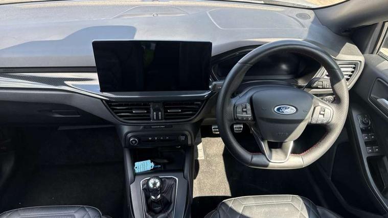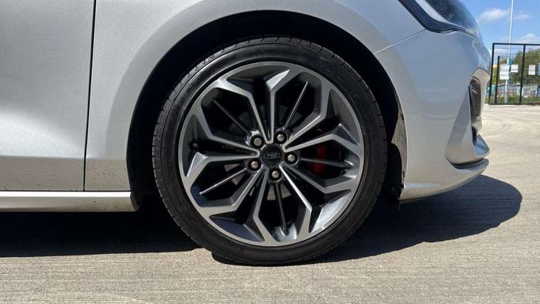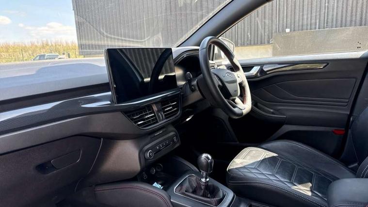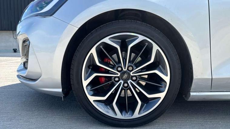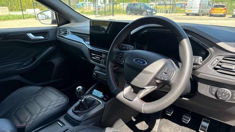 12.3" Digital instrument cluster, Bluetooth system, Digital clock, Easy fuel capless refuelling system, Eco mode, Ford SYNC4 Nav with 13.2'' touchscreen, DAB, Emergency Assistance, Apple Carplay & Android Auto, B&O Premium Audio with 10 speakers, FordPass Connect, Lane keeping system - lane keeping alert and lane keeping aid, PAS, Rev counter, Selectable drive mode, Service interval indicator, Trip computer, Wireless charging pad, Sports tuned suspension, 2 USB ports, Auto headlamps (on/off), Body coloured door handles, Electrically operated front and rear windows with one touch opening and closing, Electrically operated heated power fold door mirrors with puddle lamp with side indicators, Front variable intermittent wipers with electric wash, Heated rear window, LED daytime running lamp, LED rear lamps, LED third brake light, Polished twin tailpipe, Privacy glass, Quickclear heated windscreen, Rain sensor, Rear side wing doors, Tailgate wash/wipe, Unique ST-Line grille, full bodystyling kit, and large body coloured rear spoiler, 3 rear headrests, 3 seat bench in 2nd row, Dual zone electronic air temperature control, Full sensico premium upholstery, Height adjustable front headrests, Isofix child seat preparation, Load through ski hatch, Manual 4-way passenger seat adjusts, Power 4-way driver seat adjust, with power lumbar adjust, Reach + rake adjustable steering column, Single front passenger seat, Winter pack - Focus, 3x3 point rear seatbelts, ABS+Electronic Brake force Distribution, Auto hold function, Driver airbag, EDL traction control, Electronic parking brake, Electronic stability control, Front and rear seatbelt reminder, Front inertia reel height adjustable seatbelts with pre-tensioners, Front passenger airbag, Front side airbags, Passenger airbag deactivate switch, Post collision braking, Pre collision assist with autonomous emergency braking and pedestrian/cyclist detection, Red brake calipers, Remote/power child rear door locks, Side curtain airbags, Three rear inertia reel lap/diagonal seatbelts, Tyre pressure monitoring system, Keyless entry and keyless start, MyKey system, Remote central locking & engine immobiliser, Thatcham alarm with power door dead locks, 18" 5x3 spoke pearl grey high gloss machined finish alloy wheels with mini spare wheel,