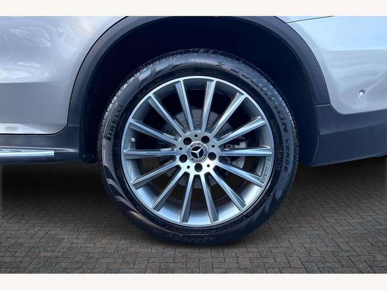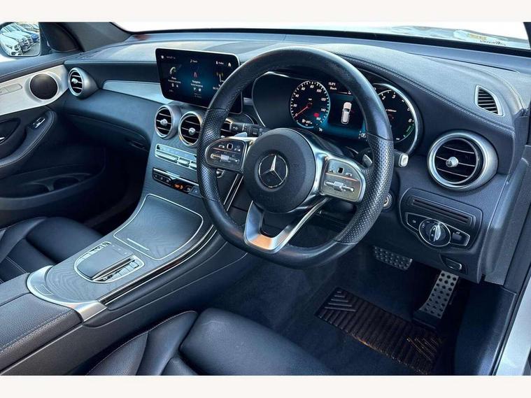 Active parking assist with parktronic system, Attention assist, Bluetooth interface for hands free telephone, Collision prevention assist plus, Cruise control with speedtronic variable speed limiter, Direct steer speed sensitive steering, DYNAMIC SELECT with a choice of driving modes (ECO, Comfort, Sport, Sport+ and Individual), Easy pack automatic powered tailgate, ECO start/stop function, Hard disk navigation, Hey Mercedes Voice activation, Instrument cluster with12.3-inch digital instrument cluster display. High resolution instrument cluster screen with choice of three display styles, MBUX Interior assistant, Mercedes connect me with remote online services, Multi function trip computer, Outside temperature display, rear seatbelt status indicator, Remote and charging services plus, Remote boot release, Reversing camera, Service indicator (ASSYST), Smartphone integration with Apple CarPlay and Android auto, Traffic sign assist, 1 x 3 pin domestic 8m straight charging cable, 1 x type 2 and 3 phase 4m straight wallbox cable, 4MATIC permanent four wheel drive, 50 litre fuel tank, 9G TRONIC plus automatic transmission with steering column gear selector, DIRECT SELECT steering wheel gearshift paddles, Diesel particulate filter, Sports suspension tuned for improved handling and driving dynamics, 5 speakers, Frontbass loudspeakers, MBUX multimedia system with DAB digital radio and touchpad, Media display 10.25-inch touchscreen display, Pre installation for Mercedes Benz Link, USB ports x 2 in centre console, Adaptive brake lights, Aluminium roof rails, AMG bodystyling - AMG front apron with sporty air intakes and chrome trim element, AMG diffuser-look rear apron with insert in black, Body colour door mirrors, Body coloured bumpers, Electric windows one touch open/close, Electrically adjustable and heated door mirrors, Front, side and rear exterior chrome trim, Headlamp assist automatic headlamp activation, LED high performance headlamps with integrated LED daytime running lights, LED tail lamp, Motor way mode function and locator lighting, Privacy glass with dark glass from B pillar backwards, Radiator diamond grille, Rain sensor windscreen wipers, Range adjustable headlights, Rear wiper, Running boards, Tinted glass all round with single layer safety glass, Two chrome plated tailpipe trim elements, 2 way rear head restraints, 3-spoke multifunction sport AMG steering wheel in black nappa leather with flattened bottom section, chrome insert and perforated leather in grip area, 40:20:40 split folding rear seats, Ambient lighting, AMG floor mats with edging and embroidered AMG lettering, AMG sports seats, Artico man-made leather upper dashboard with contrast topstitching, Automatic child seat recognition sensor, Black roof lining, Dividing net - rear, Double cup holder in centre console, Easy-pack removable load compartment cover, Front armrest with storage box, Front door sills with Mercedes Benz lettering, Front head restraints, Front seats with electric adjust (backrest, height and seat cushion inclination) with 4 way electric lumbar support and manual cushion depth adjust, Heated front seats, Height/reach adjustable steering column, Illuminated and lockable glove compartment, Leather upholstery, Pre-entry climate control, Rear top tether child seat ISOFIX attachment, Sports pedals with stainless steel surfaces and rubber studs, Steering wheel with touch control buttons, THERMOTRONIC 3 zone automatic climate control, Interior lighting pack - GLC, Mirror pack - GLC, Storage pack - GLC, 3 rear 3 point seatbelts, Active bonnet, Adaptive brake system with HOLD function and brake drying in the wet, ASR, Black seat belts, Brake calipers with Mercedes-Benz lettering + perforated brake discs, Child proof door locks, Dual-stage airbags - driver and front passenger, driver knee bag and window bags for driver, front passenger and rear passengers, Electronic parking brake, Electronic stability programme (ESP) with curve dynamic assist and cross wind assist, Front and rear seatbelt reminder, Front passenger seat occupancy sensor, Hill hold function, Radar-based recuperation, Tyre pressure monitoring system, Warning triangle and first aid kit, Alarm system/interior protection/immobiliser, Automatic door locking, KEYLESS-GO starting function, Remote central locking, Open pore black ash wood trim, 20" AMG multi spoke design alloy wheels painted in titanium grey with high sheen finish, Run flat tyres, Summer tyres,
