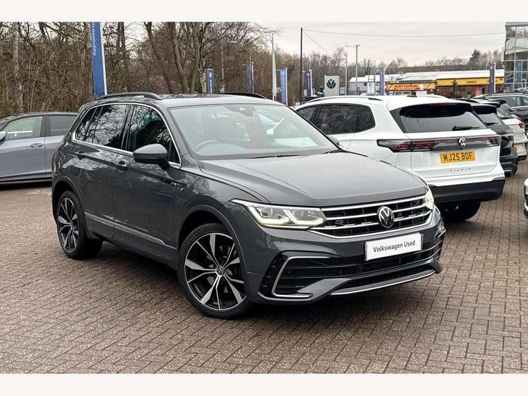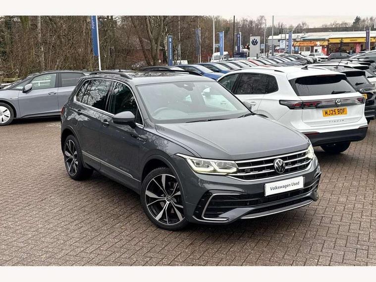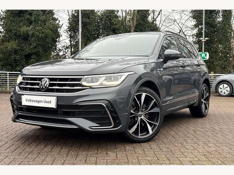 Adaptive cruise control ACC stop and go including speed limiter, App-Connect incl. App-Connect Wireless for Apple CarPlay and Android Auto, Bluetooth phone integration system, Distance control assist, Driver alert system, Driver profile selection, Dynamic road sign display, eCall emergency call system, Electromechanical speed sensitive power steering, Engine start/stop button, Lane keeping system Lane Assist, Lights on warning, Multifunction front facing camera, Outside temperature display, Premium multifunction display with multi colour display, Remote control boot opening, Rev counter, Revision / skills operating concept travel assistant, Service interval indicator, Speed limit display, Start/stop system with regenerative braking, Trip computer, Warning sound and light for doors and tailgate open, All wheel drive - 4Motion, Battery regeneration during braking, Diesel particulate filter, Misfuel prevention device for diesel engine, Selective Catalytic Reduction, XDS electronic differential lock for improved traction and handling, 4 X 20 watt output, 8 Speakers, Diversity antenna for FM reception, Radio, SD card slot, Simultaneous pairing of 2 compatible mobile devices, SMS functionality - read, compose and send SMS messages using touch-screen display, Title and cover art display, USB C ports, Auto dimming interior rear view mirror, Automatic headlight control system, Body colour door handles, Chrome moldings on the side windows, Coming/leaving home lighting function, Dynamic headlight range control, Front and rear electric windows, Heated rear window, High level 3rd brake light, Laminated safety glass windshield, heat and sound insulating, LED headlamps with LED separate daytime running light and dynamic cornering light, LED rear combination lamps, LED rear number plate lights, License plate carrier in front and rear, Poor weather light and cornering light, R Line body kit, R Line side sills, Rain sensor windscreen wipers, Rear exhaust tailpipe, Rear fog lamp, Rear side wing doors, Rear spoiler in R style, Rear windscreen washer and wiper with interval delay, Side and rear windows in heat insulating glass, Trailer Stability Programme, Unique R Line badging, Windscreen wipers/ intermittent wipe + 4 position delay, 12V outlet in center console rear and in luggage compartment, 12V outlet in front and tray, 2 cup holders in front, 2 LED front reading lights, 2 LED rear reading lights, 3 bench rear seats in 2nd row, 3 rear headrests, 4 load lashing points, 40:20:40 split folding rear seats, Air Care Climatronic 3 zone automatic climate control with enhanced air filter and controls in the rear, Backrest release for left front seat, Black headlining, Brushed stainless steel pedals and footrest, Carpet mats in front and rear with decorative stitching in Gray, Climate control unit rear with touch function, Door and side trim panel in foam film, insert in leatherette, Front centre armrest, Front footwell illumination, Front seats head restraints (x-adjustment), Height adjustable front seats, Height/reach adjust steering wheel, Instrument lighting white adjustable panel illumination, Interior light with delay, Isofix Preparation 2 Rear child seats, Leather gear knob, Lockable cooled glovebox, Luggage compartment lighting, Luggage net, Rear bench seat asymetrically split folding, longitudinally movable and folding with load-through hatch and center armrest, Remote unlocking for rear seat backrest, Removable luggage cover, Removable rear headrests, Safety optimised front head restraints, Single front passenger seat, Sliding/reclining rear seats, Standard rear seat release, Storage compartment in driver's door, Storage compartment in passenger's door, Storage compartment in rear doors, Storage compartments in luggage area left and right, Storage tray on dashboard, Sun visors with illuminated vanity mirrors, Top front comfort seats, Variable boot floor, height adjustable and removable, Driver assistance pack plus - Tiguan DSG, 3 point seat belt for centre rear seats, 3 point seat belts with seat belt pretensioners for the outer rear seats, Active bonnet, Curtain airbags for front and rear passengers, Driver/Front Passenger airbags, Drivers knee airbag, Electronic parking brake with auto hold, Electronic Stability Control with driver steering recommendation, ABS, ASR, EDL, EDTC and trailer stabilization, Front assist with autonomous emergency braking (for Adaptive Cruise Control ACC up to 130 mph), Front disc brakes, Front passenger airbag deactivation, Front side airbags, Height adjustable front 3 point seatbelts + pretensioners, Hill hold control, Manual child proof rear door locks, Pedestrian monitoring system, Power assisted brakes, Proactive passenger protection system in combination with front assist, Rear disc brakes, Rigid safety cell with front and rear crumple zones, Two tone horn, Warning sound and light for front seat belts if unfastened, Anti theft alarm system with interior monitoring, backup horn and towing protection, Anti theft wheel bolts, Electronic engine immobiliser, Tool kit,