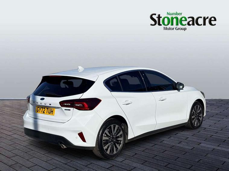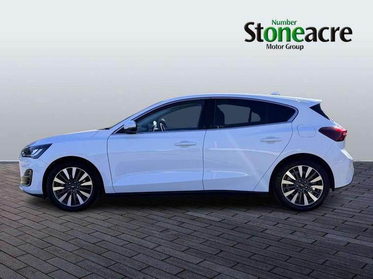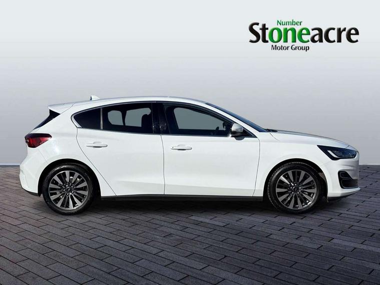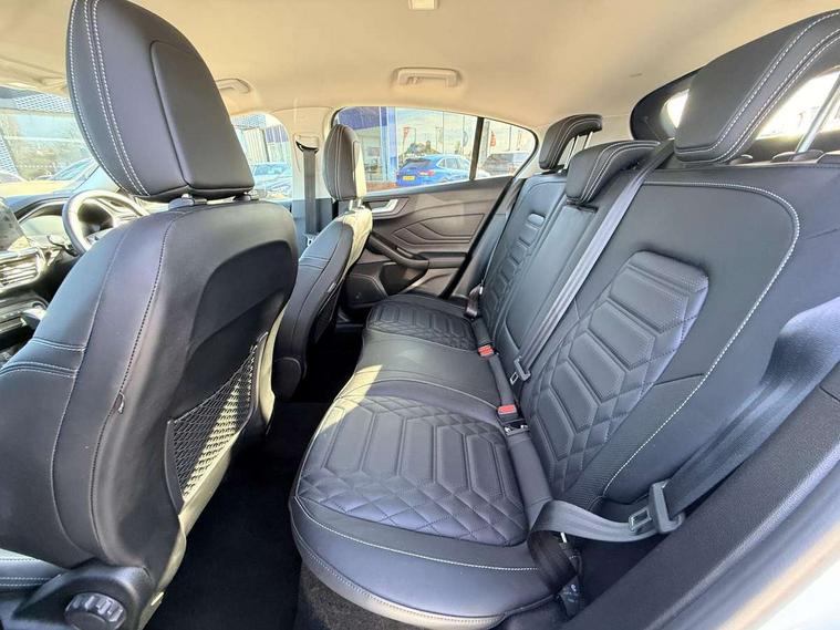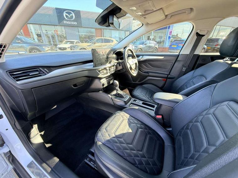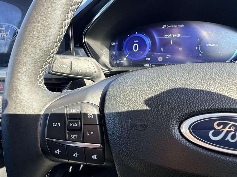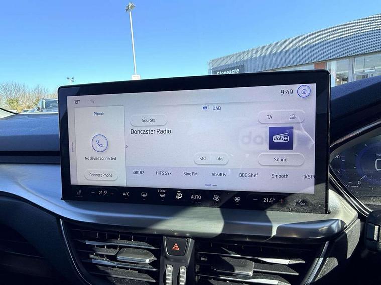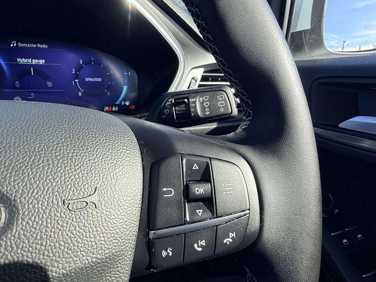 12.3" Digital instrument cluster, Bluetooth system, Digital clock, Easy fuel capless refuelling system, Eco mode, Ford SYNC4 Nav with 13.2'' touchscreen, DAB, Emergency Assistance, Apple Carplay & Android Auto, B&O Premium Audio with 10 speakers, FordPass Connect, Lane keeping system - lane keeping alert and lane keeping aid, PAS, Rev counter, Selectable drive mode, Service interval indicator, Trip computer, Wireless charging pad, 2 USB ports, Auto headlamps (on/off), Body coloured door handles, Electrically operated front and rear windows with one touch opening and closing, Electrically operated heated power fold door mirrors with puddle lamp with side indicators, Front variable intermittent wipers with electric wash, Grille with chrome bars and self colour surround, Heated rear window, LED daytime running lamp, LED rear lamps, LED third brake light, Privacy glass, Quickclear heated windscreen, Rain sensor, Rear side wing doors, Tailgate wash/wipe, 3 rear headrests, 3 seat bench in 2nd row, Dual zone electronic air temperature control, Full sensico premium upholstery, Height adjustable front headrests, Isofix child seat preparation, Load through ski hatch, Manual 2-way passenger seat adjust, Power 4-way driver seat adjust, with power lumbar adjust, Reach + rake adjustable steering column, Single front passenger seat, Winter pack - Focus, 3x3 point rear seatbelts, ABS+Electronic Brake force Distribution, Auto hold function, Driver airbag, EDL traction control, Electronic parking brake, Electronic stability control, Front and rear seatbelt reminder, Front inertia reel height adjustable seatbelts with pre-tensioners, Front passenger airbag, Front side airbags, Passenger airbag deactivate switch, Post collision braking, Pre collision assist with autonomous emergency braking and pedestrian/cyclist detection, Remote/power child rear door locks, Side curtain airbags, Three rear inertia reel lap/diagonal seatbelts, Tyre pressure monitoring system, Keyless entry and keyless start, MyKey system, Remote central locking & engine immobiliser, Thatcham alarm with power door dead locks, 17" 5x3 spoke alloy wheels with Pearl grey machined finish with mini spare wheel,