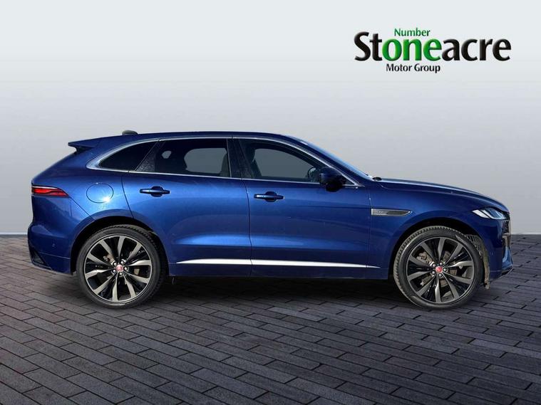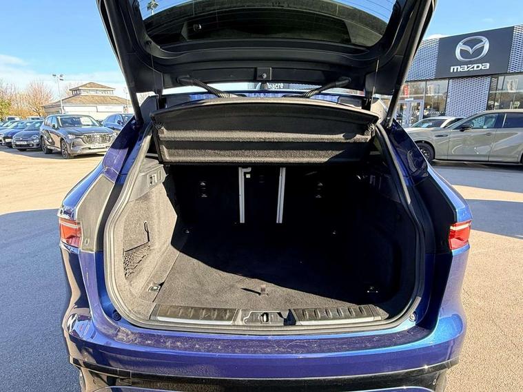 11.4" touchscreen, 3D surround camera, Adaptive cruise control, Android Auto, Apple car play, Blind spot assist, Bluetooth connectivity, Clear exit monitor, Driver alert system, Driver condition monitor, Eco driving style assistant, Electric power assisted steering, InControl remote, Interactive Driver display instrument cluster, Jaguar Toggle shift selector, Lane departure warning system, Lane keep assist, Outside temperature gauge, Personalisation profile management, Pivi pro connected navigation system with app interface and media storage, Pro services and wifi hotspot, Push button starter, Rear collision monitor, Rear traffic monitor, Service interval indicator, Speed proportional steering, Start up sequence with movement in dials and lighting, Traffic sign recognition with adaptive speed limiter, Trip computer, Voice control system, 8 speed automatic transmission, Adaptive dynamics, All terrain progress control, All Wheel Drive (AWD), Configurable dynamics, Open differential with torque vectoring by braking, AM/FM radio, Bluetooth streaming, DAB Radio (Digital Audio Broadcasting), Dynamic volume control, InControl apps, InControl protect, iPod integration, 3 flash lane change indicators, Animated directional indicators, Approach Illumination, Auto dimming rear view mirror, Automatic headlights, Body colour door mirrors, Electric heated/power fold memory door mirrors with approach lights and auto dimming driver side, Electric windows with one touch open/close and anti trap, F-Pace badge, Green tinted glass, Heated front windscreen + heated washer jets, Heated rear window with timer, Illuminated metal tread plates with Jaguar script, Jaguar script and leaper, LED tail lights, Non acoustic front windscreen, R Dynamic badge on side door, Rain sensor windscreen wipers, Rear fog lights, Rear metal tread plates, Rear wiper, Trailer stability assist, Variable front intermittent wipers, 12V power point front, 3 rear headrests, Air distribution speed, Cabin lighting, Centre armrest console, Centre console with side storage, Door sill tread plates, Electrically adjustable steering column, Fold flat front seats, Front centre armrest with storage compartment, Front door storage space, Glovebox finisher with jaguar script, Heated steering wheel, Hooks in loadspace, Illuminated glovebox, Interior front door handles with separate locking switches, ISOFIX on outer rear seats, Jaguar sense, Luggage tie downs in loadspace, Mist sensing, Multifunction steering wheel, Overhead lighting console, Overhead stowage for sunglasses, Passive front head restraints, Premium carpet mats, R-Dynamic branded leather steering wheel, Rear air vents, Rear armrest with twin cupholders, Rear centre headrest, Rear door storage space, Reversible boot floor, Satin chrome gearshift paddles, Shopping bag hook, Sunvisors with illuminated vanity mirrors, Twin front cupholders with cover, Online Pack with data plan - F-Pace, 355mm front brakes and 325mm rear brakes, 3x3 point rear seatbelts, ABS, All surface progress control (ASPC), Brake pad warning light, DSC - Dynamic Stability Control, Electric parking brake (EPB), Front airbags with passenger seat occupant detector, Front and rear seatbelt reminder, Front side airbags, Full length side window curtain airbag, Hill launch assist, Power operated child locks, Torque vectoring brake, Traction control, Tyre pressure monitoring system, Immobiliser, Keyless entry, Keyless Start, Locking wheel nuts, Perimeter alarm, Remote central locking, Valet mode,