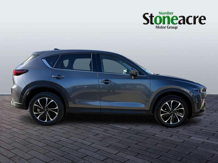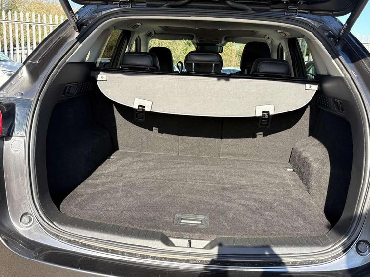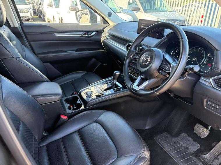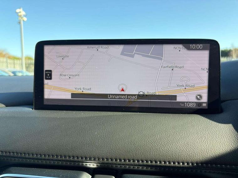 10.25" display with Mazda Connect infotainment, 7" colour TFT display, Advanced blind spot monitoring, Bluetooth connectivity with voice control, Collision prevention assist, Connected services, Cruising Traffic Support, Drive mode selector, Electric power steering, Emergency stop signalling system, Engine start/stop button, Forward collision warning, Front and rear parking sensors, Integrated navigation system, Intelligent speed assist, Lane departure warning system, Lane keep assist, Power liftgate, Qi wireless phone charging, Radar cruise control with Stop and Go, Rear cross traffic alert, Reversing camera, Service indicator, Traffic sign recognition (TSR), Trip computer, Windscreen projected colour active driving display (HUD) with memory, Wireless apple car play/android Auto, Cylinder Deactivation, i-stop, AM/FM radio, Bluetooth audio streaming, Bose premium sound system with 10 speakers, DAB Digital radio, Multimedia Commander including separate volume dial, Steering wheel mounted audio controls, Adaptive front lighting system, Auto dimming rear view mirror, Automatic headlights, Black inlay dashboard panel, Body colour door mirrors, Body colour roof spoiler, Body coloured front and rear black lower bumper mouldings, Coming/leaving home lighting function, Door mirror integrated indicators, Dual chrome tailpipes, Dusk sensitive headlamps, Electric front/rear windows with one touch auto up/down, Front grille in gloss black finish, Front grille in gloss black finish with chrome signature wing, Gloss black B and C pillars garnish, High beam assist, Intermittent rear wash/wipe, LED auto levelling, LED daytime running lights, LED front fog lights, LED Headlights, LED third brake light, Power folding and heated door mirrors, Power tilt/slide sunroof, Privacy glass (rear side windows only), Rain sensing front wipers, Rear side wing doors, Satin black side mouldings, Scuff plates, Shark fin antenna, Signature LED rear combination lights, Variable intermittent front wash/wipe, Vinyl with wood grain metal inlay door trim panel, Windscreen wiper de-icer, 12v electrical power outlet, 3 seat bench in 2nd row, 3 stage heated front seats, 40:20:40 Karakuri fold-flat seat system, 6 way electric adjustable passenger seat, 8 way electric driver seat with lumbar support + memory, Cargo room flat floor board with waterproof undertray, Driver seat power slide, recline and height adjustment, Driver, Front passenger and two rear grab handles with coat hooks, Driver/passenger front seatback pockets, Driver/passenger sunvisors + illuminated vanity mirrors (drivers with ticket holder), Dual zone climate control, Folding centre armrest with 2 cup holders, Front and rear door pockets, Front centre storage with two cupholders, Front passenger seat power slide, recline and height adjustment, Heated steering wheel, Humidity sensor, Illuminated glovebox, Interior dome light with integral spotlight, ISOFIX child seat anchorage points attached on outer rear seats, Karakuri tonneau cover, Leather upholstery, Leather wrapped steering wheel and gear knob, Light roof lining, Luggage compartment LED lighting, Luggage compartment power outlet, Paddle shifts, Rear air vents, Rear headrests, Rear seat recline, Roof mounted sunglasses holder, Single front passenger seat, Three height adjustable head restraints, Tilt/height adjustable steering wheel, USB Connectivity (2x front Type-C, 2x rear Type-B), White interior LED illumination lighting, 3 point front seatbelts with pre-tensioners, 3 rear 3 point seatbelts, ABS, Advanced Smart City Brake Support - SCBS, Child locks on rear doors, Driver and front passenger side airbags, DSTC-Dynamic Stability and Traction Control, Dual front airbags, Electronic brake force distribution, Electronic parking brake with auto hold, ESP, Front and rear curtain airbags, Front passenger airbag deactivation, G-Vectoring control, Hill hold assist, Seatbelt reminder front and rear, Single stage passenger airbags, Smart brake support with forward obstruction warning, Tyre pressure monitoring system, Automatic door locking when moving off, Deadlock, Immobiliser, Power door locks, Remote central locking, Smart keyless entry, Thatcham Cat.1 alarm, 19" diamond cut black alloy wheels, Tyre repair kit,