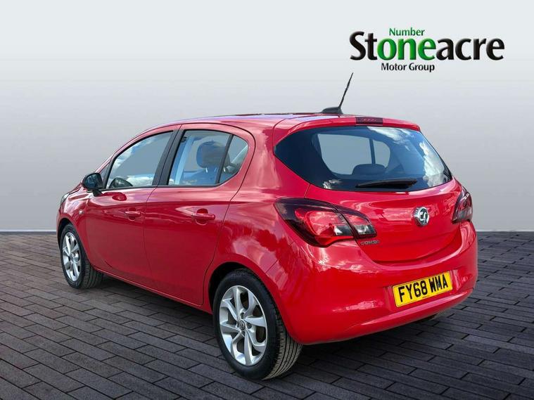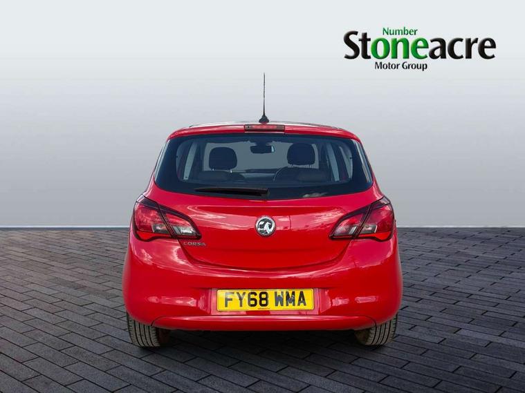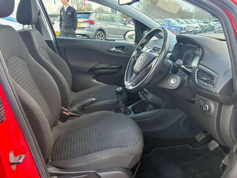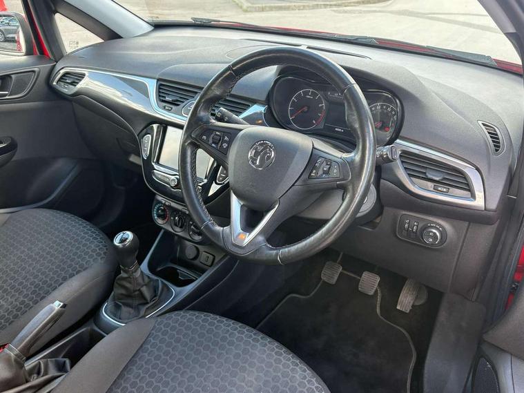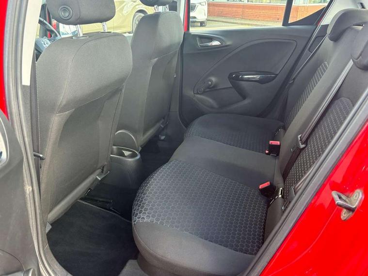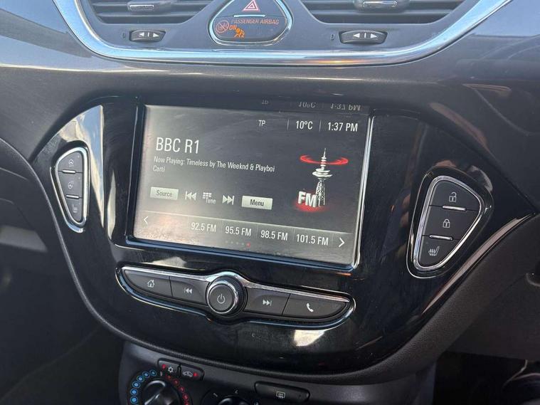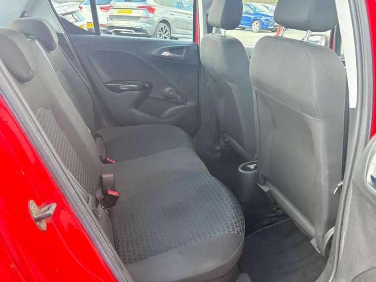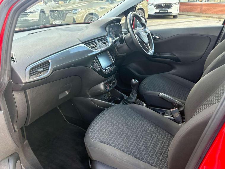 Apple car play/Android Auto, Central facia display, Cruise control + speed limiter, Digital fuel gauge with low fuel warning light, Digital water temperature gauge, Electric speed sensitive power steering, Exterior temperature gauge, Lights on audible warning, Rev counter, Service indicator, Speed warning indicator, Speedometer, Trip computer, White graphics on black background, Front anti roll bar, Steering wheel mounted audio/cruise controls, Black foil on B-pillars, Body colour bumpers, Body colour door handles, Body coloured door mirrors, Chrome front grille, Dipping rear view mirror, Door to door illumination, Electric adjustable/manual folding heated door mirrors (wide angle on driver's side), Electric headlight beam leveling, Electrically operated front windows with safety auto reverse/one touch facility, Front fog lights with black surround, Halogen headlights, Hazard warning lamps, Headlamp levelling, Heated rear window, Heated windscreen, High level LED centre brake light, Intermittent rear wash/wipe, Laminated windscreen, LED daytime running lights, Rear fog lights, Rear wiper, Side window demist vents, Two speed windscreen wipers with variable intermittent wipe, Welcome lighting, Windscreen demist vents, 12V electrical accessory socket in front, 3 spoke steering wheel, Anti submarining ramps in all seats, Centre console with cupholders, Chrome gear knob, Chrome interior door handles, Cloth upholstery, Comfort front seats, Driver's and front passenger's sunvisors, Driver's and front passenger's tiltable assist handles, Driver's and passenger's vanity mirrors with flip up cover, Driver's vanity mirror, Four adjustable facia vents, Front courtesy lights, Front door pockets, Front map reading lights, Front seat belt pre-tensioners with load limiters, Glovebox with lid, Grab handles, Height adjustable driver's seat, Height adjustable front headrests, Height adjustable rear head restraints with adjustable backrest, Illuminated luggage compartment, Instrument panel light dimmer, Interior tailgate handles, Isofix child seat mounting points on outer rear seats, Load restraining lashing points, Luggage compartment cover, Multi function steering wheel, Pollen filter, Reach + rake adjustable steering column, Rear courtesy lights, Rear door pockets, Rear reading lights, Reclining front seats, Storage box on driver's side lower facia, Stowage facility for luggage compartment cover behind rear seats, Twin gas assisted tailgate struts, Sight and light Pack - Corsa, Winter pack - Corsa, Anti-lock braking system (ABS), Brake assist function, Electronic brake force distribution, Electronic Stability Programme, Energy absorbing steering column, Front and rear seatbelt reminder, Front and rear seatbelt unfastened audible warning and warning light, Front seatbelt force limiters, Gas pressure dampers, Height adjustable front seatbelts, Hill start assist, Manual passenger airbag deactivation function, Pedal release system, Rear child proof door locks, Reinforced passenger safety cell, Side impact protection beams, Six airbags - Driver's dual stage airbag/front passenger's dual stage airbag/front seat side impact airbags/full size curtain airbags, Three 3 point rear seatbelts, Three inertia reel lap/diagonal seatbelts, Traction control, Tyre pressure monitoring system, Electronically protected audio, Engine Immobiliser & Deadlocks, Key left in ignition audible warning, Locking wheel bolts, Remote control central locking, Visible vehicle identification number, Rhutenium facia with chrome effect inserts,