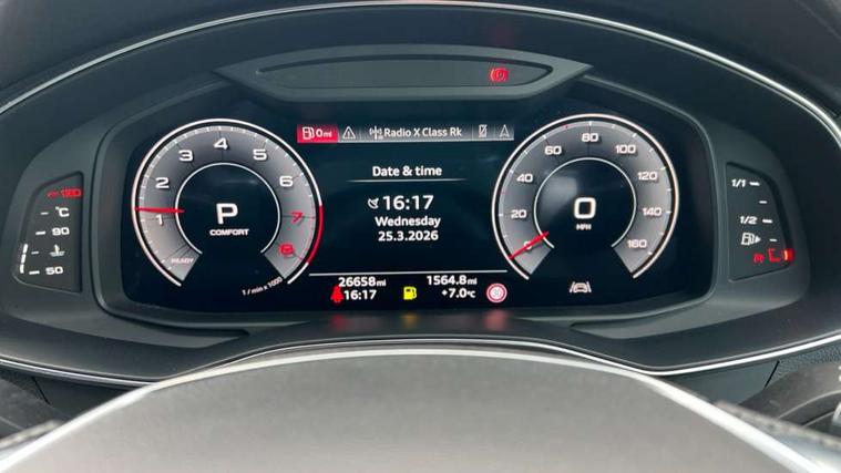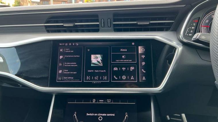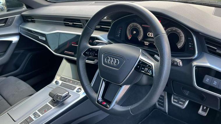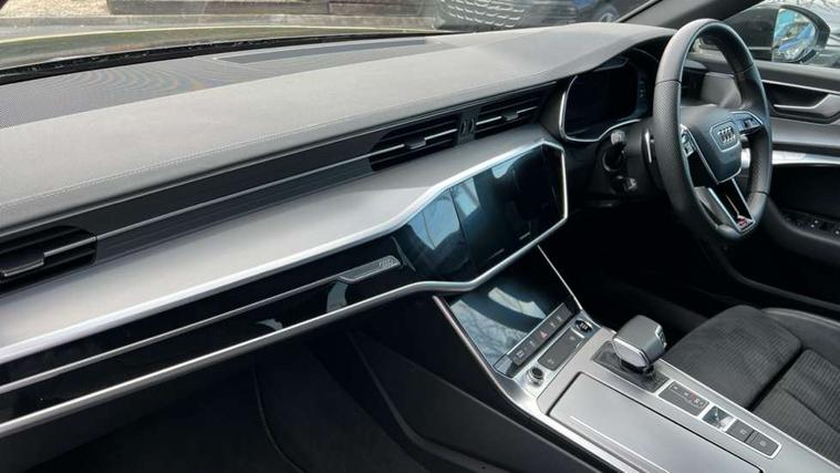 Audi connect safety and service (e-call), Audi connect with Amazon Alexa Integration, Audi drive select, Audi parking system plus - acoustic and visual park assist system for front and rear, Audi virtual cockpit, Automatic start/stop system with coasting functionality, Bluetooth interface, Camera based traffic sign recognition, Lane departure warning system, MMI navigation plus with 10.1" and 8.6" touch screens, Power operated tailgate, Progressive steering, Rear view camera, Service interval indicator, Smartphone interface includes wireless Apple carplay/Android Auto, Voice control system, Sports suspension, Audi front music interface, Audi sound system, Auxiliary input socket, DAB Digital radio, USB connection, Aluminium roof rails, Body colour rear roof spoiler, Body coloured door mirrors, Electric front/rear windows, Electrically adjustable heated and folding + automatically dimming exterior mirrors with memory function, Frameless auto dimming interior rear view mirror, Front intermittent wipers, Heat insulating darkened glass in side and rear windows, Heat insulating glass in windshield, LED rear lights with dynamic indicators, LED signature front daytime running light, LED third brake light, Matrix LED headlights, Matt black rear diffuser with diffuser strip and tailpipes in chrome, Matt black side air intake grille with inlay in matt aluminium, Privacy glass, Radiator grille in anthracite black matt, single frame in chrome and horizontal struts in matt aluminium silver, Rain and light sensors, Rear side wing doors, Rear wiper, 2 zone deluxe electronic climate control, 3 spoke high multi-function perforated leather steering wheel with contrast stitching and shift paddles, 40/20/40 split folding 3 rear seat bench in 3 parts with rear centre armrest, Audi phone box light, Black cloth headlining, Electrically adjustable front seats including seat height, fore/aft position, backrest angle and 4-way lumbar with memory for driver's seat, Front and rear floor mats, Front centre armrest, Front head restraints, Heated front seats, Height/reach adjust steering wheel, Illuminated door sill trims with S logo, Illuminated sun visors with vanity mirrors, ISOFIX child seat mounting and Top Tether with front passenger airbag deactivation, Leather gear knob, Luggage compartment system, Rear headrests, Single front passenger seat, Stainless steel pedals and foot rest, Tool kit and car jack, LED Interior Ambient Lighting Pack - A6, Non smoking pack - A6, S line exterior style pack - A6, 3 point seatbelts on all seats, Airbags - Front side, front and rear including head, Audi pre-sense front, EBD - Electronic brakeforce distribution, Electromechanical parking brake, Electronic Stability Control (ESC) including ABS, ASR and EDL, Extended pedestrian protection measures, Manual child proof rear door locks, Seatbelt monitoring, Tyre pressure warning light, Warning triangle and first aid kit, Anti theft alarm with tow away protection, Anti-theft wheel bolts and wheel loosening detection, Immobiliser, Keyless Go, Remote central locking, Matt brushed aluminium inlays,