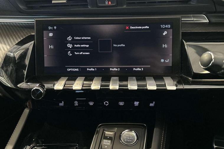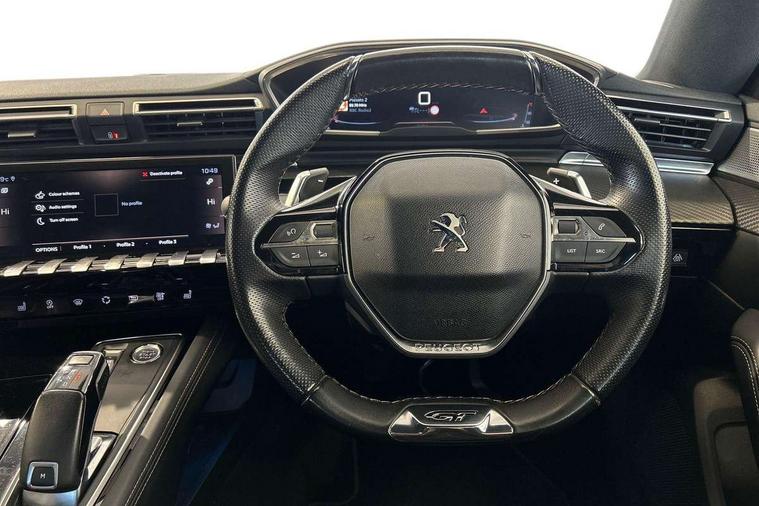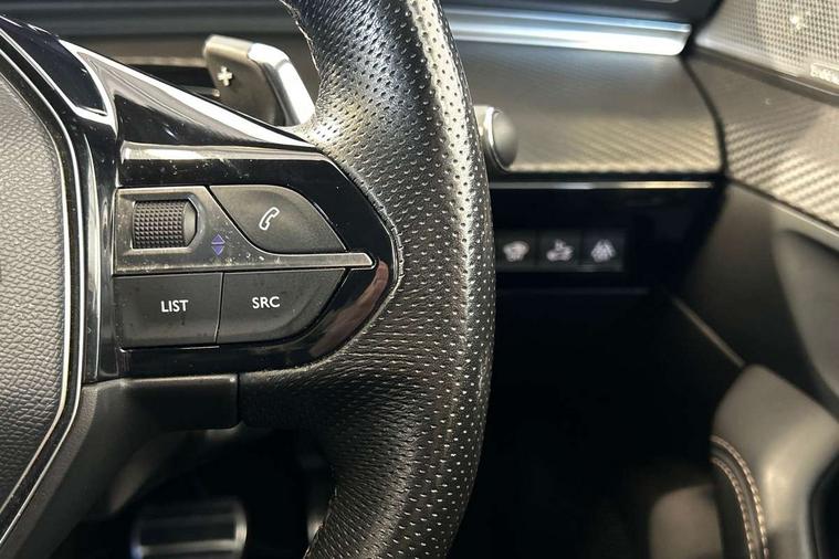 10" touch screen, 3D connected navigation + Peugeot connect SOS and assistance, Active blind spot assist, Advanced driver attention alert, Apple car play/Android Auto, Bluetooth connectivity with voice recognition, Cockpit display 12.3" widescreen digital instrument cluster, Distance control assist, Electric tailgate release, EPAS, Exterior temperature gauge, Front and rear parking sensors, Lane keep assist, MirrorLink, Multi function trip computer, Peugeot i-cockpit with amplify configurable interior ambiences, blue ambient lighting, Smartphone wireless charging plate, Speed limit recognition, Active suspension system, 2 USB sockets in rear, 2x USB sockets in front, DAB Digital radio, Focal premium HiFi sound system, Radio/CD with MP3 compatability, Auto dimming rear view mirror, Automatic activation of hazard warning lights, Automatic headlights + automatic windscreen wipers, Body colour door handles, Body coloured bumpers, Chrome trimmed radiator grille, Dark tinted rear side windows + tailgate window, Door mirror memory, Dual chrome exhaust, Electric adjustable heated door mirrors, Electric folding door mirrors with blind spot detection and electrochrome auto dimming function, Electric front/rear windows/one touch operation, Electrochrome rear view mirror, Follow me home headlights, Gloss black side window surrounds, Headlamp levelling, Heated rear windscreen, LED daytime running lights, LED headlights with static cornering light, LED rear lights, Nera black door mirrors, Peugeot smart beam assist, 1/3 to 2/3 split folding rear seats, 2 rear cupholders, Aluminium pedals and footrest, Black carpets, Driver's electric lumbar adjustment, Dual zone automatic air conditioning, Electric lumbar adjustment on passenger's seat, Electrically adjustable front seats, Front centre armrest, Front centre console cup holders, Front door pockets, Front seat back map pockets, Heated front seats, Height adjustable front headrests, Height adjustable rear headrests, Illuminated cup holders, Illuminated glovebox, Illuminated storage compartment, Illuminated vanity mirror, ISOFIX on front passenger and rear outer seats, LED footwell lights, LED luggage compartment lighting, LED rear reading lights, Mistral full grain perforated leather steering wheel with aikinite stitch, Rake/reach adjustable steering wheel, Rear centre armrest/ski flap, Rear coat hooks, Rear seat ventilation, Roof lining - Mistral black, Satin steel chrome full grain leather gear lever, Stainless Steel Scuff Plates, Drive assist plus pack - 508, 3 point seatbelts on all seats, ABS/EBFD/EBA, Active bonnet, Driver and passenger side airbags, Driver/Front Passenger airbags, Electrically operated child locks on rear doors, Electronic parking brake, ESP with ASR, Front and rear curtain airbags, Front passenger airbag deactivation, Hill start assist, Road sign information display, Seatbelt pretensioners and force limiters, Seatbelt warning, Tyre pressure sensor, Warning triangle, Auto door lock when driving, Locking wheel nuts, Perimetric and volumetric anti theft alarm, Peugeot Open and Go System, Remote central locking, Carbon effect interior trim, 19" Augusta diamond cut two tone alloy wheels, Space saver spare wheel,