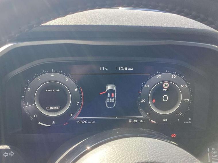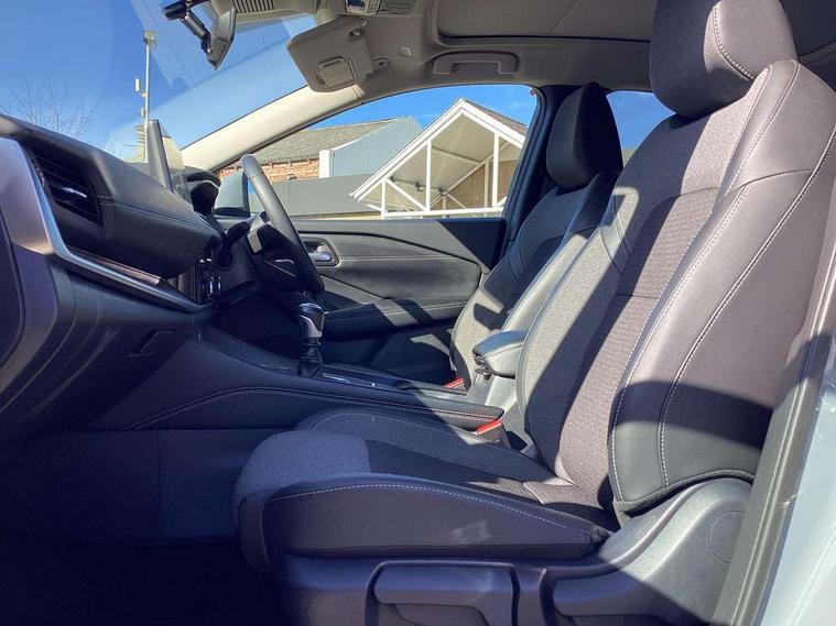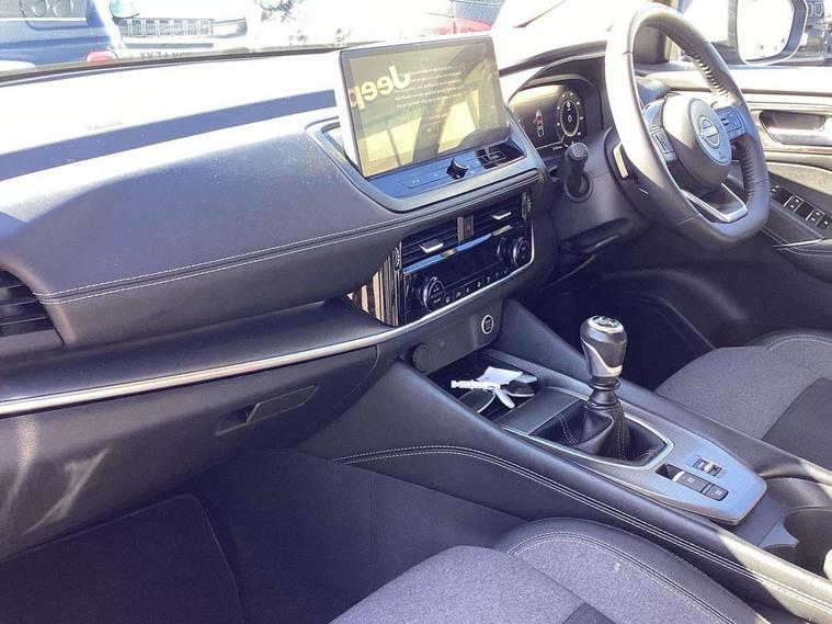 360 degree Intelligent around view monitor with moving object detection, Blind spot intervention, Blind spot warning, Drive assist, Drive assist custom mode, Drive modes (sport, normal, eco), Driver drowsiness and attention warning, Electric speed sensitive power steering, Emergency and breakdown call, Emergency lane keep assist, Emergency Stop Signal (ESS), Engine start/stop button, Event data recorder, Front and rear parking sensors, Full Digital 12.3" TFT Digital Combimeter, Google virtual personal assistance, Idle stop/start system, In-car WIFI hotspot, Intelligent Cruise control (ICC), Intelligent forward collision warning, Intelligent speed assist, Lane departure warning system, Nissan connect 12.3 inch touchscreen infotainment system, Nissan connect navigation with google maps, Nissan connect services 2.0 (Google Automotive System), Outside temperature sensor, Rear cross traffic alert, Reversing detection, Wireless Apple CarPlay/Android Auto, Wireless charging pad, Limited slip differential, 2 front USB-C ports, 2 rear USB-C ports, 6 speakers, AM/FM audio system with DAB, Bluetooth audio streaming, Auto rear wiper when reversing, Body colour mirror caps, Body coloured door handles, Bodyside mouldings, Chrome side window finisher, Electric auto folding door mirrors, Electrically adjustable and heated door mirrors with LED turn indicator, Follow me home headlights, High beam assist, Intelligent auto headlights, LED 3rd brake light, LED daytime running lights, LED Headlights, LED rear lights, One touch front and rear electric windows with remote opening and closing, One touch passenger window, Partially body coloured bumpers, Rear privacy glass, Rear roof spoiler, Rear side wing doors, Rear styling plate, Shark fin antenna, Splash free rain sensing wipers, Super UV and infrared cut glass, Three blink turn signal, 3 bench rear seats in 2nd row, 3 rear headrests, 60/40 split folding rear seat bench, Chrome interior door handles, Cloth upholstery, Dark headlining, Driver seat back pocket, Dual zone automatic climate control with pollen filter, Front door with bottle holders, Height adjustable front headrests, Leather shift knob, Luggage board system, Luggage space lighting, Multifunction steering wheel, Passenger seat back pocket, Rear door bottle holders, RGB ambient light (Full area coverage), Single front passenger seat, Smooth leather steering wheel, Tilt/telescopic adjustable steering wheel, Two rear isofix child seat anchorage points with top tether, 3x3 point rear seatbelt pretensioners + load limiters, Autonomous emergency braking, Child locks on rear doors, Curtain and front side, far side airbags, Driver and passenger airbags, Driver, passenger and 2nd row rear seat belt reminder, Electric handbrake with auto hold function, Front seatbelt pretensioners + load limiters, Height adjustable front seatbelts, Hill start assist, intelligent front emergency braking, Rear automatic braking, Tyre pressure monitoring system, Vehicle dynamic control, Engine immobiliser, Intelligent key with walk away lock and approach unlock functions, Remote central door locking with deadlocking, Thatcham alarm, 18" Diamond cut alloy wheels, Tyre puncture repair kit,