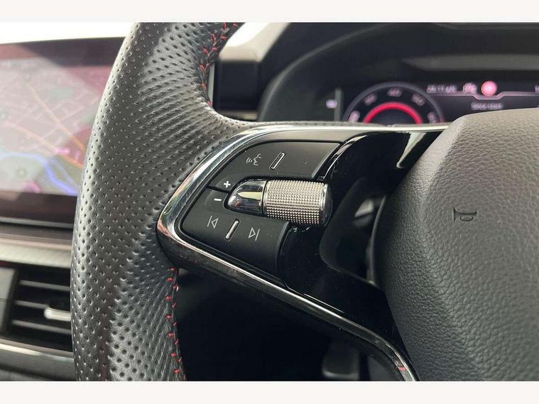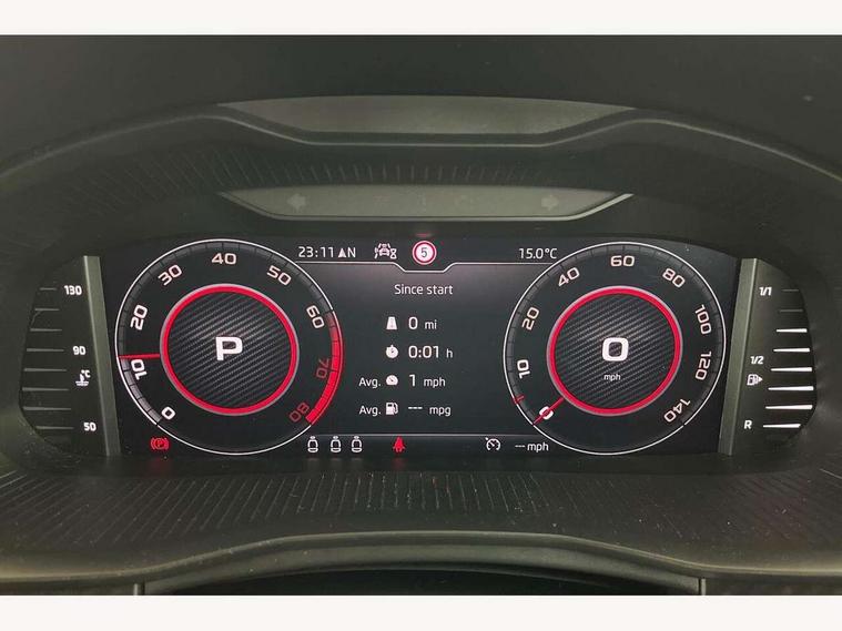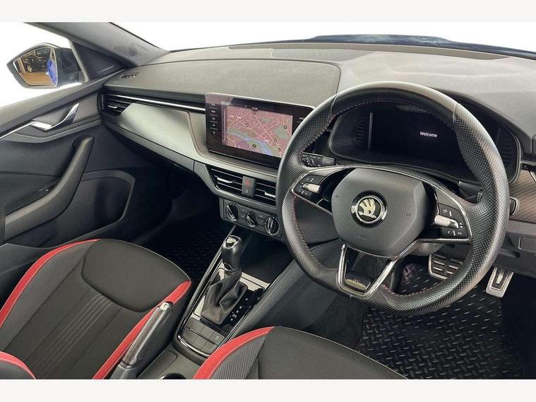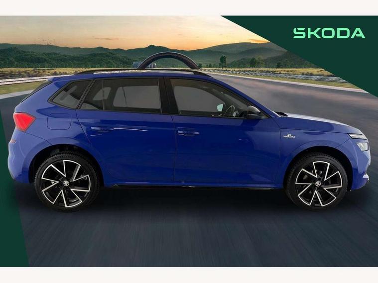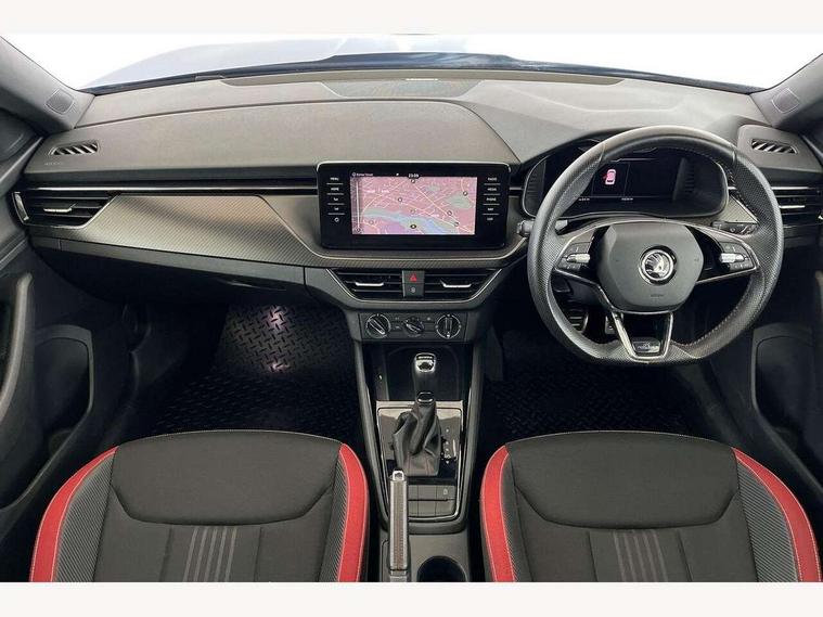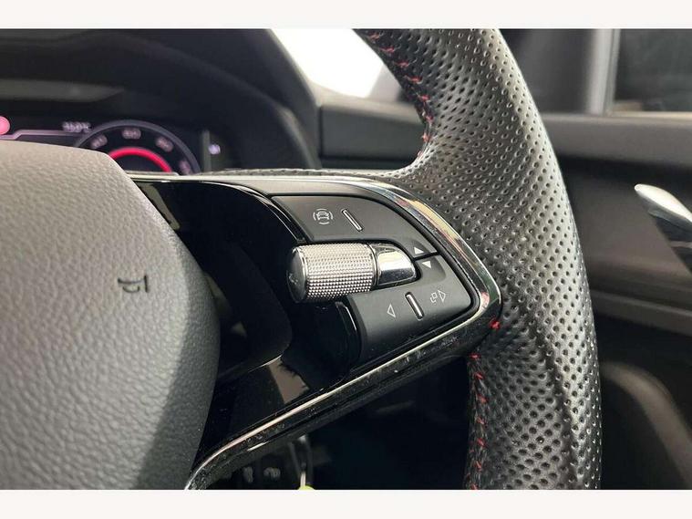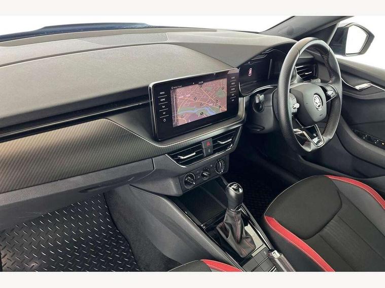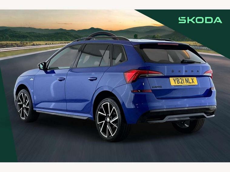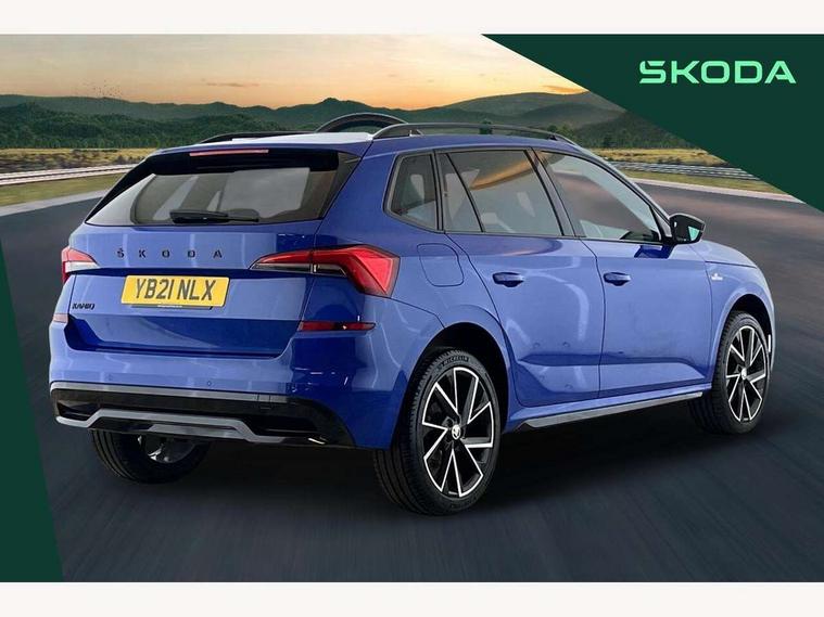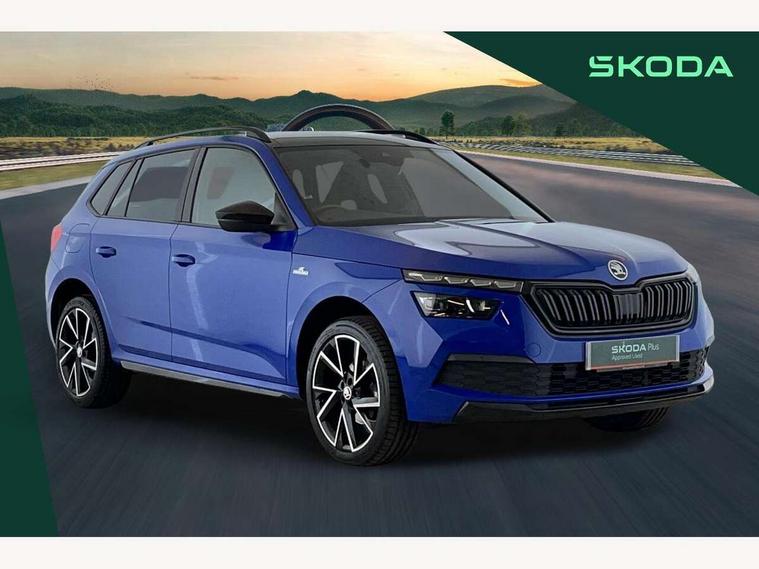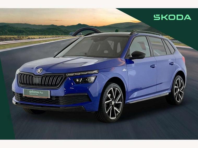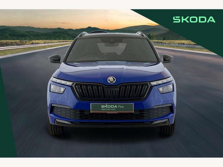 Amundsen satellite navigation with 9.2" touchscreen display, voice control, virtual cockpit and web radio, Bluetooth system, E-call, Front assist system, Lane assist, PAS, Service indicator, Speed limiter, Trip computer, Virtual cockpit with 10.25" display, Wireless SmartLink for apple car play, android auto and mirrorlink, 2 USB - C ports with 1x adaptor cable, Auxiliary input socket, DAB Digital radio, Auto dimming rear view mirror, Black door mirrors, Black radiator grille, Black rear diffuser, Body colour bumpers, Body colour roof spoiler, Boot lettering in black, Chrome grille surround, Electrically adjustable and heated door mirrors, Fixed panoramic sunroof with black roof rails, Front and rear electric windows, Front sport bumper, Full LED headlights with adaptive front light system, dynamic indicators, cornering function and fog lights, Headlight range control, Heated rear window, High functionality rear led lights with dynamic indicators, KAMIQ Door sills, Monte carlo plaque, Privacy glass, Rear fog lights, Rear wiper, 12V Accessory socket in centre console, Aluminium pedals, Black ceiling for black/beige interior, Chrome inner door handles, Cloth upholstery, Front gesture control, Front head restraints, Glove compartment with illumination, Height adjustable passenger seat, Ice scraper, Isofix child seat fittings on outer rear seats, ISOFIX on front passenger seat, Leather gear lever, Manual lumbar support for front seats, Rake/reach adjustable steering wheel, Reading lights for driver and front passenger, Sports seats, Sun visor with make up mirror for front passenger, Textile floor mats, Third rear headrest, Top tether for front passenger seat, Umbrella in driver's door, 3x3 point rear seatbelts, Airbags - driver and front passenger, ESP, Front passenger airbag deactivation switch, Front side airbags with curtain airbags, Hill hold control, Manual parking brake, One tone horn, Rear disc brakes, Seatbelt reminder for driver an co-driver, Traction control, Tyre pressure monitor, Alarm with interior monitoring, back up horn and tilt sensor with safe function and towing protection, Anti-theft wheel bolts, Immobiliser, Remote central locking with SAFE system, Chrome air vent surrounds, 18" Vega alloy wheels in black,