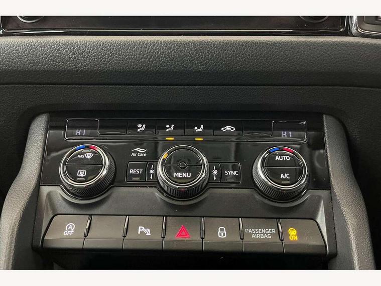 Amundsen satellite navigation with 8" touchscreen, integrated Wi-Fi, web radio, Bluetooth system, Colour multifunction trip computer, Digital voice enhancement, E-call, ECO Stop/start function, Exterior temperature indicator, Power assist steering, Rear view camera, Smartlink wireless for apple carplay and wired for android auto, Speed limiter, Tailgate unlocking from outside, USB C Port x 2 in front centre console, 8 Speakers, DAB Digital radio, Aero front windscreen wipers with intermittent function, Aero rear window wiper, Auto dimming rear view mirror, Black wheel arch surrounds, Body colour bumpers, Body colour door mirrors and handles, Electric front and rear windows, Extended rear spoiler with finlets in gloss black, Front fog lights, Headlight washers, Heated rear window, Invisible tailpipe, LED rear fog light, LED third brake light in rear spoiler, Light assistant (coming/leaving home/tunnel light), Off-road style lower front bumper element, Privacy glass, Radiator grille frame in matt black with chrome strip, Rain and light sensors, Rear LED lights (high functionality) with welcome effect and dynamic indicators, Rear side wing doors, Safety reflectors on front and rear doors, Window control switches with black trim, 12V socket in boot, 2 rails with 2 hooks, 2 seat bench in 3rd row, 3 seat bench in 2nd row, 4 foldable roof handles with rear coat hooks, 60:40 foldable rear seat with sliding adjustment and backrest angle adjustment, Bottle holders in door panel in the 1.5 litre front and 1 litre rear, Cargo storage compartments, Chrome interior door handles, Cloth upholstery, Coat hooks on B pillar, Covered storage compartment on driver side, Dual zone automatic air conditioning with humidity sensor and control, Front centre armrest with storage compartment, cup holder and 12V socket, Gear shift lever with chrome frame and black gloss insert, Grey headlining, Grey stitching in front and rear armrests and door armrests + door inserts, Height adjustable front headrests, Height adjustable front seats, Illuminated and cooled glovebox, Illuminated luggage compartment, Isofix child seat fittings in outer rear seats with top tether, Manually adjustable steering column, Net programme in boot (1x horizontal Net, 2x vertical Nets), Overhead glasses storage compartment, Pollen filter, Rear centre armrest with cupholders, Single front passenger seat, Sliding trunk cover, Small Bags on the inner sides of the front backrests, Sunvisors with illuminated vanity mirrors, Three rear height adjustable headrests, Ticket holder on A Pillar, Umbrella in door panel, Variable boot floor, Auto door release and activation of warning lights in the event of an accident, Child locks on rear doors, Driver and front passenger airbag with knee airbag and front passenger airbag deactivation, Electronic parking brake with hill start assist, Emergency rear braking signal, ESC (incl. ABS+MSR+ASR+EDS+HBA+DSR+RBS+MKB), Front assist with autonomous emergency braking, Front side airbags with curtain airbags, Fuel cut off safety device, Height adjustable front 3 point seatbelts + pretensioners, Hill hold control, Rear disc brakes, Safety vest holder in door, Seat belt reminder for all seats, Three point rear seat belts, Two tone horn, Tyre pressure monitor, Alarm with interior monitoring and tilt sensor with safe function, Anti-theft wheel bolts, Immobiliser, Keyless entry and start system (KESSY), Remote central locking with 2 keys, Grey stitching in dashboard, Temporary spare wheel (space saver),