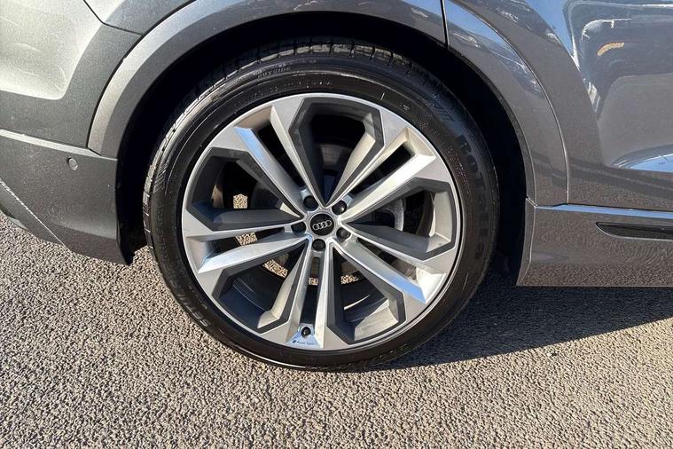 10.1" and 8.6" Dual colour touchscreens, Audi connect safety and service (e-call), Audi connect with Amazon Alexa Integration, Audi drive select, Audi parking system plus includes 360 degree display with front and rear sensors, Audi phone box light with wireless charging, Audi virtual cockpit - 12.3" high resolution LCD display with fully customisable instrument cluster, Automatic start/stop system, Electro-mechanical PAS, Low washer fluid indicator, MMI - Multi Media Interface control system, MMI navigation plus with MMI touch, Natural voice recognition, On board computer, Operating buttons in black, glass look with haptic feedback, Power operated tailgate, Rear view camera, Service interval indicator, Smartphone interface includes wireless Apple carplay/Android Auto, 48V Mild hybrid technology, Adaptive sport air suspension, Diesel particulate filter, Quattro all wheel drive with self locking centre differential, Audi music interface with 2 USB ports with charge and data functions, Audi sound system with 6 channel amplifier, 180 watt amplifying capacity and 10 loudspeakers including subwoofer, Aux-in socket, DAB Digital radio, 3rd brake light, Acoustic windscreen, Aluminium window trim, Audi beam, Audi HD Matrix LED headlights with dynamic front and rear indicators, Auto dimming frameless rear view mirror, Black Audi rings and black badging, Coming/leaving home lighting function, Electric front+rear windows, Electrically folding auto dimming/adjustable/heated door mirrors with memory function, LED side indicators and kerb view function for passenger side, Headlight washers, Heat insulating glass in windshield, LED signature daytime running lights, Platinum grey front spoiler lip and diffuser insert with honeycomb grille in black, Privacy glass - dark tinted rear and rear side windows from B-pillar backwards, Rain and light sensors, Rear side wing doors, Rear wiper, 2 zone automatic climate control, 3 bench rear seats in 2nd row, 4-way lumbar support for front seats, 40:20:40 split folding rear bench seat, Audi phone box light, Black cloth headlining, Comfort front centre armrest, Driver seat memory function, Electrically adjustable front seats, Front head restraints, Front/rear floor mats, Heated front seats, ISOFIX child seat mounting for front passenger seat and 2 outer rear seats with top tether child seat mounting for all 3 rear seats, LED interior ambient lighting, Luggage compartment sill protection in stainless steel, Rear centre armrest with 2 cupholders, Rear headrests, Seat cushion displaceable by 100mm in the ratio 60:40, Single front passenger seat, Stainless steel pedals, Sunvisors with illuminated vanity mirrors, 3 point seatbelts on all seats, Audi pre sense front, Child locks on rear doors, Driver and front passenger, front side and curtain airbags, Electromechanical parking brake, Electronic Stability Control (ESC) including ABS, ASR and EDL, Front passenger airbag deactivation, Hill descent control, Hill hold assist, Predictive pedestrian protection, Seatbelt monitoring, Traction control, Tyre pressure loss indicator, Warning triangle and first aid kit, Anti theft alarm with tow away protection, Anti-theft wheel bolts and wheel loosening detection, Immobiliser, Keyless go with remote central locking, Polished oak trim with grey finish inlay, Tool kit, Tyre repair kit,