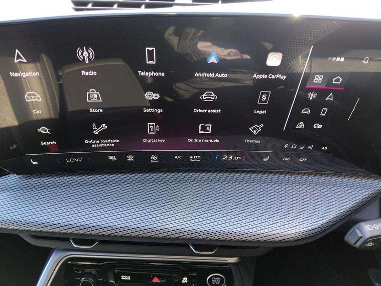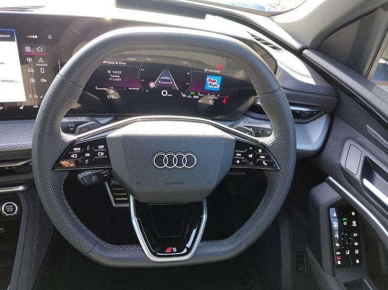 Amazon alexa Integration, Audi connect safety and service (e-call), Audi drive select, Audi lane departure warning, Audi smartphone interface includes wireless Apple carplay/Android Auto, Audi Virtual Cockpit - 10.25" display, Bluetooth interface, Camera based traffic sign recognition, MMI Navigation Plus with high resolution 10.1 inch touchscreen colour display, Power operated tailgate, Progressive steering, Reversing camera, Service interval indicator, Start stop system with recuperation, Voice control system with natural language interaction, Sports suspension, 2 USB-C ports with charge and data functions, DAB digital radio module, SONOS premium sound system, Acoustic windscreen, Aluminium roof rails, Aluminium window trim, Auto dimming frameless rear view mirror, Body coloured bumpers, Electrically folding, adjustable and heated door mirrors with integrated LED side indicators and kerb view function for passenger side, Front and rear electric windows, Front fog lights, Front side air inlets in matt platinum grey, Front spoiler blade in matt platinum grey, Grille vertical bars in aluminium silver/Matt, High gloss black finish B and C pillars, LED headlights with LED daytime running lights, LED rear lights, LED third brake light, Privacy glass dark tinted rear and rear-side windows (from B-pillar backwards), Rain and light sensors, Rear diffuser strip in matt titanium black, Rear side wing doors, Rear wiper, S line badges on front wings, S Line front and rear bumpers, Side skirt insert in matt Platinium grey, Silver chrome grille surround, Tinted rear windows, Titanium black radiator grille, Variable front intermittent wipers, 12V socket in rear centre console, 3 seat bench in 2nd row, 40:20:40 folding with manual adjustment for 60:40 forwards/backwards position and backrest angle, Adjustable rear seat bench/backrest with centre armrest and cupholder, Black cloth headlining, Dual zone electronic climate control, Front and rear black floor mats with contrast stitching in rock grey, Front and rear headrests, Front and rear roof module including reading lights, Front centre armrest, Glove compartment lighting, Heated front seats, Height and reach adjustable steering wheel, Illuminated door sill trims with S logo, ISOFIX child seat mounting for front passenger with airbag deactivation and outer rear seat including top tether attachment point for outer rear seats, Luggage compartment light, Manual front seats with height adjustment, Perforated leather gearknob, Single front passenger seat, Stainless steel luggage compartment sill finisher, Stainless steel pedals, Non smoking pack - Q3, 3x3 point rear seatbelts, 6 airbags - Driver, front passenger, curtain and side windows, Electrically operated child locks on rear doors, Electromechanical parking brake, Electronic stabilisation control including ABS, ASR and EDL, Front seatbelt reminder, Hill descent control, Hill hold assist, Pre sense basic, Seatbelt monitoring, Tyre pressure warning, Warning triangle and first aid kit, Anti theft alarm, Anti theft wheel bolts, Audi pre-sense front with pedestrain and cyclist recognition, Immobiliser, Remote central locking, Dark matt brushed aluminium inlay, Detail dashboard around MMI touch colour display in glass look, black with surround in aluminium look, Leatherette door armrest,