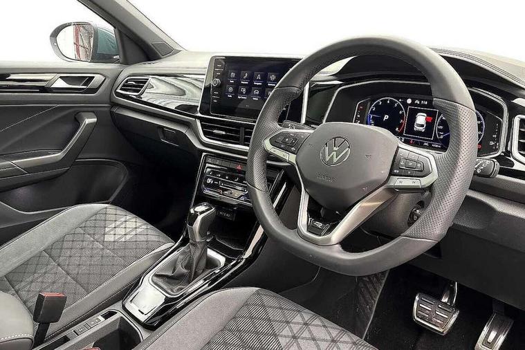 10.25" Digital cockpit pro, Advanced driver attention and drowsiness monitor, Emergency call service, Lane keeping system Lane Assist, Mobile phone interface, Modified key software - reduce switch off time for key status change to Long no motion, Online services, Park assist including front and rear parking sensors, Service interval indicator, Tailgate/trunk lid release from outside, Think blue trainer driver tips and journey analysis, Warning sound and light for front seatbelts unfastened, Wireless app connect, Battery regeneration during braking, Start/stop function with battery regeneration, DAB Digital radio, Diversity antenna for FM reception, Front and rear 6 speakers, Music playback - MP3, WMA and AAC files, Premium USB cable in choice of either Apple or Android smartphone compatibility, SD card slot, Simultaneous pairing of 2 compatible mobile devices, Title and cover art display, We Connect and We Connect Plus functionality, Auto dimming interior rear view mirror, Automatic hazard lights activation under emergency braking, Automatic headlight control with LED separate daytime running lights with coming/leaving home function, Body coloured exterior mirror housings and door handles, Electrically adjustable and heated door mirrors, Extended roof spoiler, Exterior mirrors aspherical on driver side, convex on front passenger side, External USB type C socket and charging sockets, Front windscreen wiper with intermittent wipe and 4 position delay, Heated rear window, LED 3rd brake light, LED rear combination lamps, LED rear number plate lights, Power windows with comfort operation and circuit breaker, Privacy glass for rear side windows and rear window, R-Line design body coloured bumpers, Rain sensor, Rear exhaust tailpipe, Rear fog light on one side and reversing lights on both sides, Rear side wing doors, Rear wash/wipe with intermittent wipe setting, Remote electrically foldable door mirrors, puddle lights and reverse activated passenger's door mirror, 12V power socket in centre console, 3 rear head restraints, 3 seat bench in 2nd row, 4 load lashing points in luggage compartment, Air care climatronic air conditoning system with active combination filter and 2-zone temperature control, Black roof lining, Chrome plated decorative trims, Chrome plated radiator grille inserts, air vent surrounds and light switch surrounds, Door and side trim panel with leatherette insert, Front + rear carpet mats, Front centre armrest, Front cupholders x 2, Front footwell illumination, Front reading light, Front scuff plates with R Line logo, Front seat back storage pockets, Glove compartment door with light, Instrument lighting, white adjustable panel illumination, Interior ambient lighting and surround lighting, Interior light delay, Isofix child seat preparation, Leather gearshift handle, Load-through provision with cup holder when folded down ('Unsplit rear seat bench, split folding backrest, with centre armrest), Luggage compartment lighting, Single front passenger seat, Stainless steel pedals, Storage compartment in left and right luggage area, Storage compartment in rear doors, Storage compartments in driver and front passenger doors, Sunvisors with illuminated vanity mirrors, Variable boot floor, height adjustable and removable, Driver assistance pack without proactive passenger protection - T-Roc, 3 point height adj front seatbelts + pretensioners, 3 point seatbelts in outer rear with ECE label, ABS, Child locks on rear doors, City emergency braking and pedestrian monitoring, Driver and front passenger airbag with front passenger airbag deactivation, Driver and front passenger safety-optimised head restraints, Drivers seatbelt reminder, Electronic parking brake, Electronic Stability Control (ESC) inc EDL (Electronic Differential Lock) and ASR (Traction Control), Front and rear passengers curtain airbag system including front side airbags, Hill start assist, Predictive pedestrian protection, Rear disc brakes, Two tone horn, Tyre pressure loss indicator, Volkswagen roadside assistance, Piano black decorative inserts in dashboard and front door trim panels, Trims for alloy wheels,