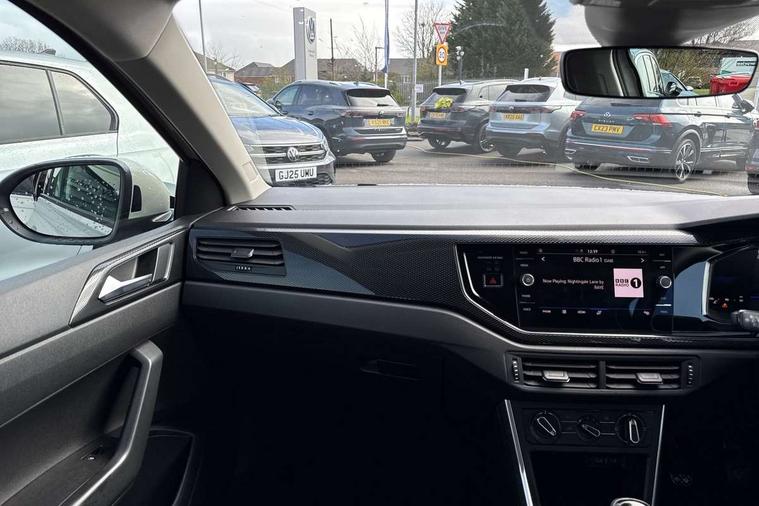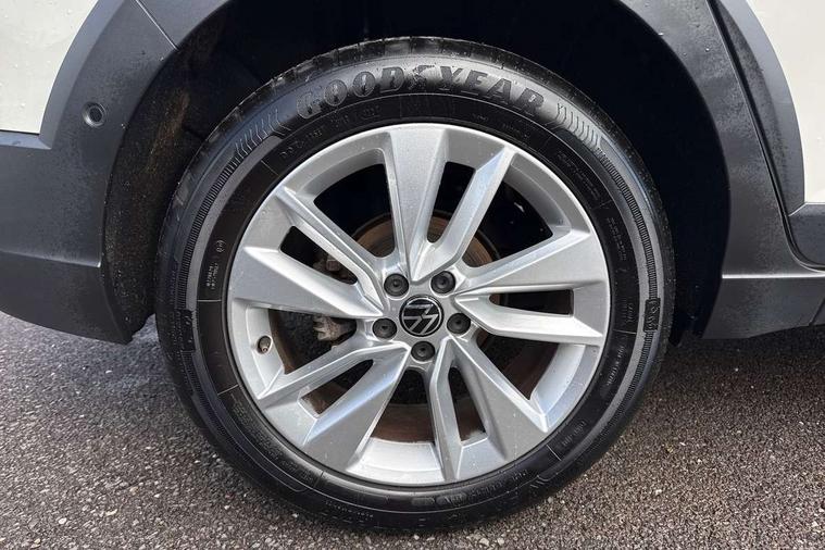 Advanced driver attention and drowsiness monitor, Dynamic road sign display, e-Call (emergency call), Power Steering, Predictive adaptive cruise control, Rear view camera, Travel assist including emergency assist, Washer fluid level indicator, Wireless Charging including Bluetooth, Start-stop system with battery regeneration (recuperation - energy recovery during braking), WeConnect plus, Ambient lighting with logo projection, Aspherical driver's exterior mirror, Body coloured bumpers, Body coloured exterior mirror housings and door handles, Electric windows, External USB type C socket and charging sockets, Heat insulating glass windscreen, LED rear combination lamp, LED third brake light, Left convex exterior mirror, Power folding adjustable/heated exterior mirrors and front passenger exterior mirror lowering function, Rear fog light on one side, reversing light on both sides, Rear side wing doors, Rear wash/wipe with intermittent wipe setting, Side windows in heat-insulating glass, from B-pillar and rear window dark tinted, 'Slash/ Austin' Cloth upholstery, 12V socket in centre console, 2 front reading lights, 3 rear head restraints, 3 seat bench in 2nd row, Black carpets, Ceramique headliner, Child seat anchor for child seat system i-Size, 2x top tether and child seat anchor in front on front passenger side, Door and side trim panels in titan black, Driver and front passenger seat height adjustment, Front centre armrest, Handbrake lever handle in leather, Height and reach adjustable steering wheel, Leather trimmed gear knob, Leather wrapped multifunction steering wheel, Luggage compartment floor, Luggage compartment light, Lumbar support for driver's and front passengers seat, Seat covers in titanium black, Single front passenger seat, Split folding backrest with centre armrest and unsplit rear seat bench, Storage compartment under front seats, Sun visors with illuminated vanity mirrors, Titanium black instrument panel, Chrome Package - Taigo, Drivers assistance package - Taigo, Light and sight pack - Taigo, 2 x 3-point seatbelts/outer rear seats with ECE label, 3-point seat belts in front with pretensioner and height adjustment, 3-point seatbelt for centre rear seat, Driver and front passenger airbag with front passenger airbag deactivation, Driver and front passenger safety-optimised head restraints, Electronic stability control, Extended and predictive pedestrian/ cyclist protection, Front and rear disc brakes, Front curtain and side airbags with center airbag, Hill start assist, Manual rear child locks, Single tone horn, Tyre pressure loss indicator, Anti-theft alarm system with interior monitoring, backup horn, and towing protection, Keyless locking and starting system keyless access with safelock, Black (slush) Dashboard, Lava stone black gloss/matt decorative inserts in dash and front door panels, Low rolling resistance tyres,