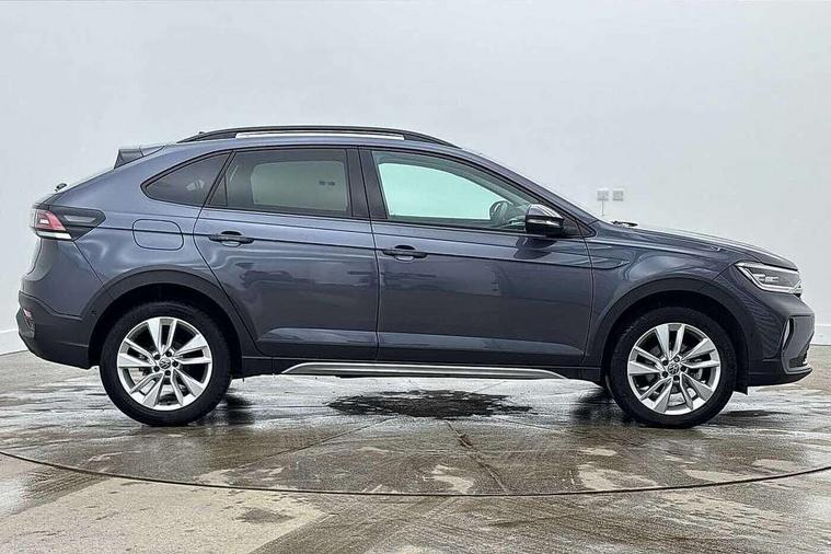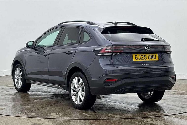 Advanced driver attention and drowsiness monitor, Dynamic road sign display, e-Call (emergency call), Power Steering, Predictive adaptive cruise control, Rear view camera, Travel assist including emergency assist, Washer fluid level indicator, Wireless Charging including Bluetooth, Start-stop system with battery regeneration (recuperation - energy recovery during braking), WeConnect plus, Ambient lighting with logo projection, Aspherical driver's exterior mirror, Body coloured bumpers, Body coloured exterior mirror housings and door handles, Electric windows, External USB type C socket and charging sockets, Heat insulating glass windscreen, LED rear combination lamp, LED third brake light, Left convex exterior mirror, Power folding adjustable/heated exterior mirrors and front passenger exterior mirror lowering function, Rear fog light on one side, reversing light on both sides, Rear side wing doors, Rear wash/wipe with intermittent wipe setting, Side windows in heat-insulating glass, from B-pillar and rear window dark tinted, 'Slash/ Austin' Cloth upholstery, 12V socket in centre console, 2 front reading lights, 3 rear head restraints, 3 seat bench in 2nd row, Black carpets, Ceramique headliner, Child seat anchor for child seat system i-Size, 2x top tether and child seat anchor in front on front passenger side, Door and side trim panels in titan black, Driver and front passenger seat height adjustment, Front centre armrest, Handbrake lever handle in leather, Height and reach adjustable steering wheel, Leather trimmed gear knob, Leather wrapped multifunction steering wheel, Luggage compartment floor, Luggage compartment light, Lumbar support for driver's and front passengers seat, Seat covers in titanium black, Single front passenger seat, Split folding backrest with centre armrest and unsplit rear seat bench, Storage compartment under front seats, Sun visors with illuminated vanity mirrors, Titanium black instrument panel, Chrome Package - Taigo, Drivers assistance package - Taigo, Light and sight pack - Taigo, 2 x 3-point seatbelts/outer rear seats with ECE label, 3-point seat belts in front with pretensioner and height adjustment, 3-point seatbelt for centre rear seat, Driver and front passenger airbag with front passenger airbag deactivation, Driver and front passenger safety-optimised head restraints, Electronic stability control, Extended and predictive pedestrian/ cyclist protection, Front and rear disc brakes, Front curtain and side airbags with center airbag, Hill start assist, Manual rear child locks, Single tone horn, Tyre pressure loss indicator, Anti-theft alarm system with interior monitoring, backup horn, and towing protection, Keyless locking and starting system keyless access with safelock, Black (slush) Dashboard, Lava stone black gloss/matt decorative inserts in dash and front door panels, Low rolling resistance tyres,