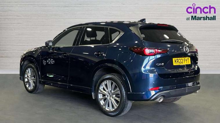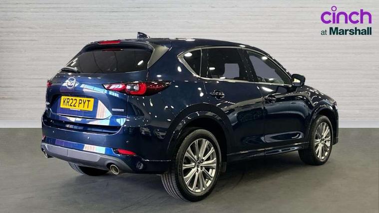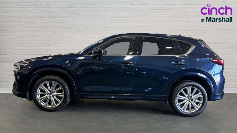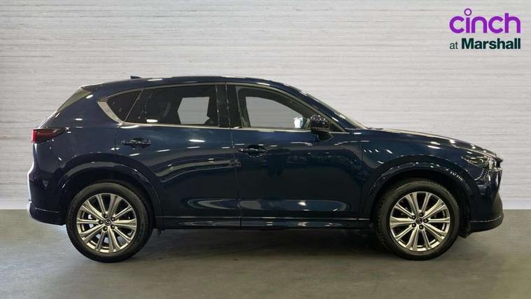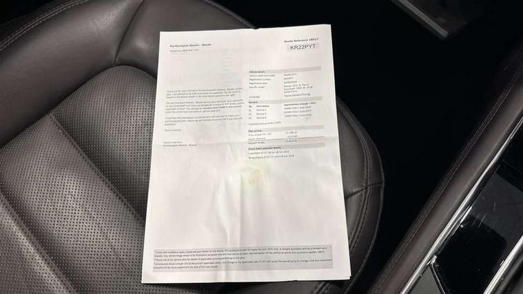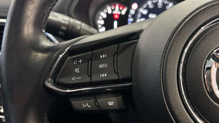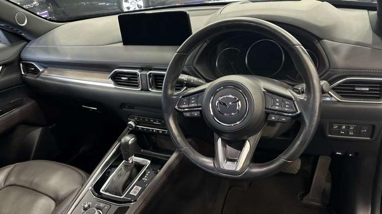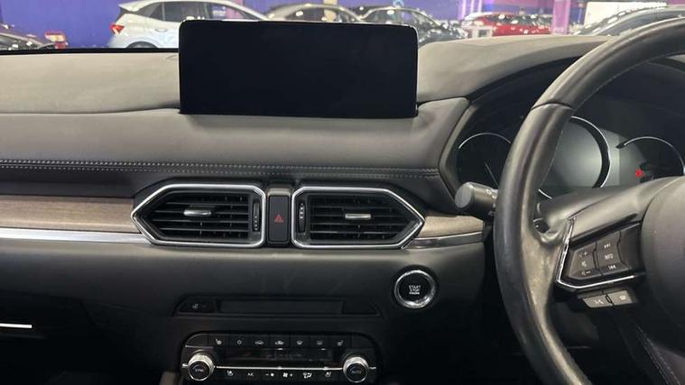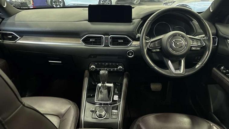 10.25" display with Mazda Connect infotainment, 360 degree surround camera, 7" colour TFT display, Apple car play/Android Auto, Blind spot monitoring with rear cross traffic alert, Bluetooth connectivity with voice control, Collision prevention assist, Connected services, Cruising Traffic Support, Drive mode selector, Driver attention alert system, Electric power steering, Emergency stop signalling system, Engine start/stop button, Forward collision warning, Front and rear parking sensors, Integrated navigation system, Intelligent speed assist, Lane departure warning system, Lane keep assist, Power liftgate, Qi wireless phone charging, Radar cruise control with Stop and Go, Service indicator, Trip computer, Windscreen projected colour active driving display (HUD) with memory, i-stop, 2 USB sockets in rear, 2x USB sockets in front, AM/FM radio, Bluetooth audio streaming, Bose premium sound system with 10 speakers, DAB Digital radio, Multimedia Commander including separate volume dial, Steering wheel mounted audio controls, Adaptive LED Headlights, Automatic headlights, Body colour door mirrors, Body colour roof spoiler, Body coloured front and rear lower bumper mouldings, Body coloured tire arch and side mouldings, Bright finish signature wing, Coming/leaving home lighting function, Door mirror integrated indicators, Dual large chrome tailpipes, Dusk sensitive headlamps, Electric front/rear windows with one touch auto up/down, Frameless auto dimming interior rear view mirror, Front grille in gloss black finish, Gloss black B and C pillars garnish, Gloss black front grille accent, High beam assist, Intermittent rear wash/wipe, LED auto levelling, LED daytime running lights, LED front fog lights, LED third brake light, Power folding and heated door mirrors, Power tilt/slide sunroof, Privacy glass (rear side windows only), Rain sensing front wipers, Real wood inlay dashboard panel, Rear side wing doors, Scuff plates, Shark fin antenna, Signature LED rear combination lights, Vinyl with real wood inlay door trim panel, Windscreen wiper de-icer, 12v electrical power outlet, 3 seat bench in 2nd row, 3 stage heated front seats, 40:20:40 Karakuri fold-flat seat system, 6 way electric adjustable passenger seat, 8 way electric driver seat with lumbar support + memory, Black roof lining, Cargo room flat floor board with waterproof undertray, Driver seat power slide, recline and height adjustment, Driver, Front passenger and two rear grab handles with coat hooks, Driver/passenger front seatback pockets, Driver/passenger sunvisors + illuminated vanity mirrors (drivers with ticket holder), Dual zone climate control, Folding centre armrest with 2 cup holders, Front and rear door pockets, Front centre storage with two cupholders, Front passenger seat power slide, recline and height adjustment, Front seat ventilation, Heated outer rear seats, Heated steering wheel, Humidity sensor, Illuminated glovebox, Interior dome light with integral spotlight, ISOFIX child seat anchorage points attached on outer rear seats, Karakuri tonneau cover, Leather gear knob, Leather steering wheel with unique stitching and chrome centre bezel, Luggage compartment LED lighting, Luggage compartment power outlet, Nappa leather upholstery, Paddle shifts, Rear air vents, Rear headrests, Rear seat recline, Roof mounted sunglasses holder, Single front passenger seat, Three height adjustable head restraints, Tilt/height adjustable steering wheel, White interior LED illumination lighting, 3 point front seatbelts with pre-tensioners, 3 rear 3 point seatbelts, ABS, Advanced Smart City Brake Support - SCBS, Child locks on rear doors, Driver and front passenger side airbags, DSTC-Dynamic Stability and Traction Control, Dual front airbags, Electronic brake force distribution, Electronic parking brake with auto hold, ESP, Front and rear curtain airbags, Front passenger airbag deactivation, G-Vectoring control, Hill hold assist, Rear smart city brake support, Seatbelt reminder front and rear, Single stage passenger airbags, Smart brake support with forward obstruction warning, Tyre pressure monitoring system, Automatic door locking when moving off, Deadlock, Immobiliser, Power door locks, Remote central locking, Smart keyless entry, Thatcham Cat.1 alarm, Upper dashboard and door cards wood trim, 19" exclusive design bright alloy wheels, Tyre repair kit,