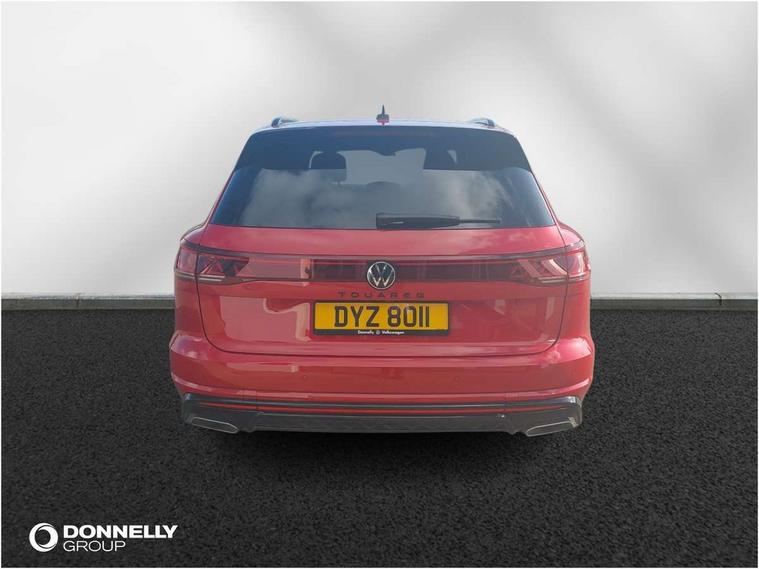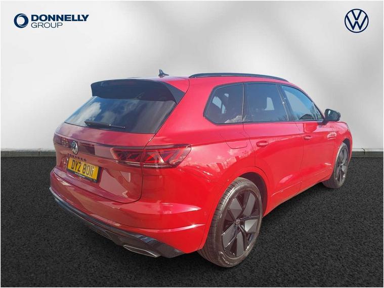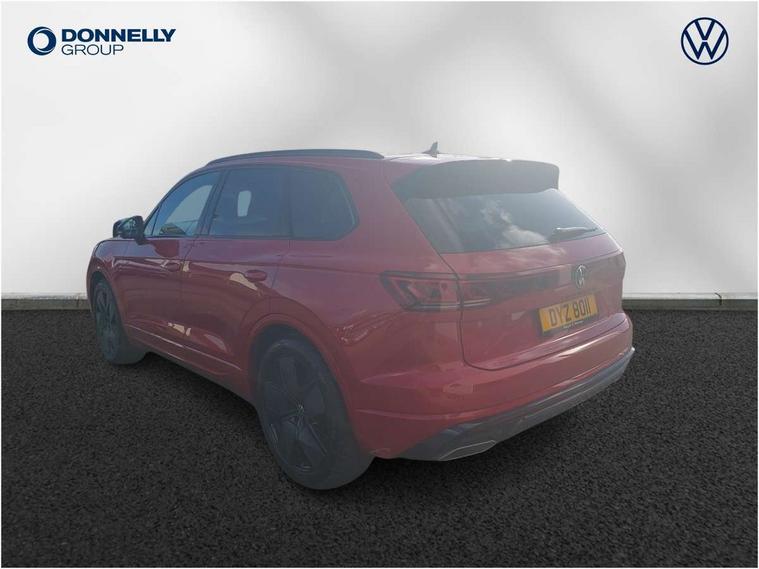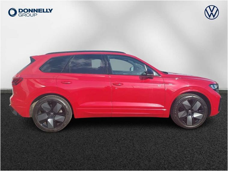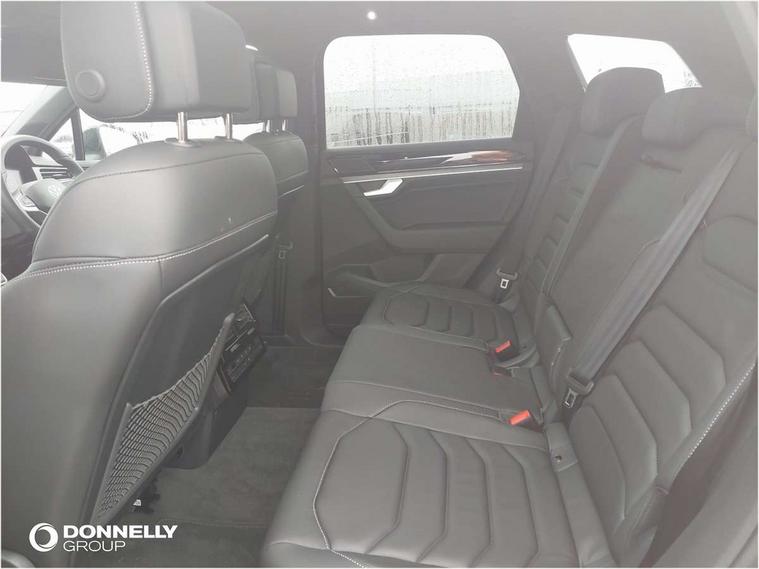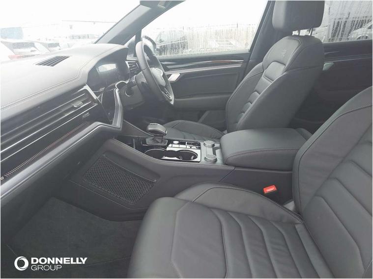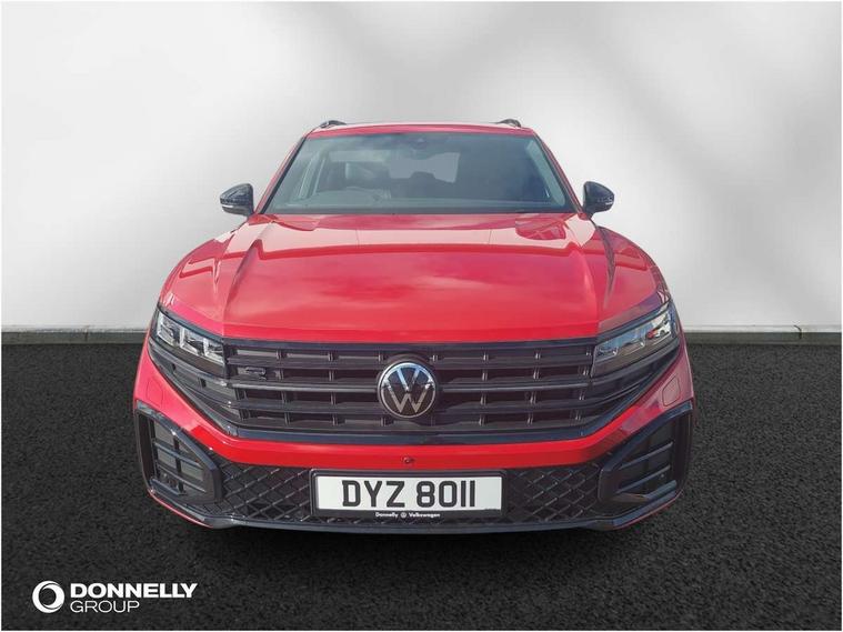 15" Screen Top infotainment system Premium (MIB3), Adaptive cruise control, Advanced driver attention and drowsiness monitor, Driver profile selection, Dynamic road sign display, E-Sim card for online connectivity, eCall emergency system, Innovision cockpit, Intelligent park assist, Mobile phone interface with inductive charging, Multi-colour Active Info display, Park Assist - Sensor controlled steering aid to assist parallel or bay parking, PAS, Warning signal and warning light for front and rear seatbelts not fastened, Wireless app connect, Adaptive chassis control, DAB Digital radio, Diversity antenna for AM/ FM reception, We Connect and We Connect Plus functionality, Automatic coming/leaving home lighting function, Automatic headlights, Black door mirrors, Black style comfort bumpers, Dynamic headlight range control with dynamic cornering light, Electric front tilt/slide panoramic sunroof and fixed rear sunroof, Electrically power adjustable, heated, folding, auto dimming, front passenger exterior door mirror lowering function, External USB type C socket and charging sockets, Gloss black roof rails, HD LED Matrix beam plus digital headlight projection with variable light distribution, Headlight washers, Heat insulating darkened glass in side and rear windows, Highway light, LED 3rd brake light, LED daytime running lights, LED rear combination lamp with variable lighting functions and special styling, Poor weather light, Privacy glass for rear side windows and rear window, tinted glass from B pillar backwards - 80%, Rain sensor, Rear exhaust tailpipe, Rear fog light with back up light on both sides, Rear light bar and illuminated logo, Rear side wing doors, Rear wiper, Stainless steel door sill protection, 12V socket in centre console, 3 rear headrests, 3 seat bench in 2nd row, 4 zone climate control, Airbag label on sun visor and B-pillar, Brushed stainless steel pedals, Double sun visors with illuminated vanity mirrors, Front + rear carpet mats, Front centre armrest, Leather wrapped multifunction sports steering wheel, heated, with touch control and shift paddles, Mechanical rear seat release, Power adjustable lumbar support in front, Power seats in front, right side with memory features and seat cushion depth adjustment, Rear seat backrest and split folding with center armrest, Single front passenger seat, Extra acoustics pack - Touareg, Memory pack plus - Touareg, 3 point seatbelts, outer rear with ECE lable, ABS, Child locks on rear doors, Curtain airbags, Driver and front passenger safety-optimised head restraints, Driver/Front Passenger airbags, Extended pedestrian protection measures, Front assist, Front seat side impact airbags, Generative braking with start and stop system, Height adjustable 3 point front seatbelts with pre tensioners, Passenger airbag deactivate switch, Three 3 point rear seatbelts, Two tone horn, Warning triangle and first aid kit, Alarm system with interior protection, Easy open and close sensor controlled luggage compartment opening and closing with remote unlocking, Keyless Access Keyless locking and starting system with SAFELOCK, Aluminium decorative inserts, Black decorative trims, Gloss black decorative inserts in centre console, Tool kit,